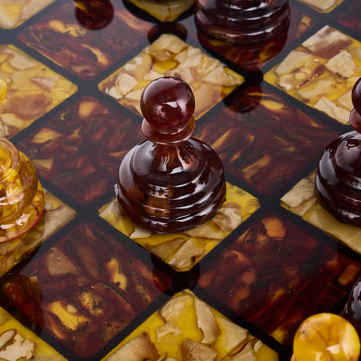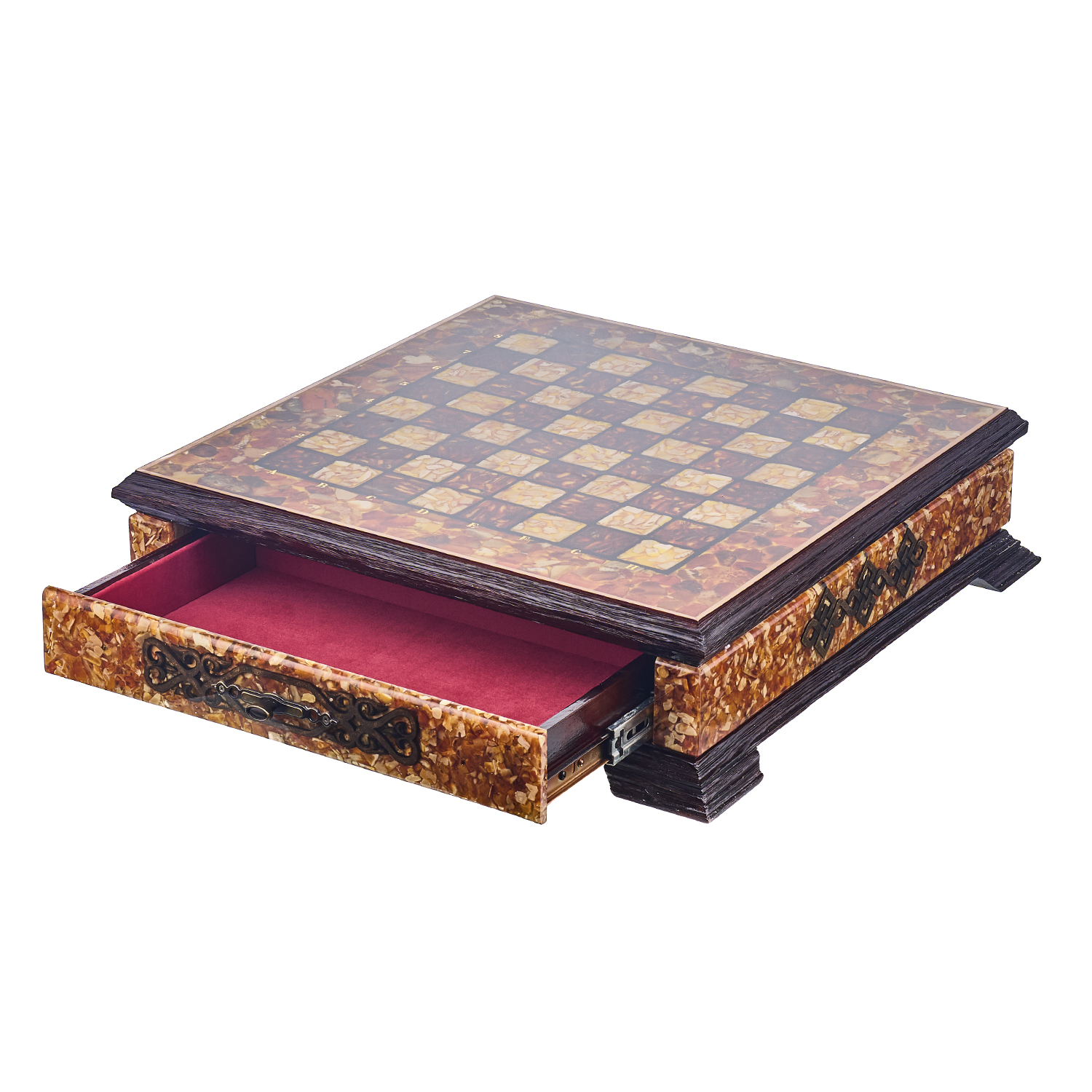 Шахматы с инкрустацией и фигурами из янтаря 60х60 см