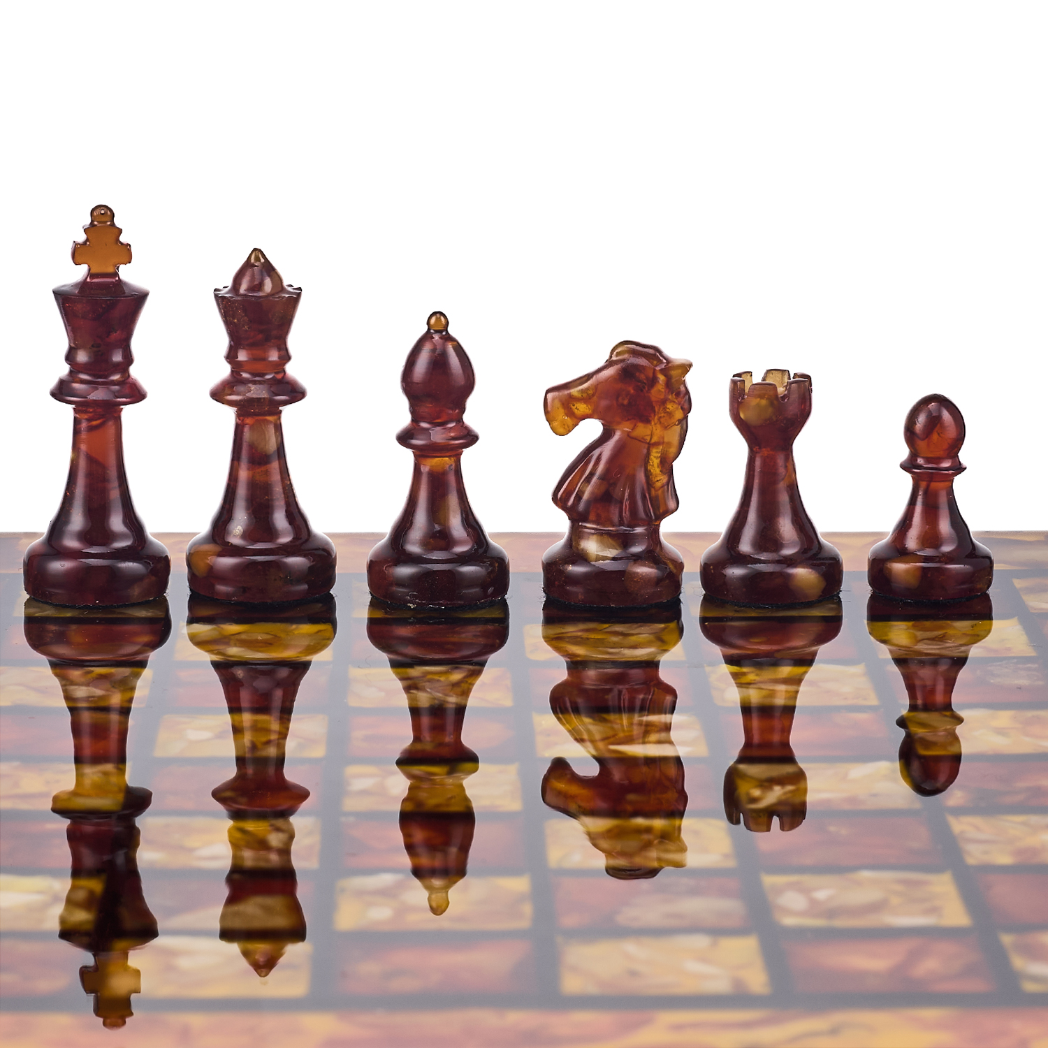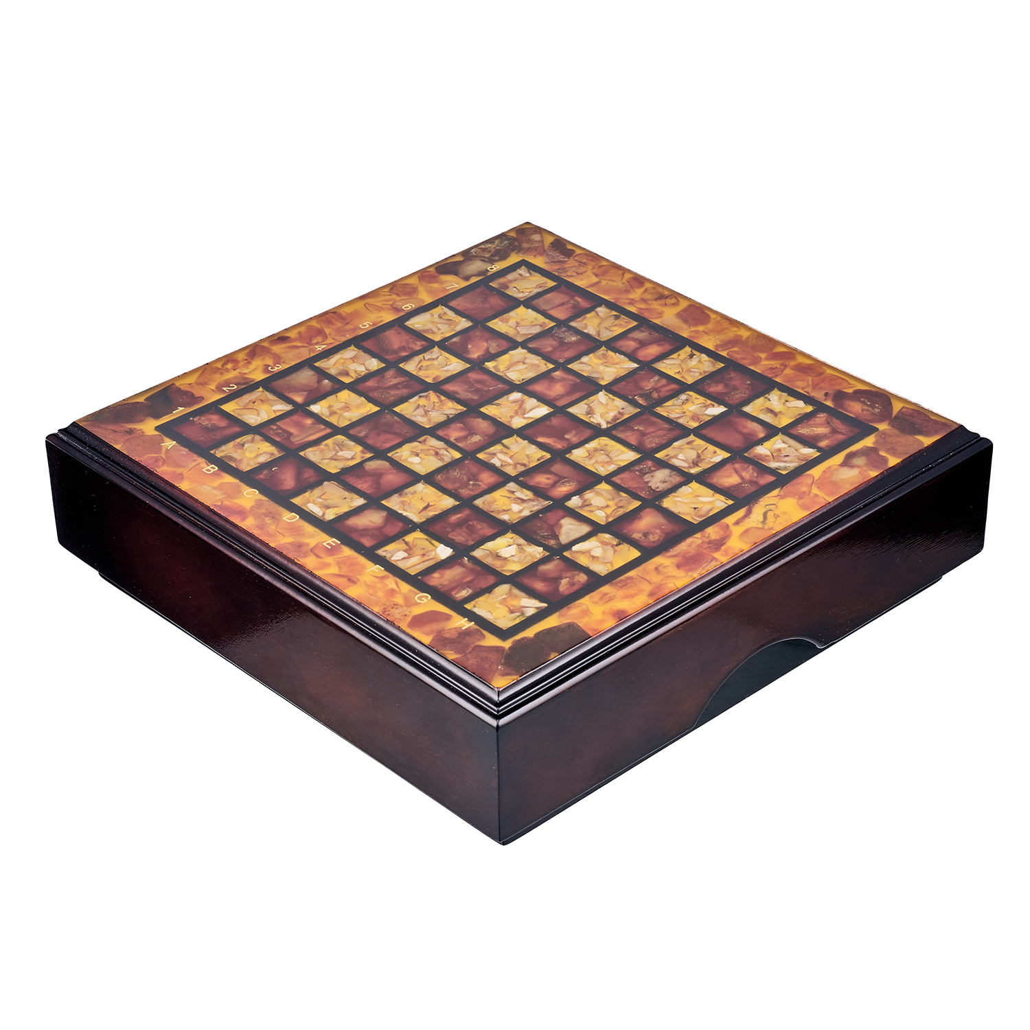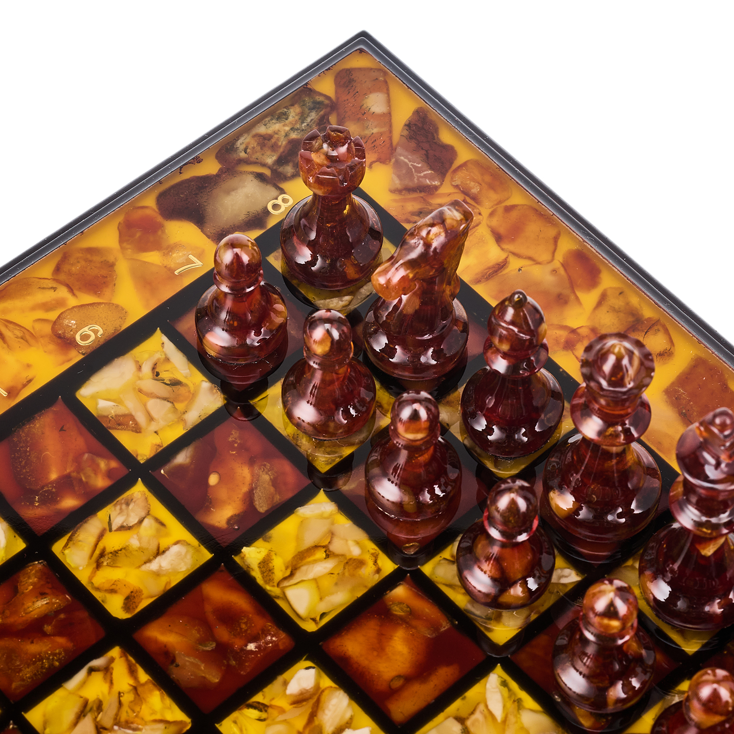 Шахматы с инкрустацией и фигурами из янтаря 30х30 см