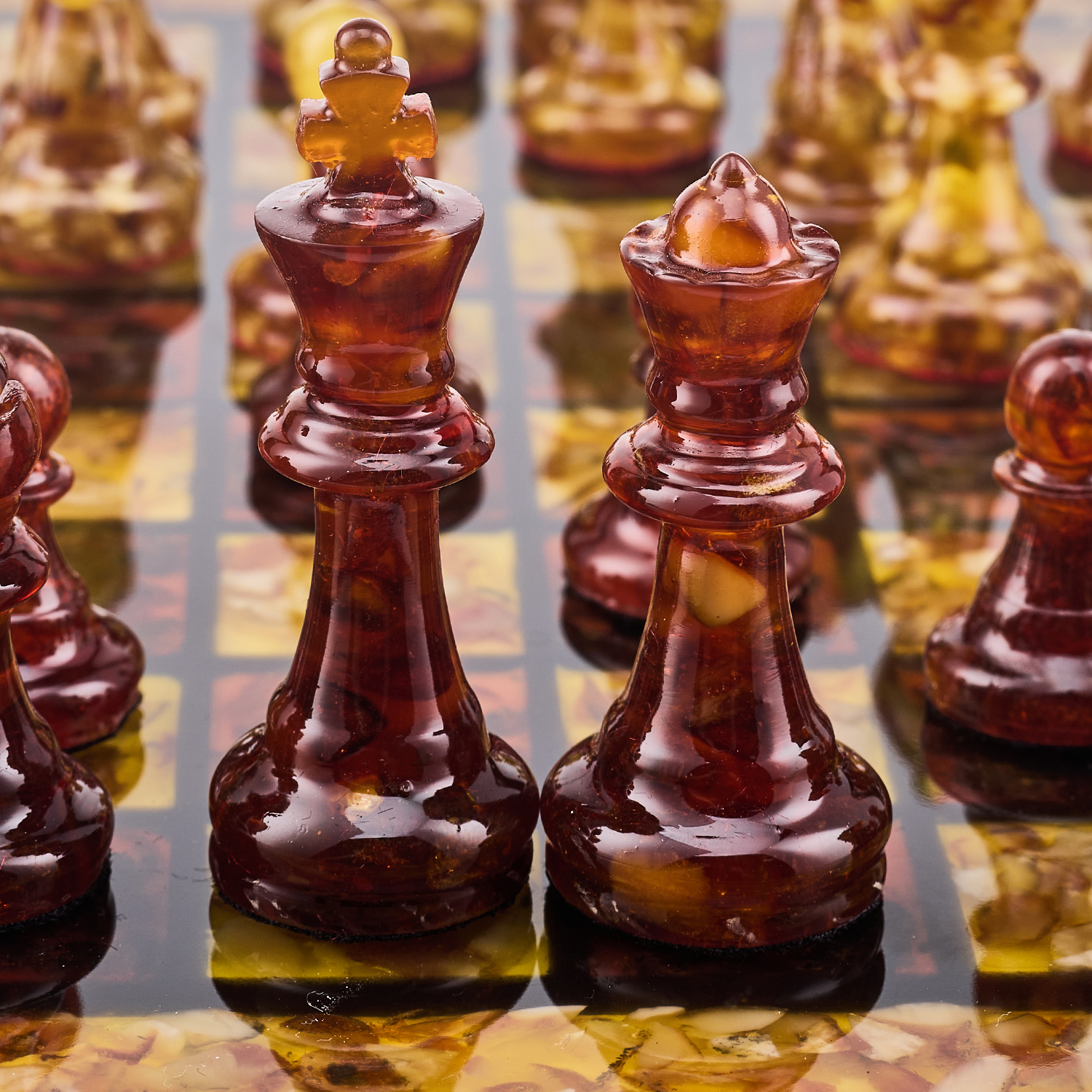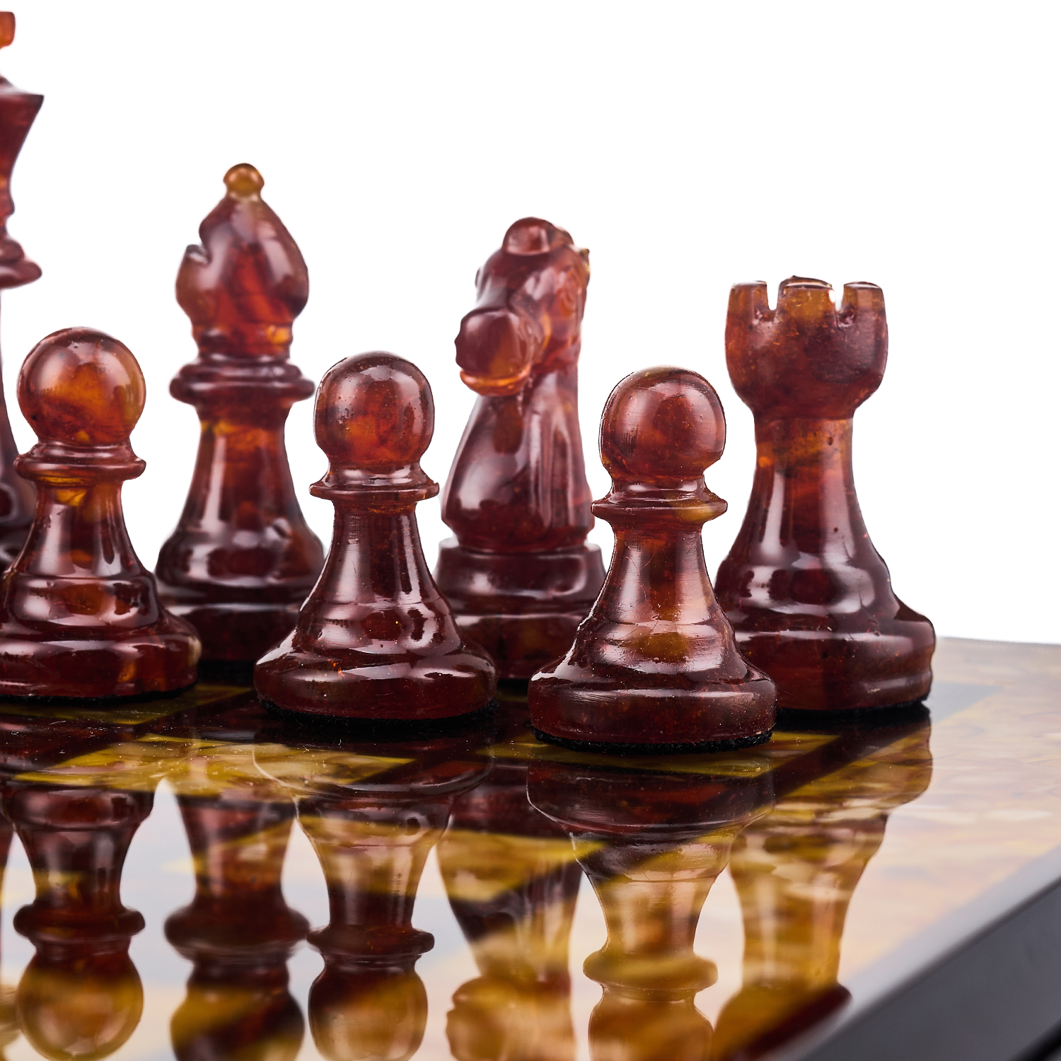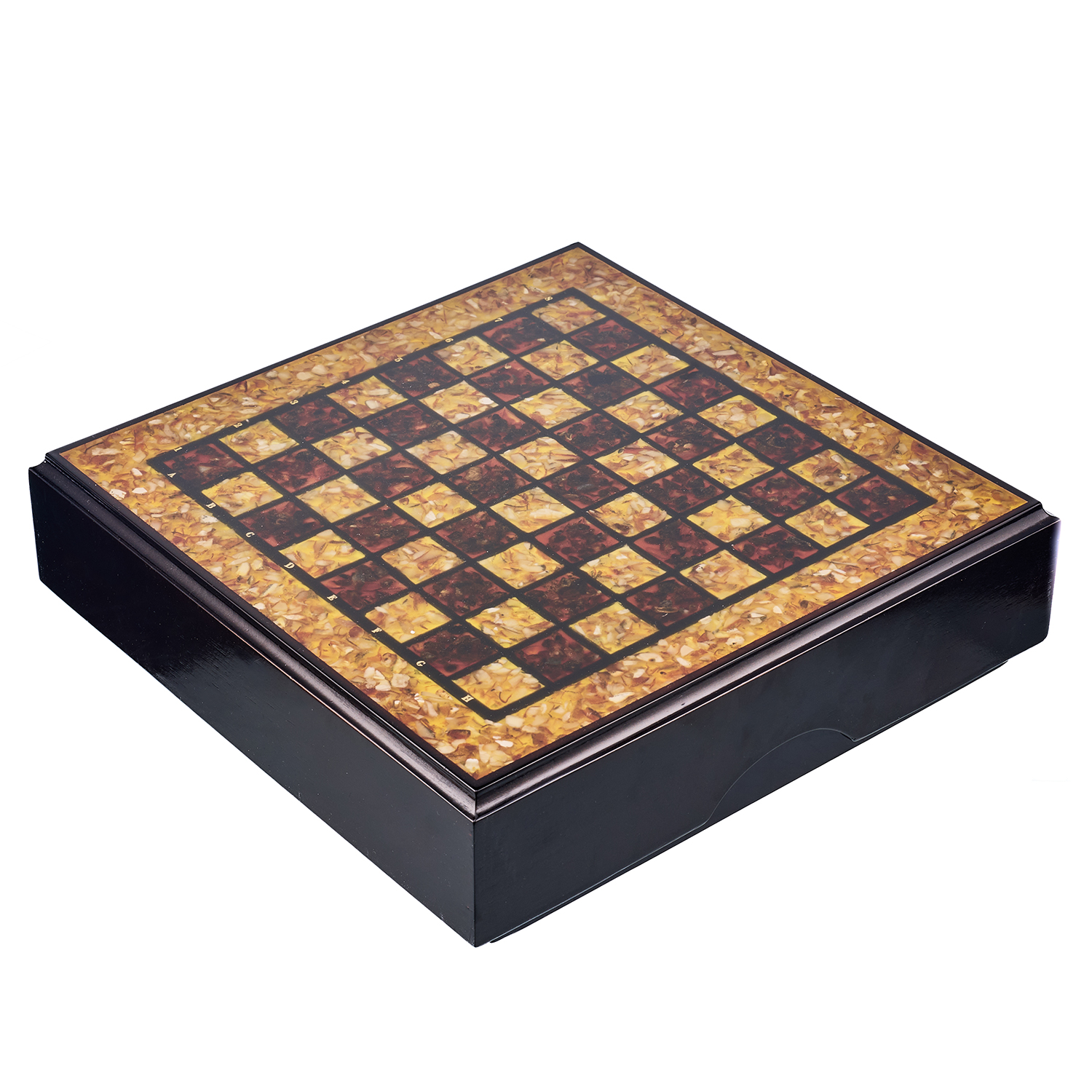 Шахматы с инкрустацией и фигурами из янтаря 30х30 см