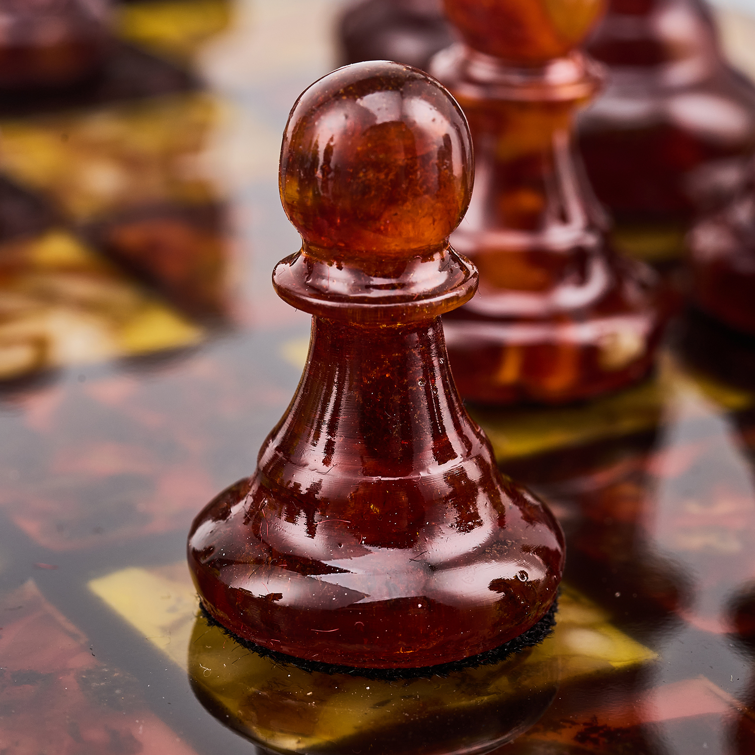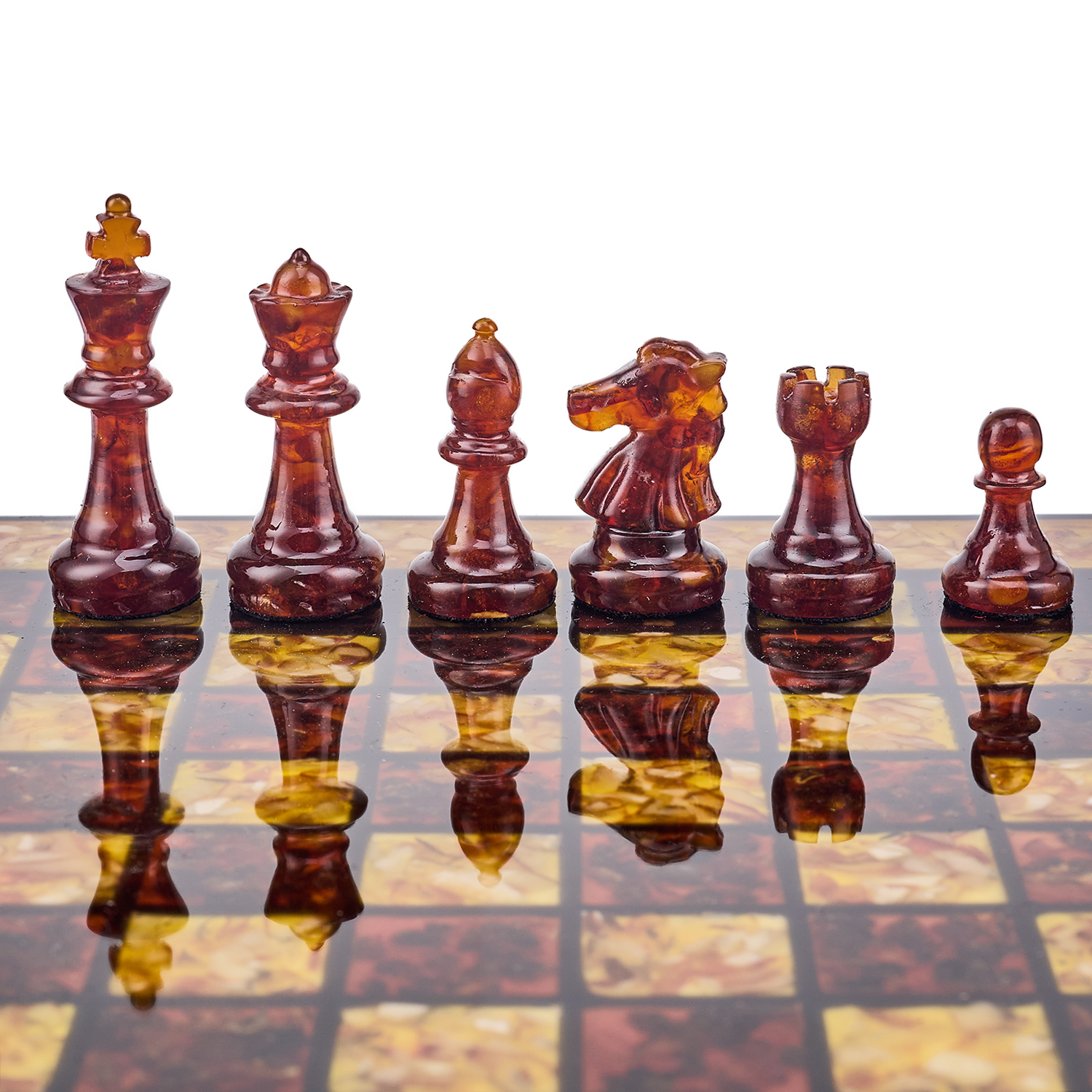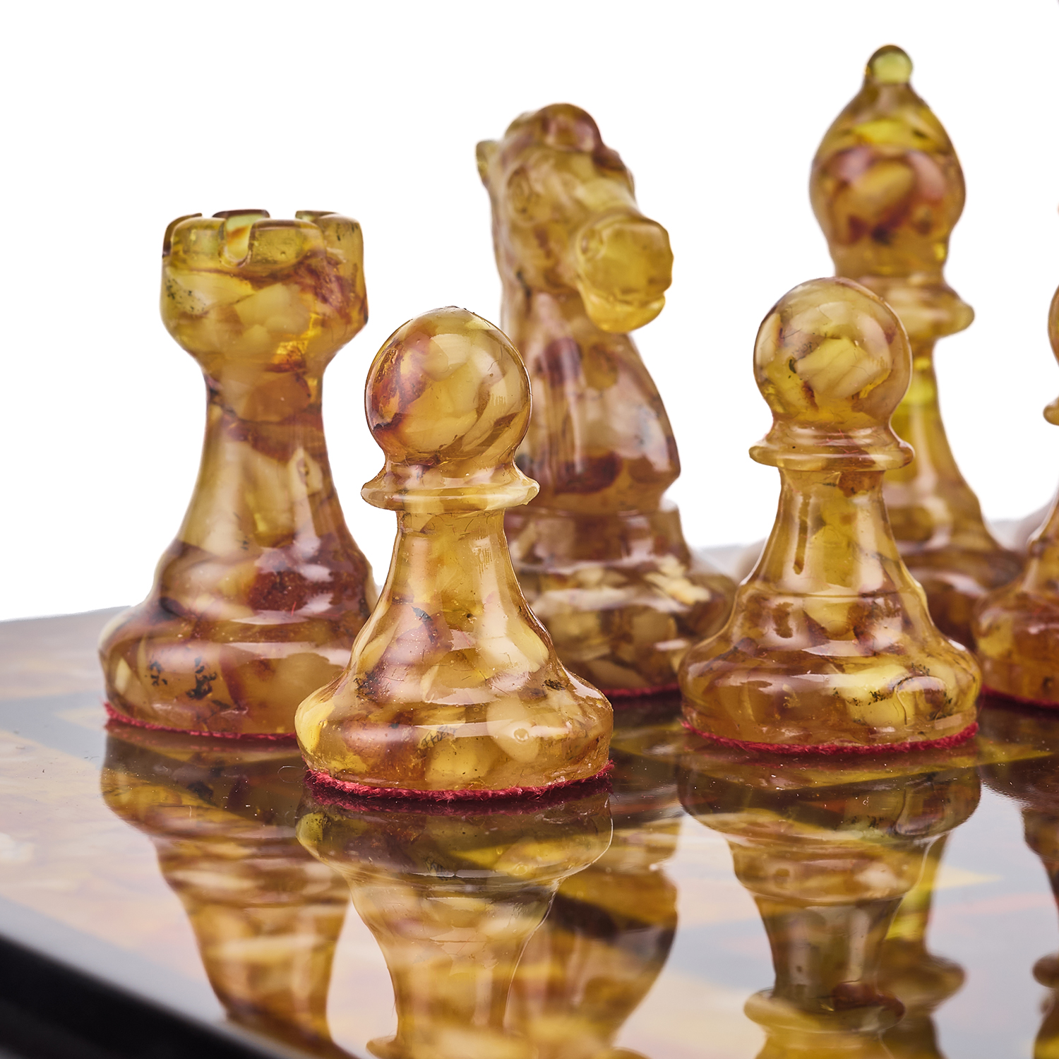 Шахматы с инкрустацией и фигурами из янтаря 30х30 см