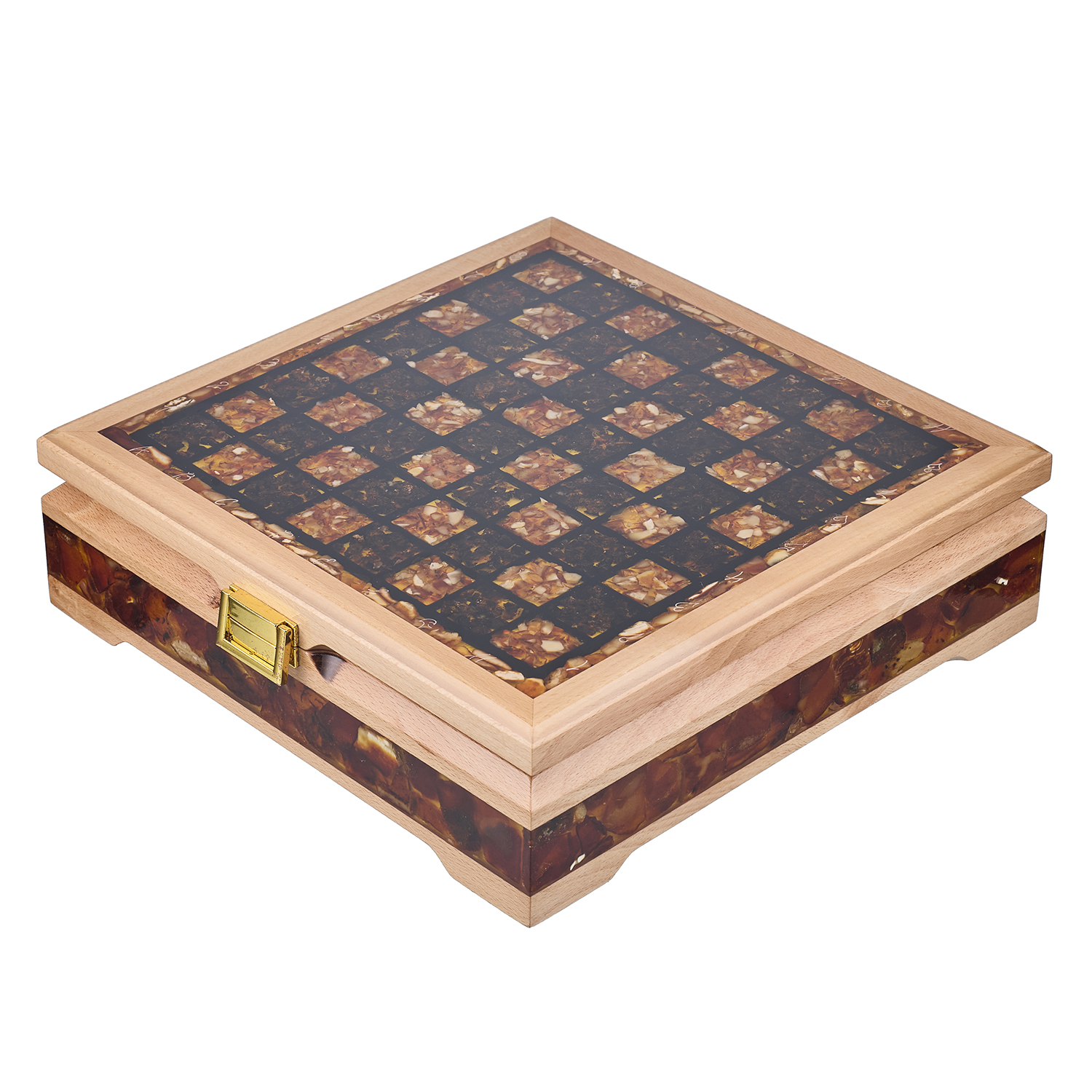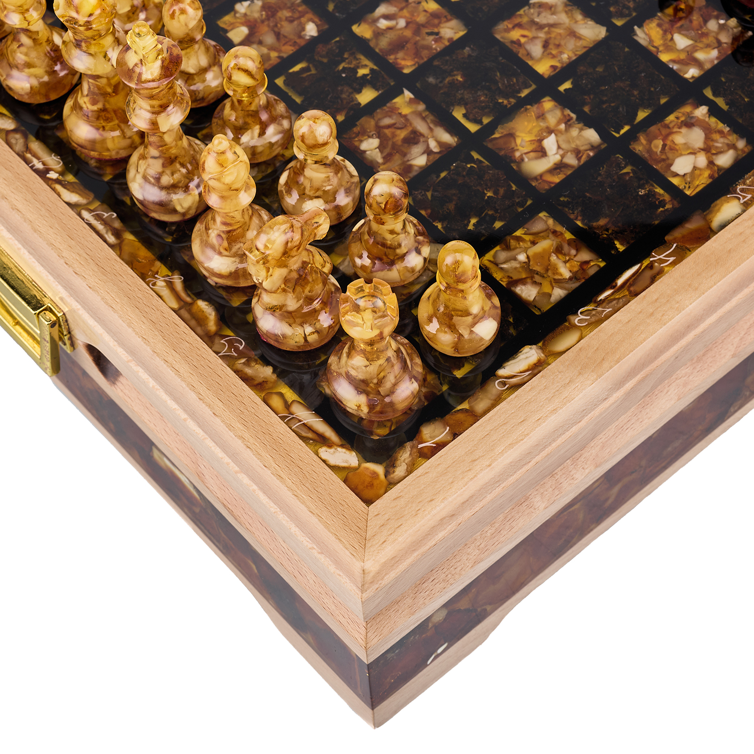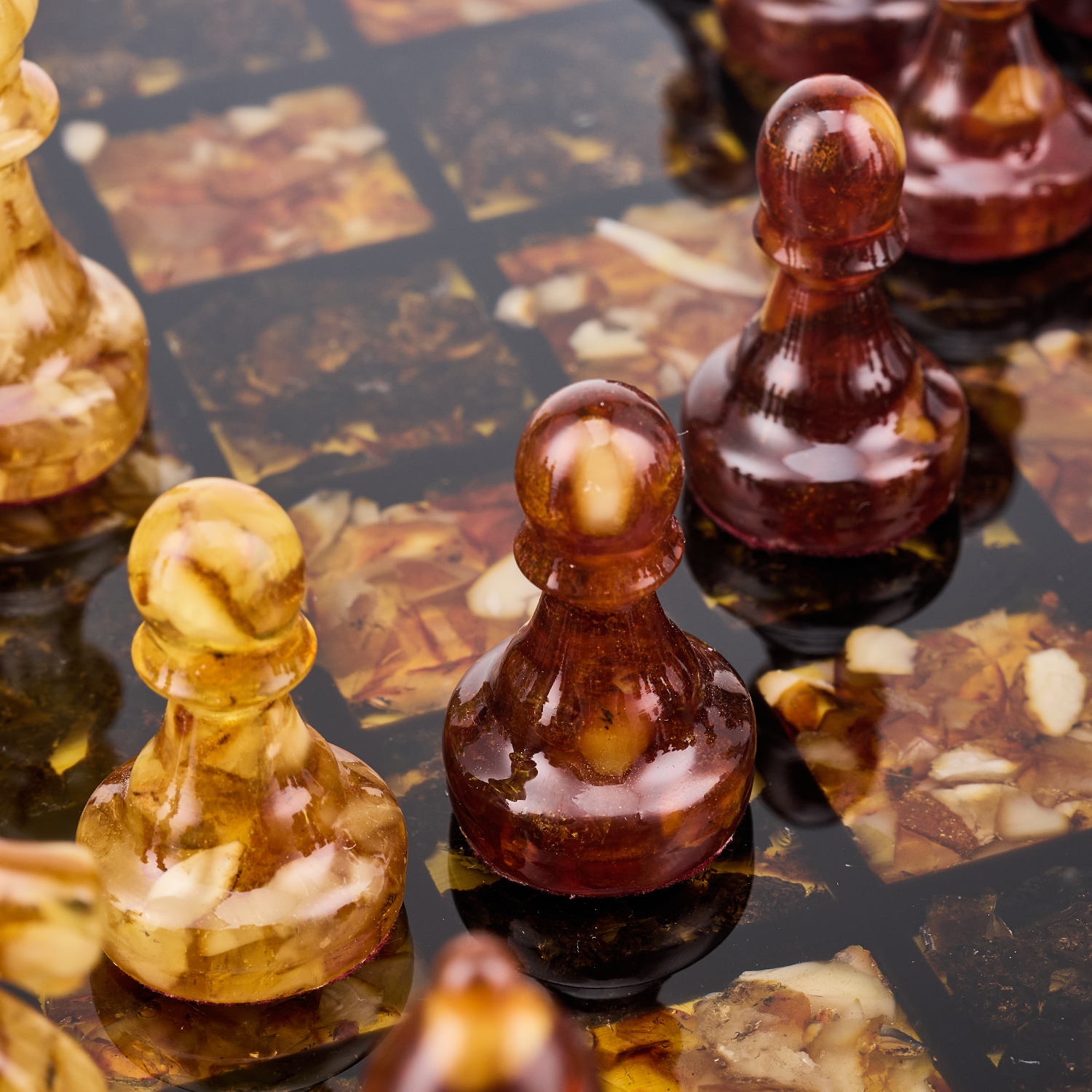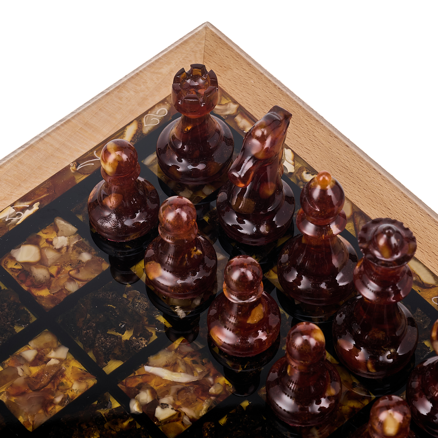 Шахматы с инкрустацией и фигурами из янтаря 28х28 см