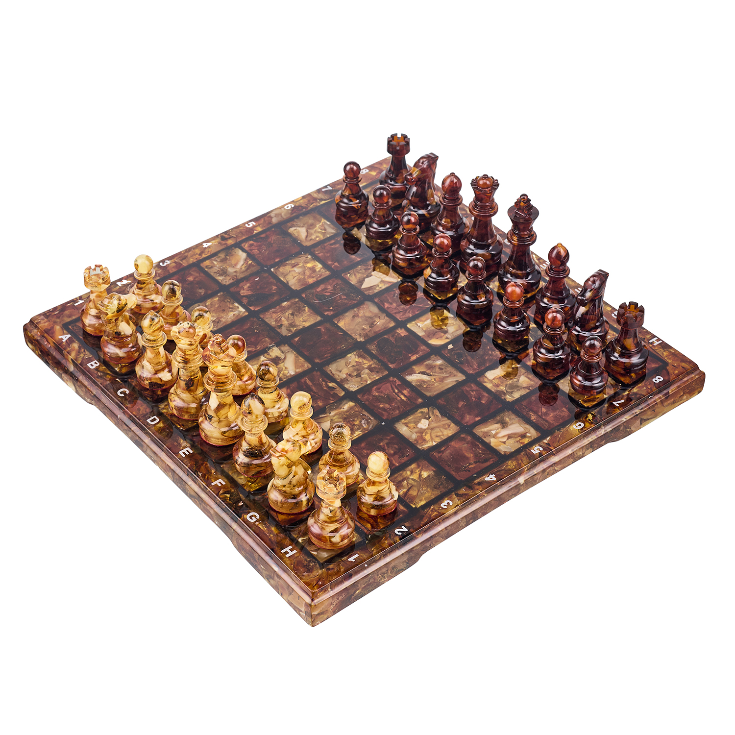 Шахматы с янтарными фигурами 28х28 см