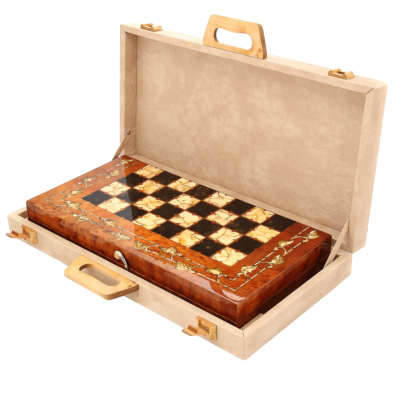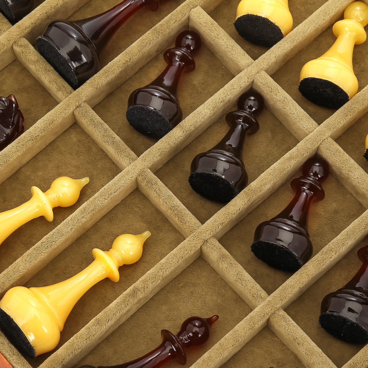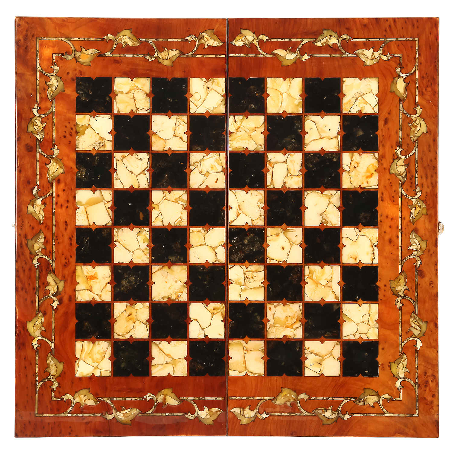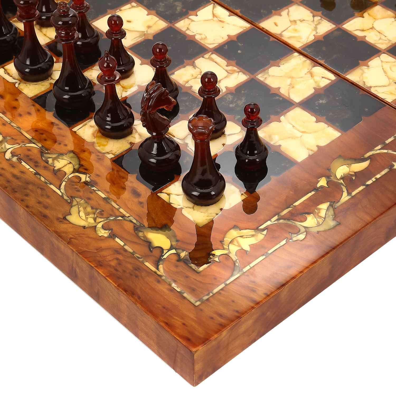 Шахматы с инкрустацией и фигурами из янтаря "Готика"