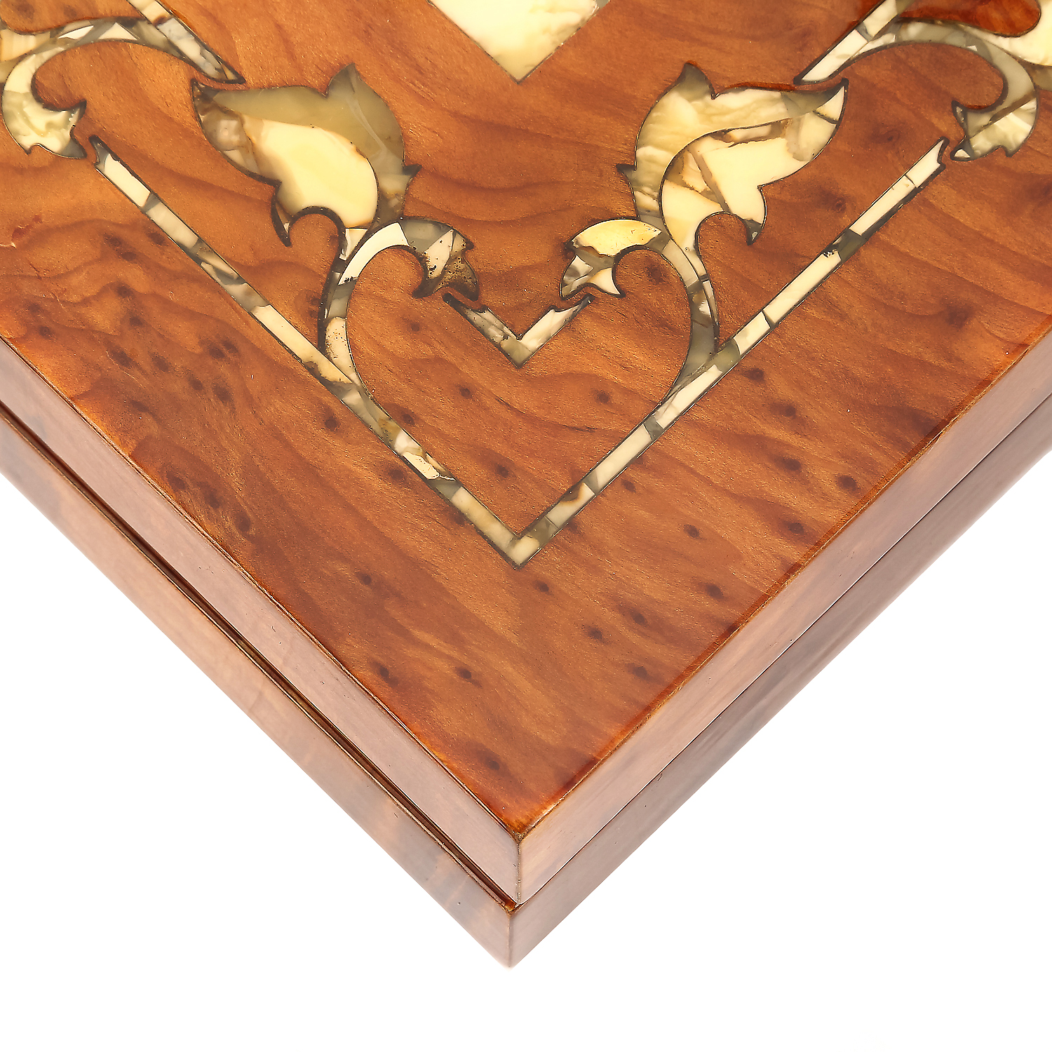 Дорогие шахматы из дерева с фигурами из балтийского янтаря - это, по-настоящему, роскошный аксессуар для людей, которые видят художественную ценность изделия в целом и внимательны к деталям. Каждый элемент этих изысканных шахмат выполнен мастерами вручную, что несомненно добавляет ценности изделию. Наши эксклюзивные шахматы - это не просто потоковая продукция, а произведение искусства, в разработке которого мы учитываем не только внешнюю красоту, но и функциональность, а фигуры из драгоценного балтийского янтаря определенно добавляют дорогому шахматному набору элитарности, делая его неповторимым и элегантным. Удивите своих друзей и близких уникальным и дорогим подарком, который будет радовать многие годы и станет настоящим украшением дома или офиса. Шахматы деревянные с инкрустацией и фигурами из янтаря "Готика".