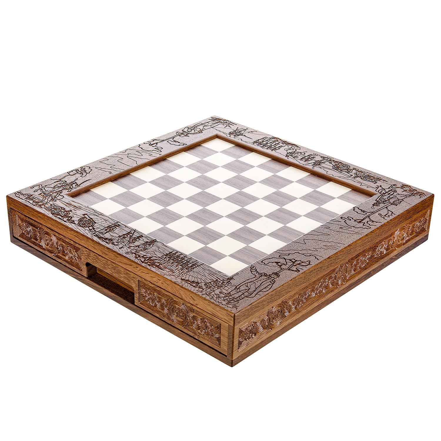 Материалы: мореный дуб, цинковый сплав.