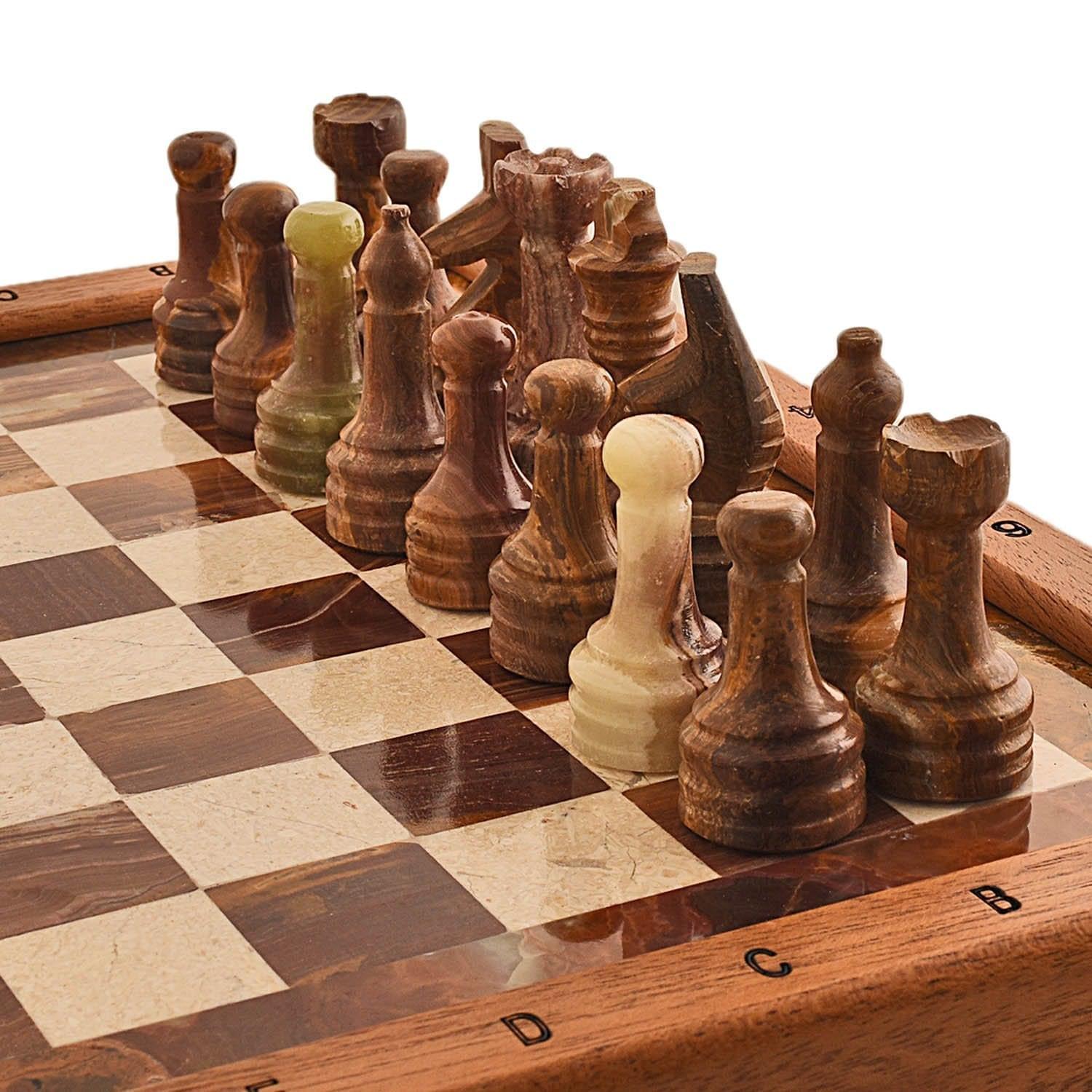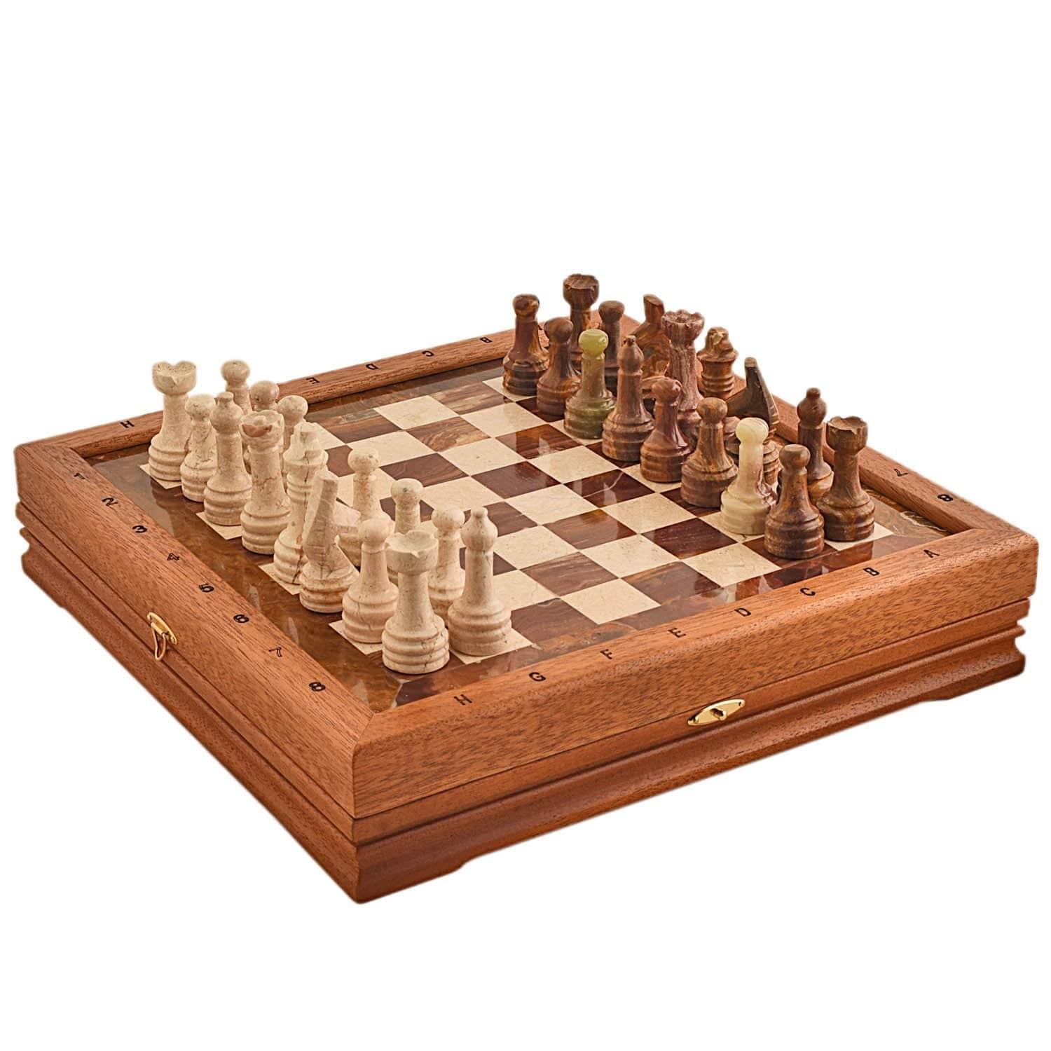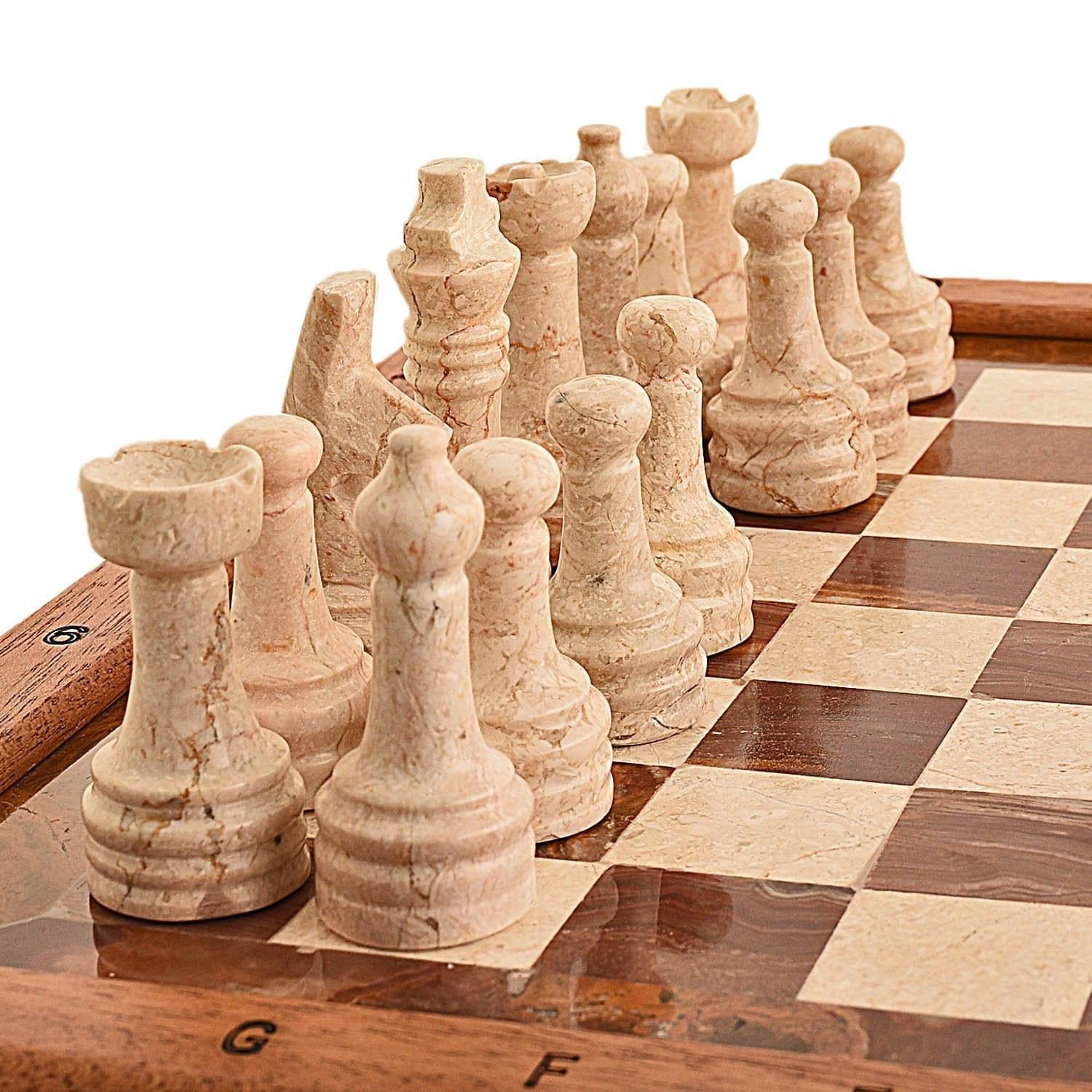 Шахматы деревянные с мраморным полем и фигурами "Подарочные"