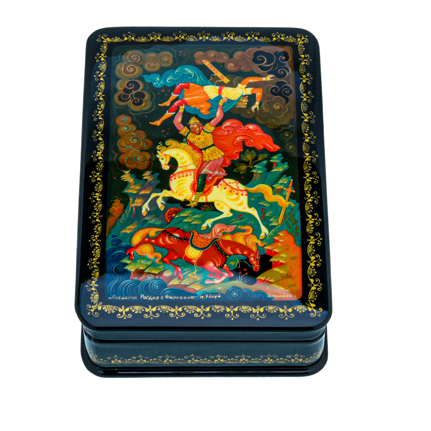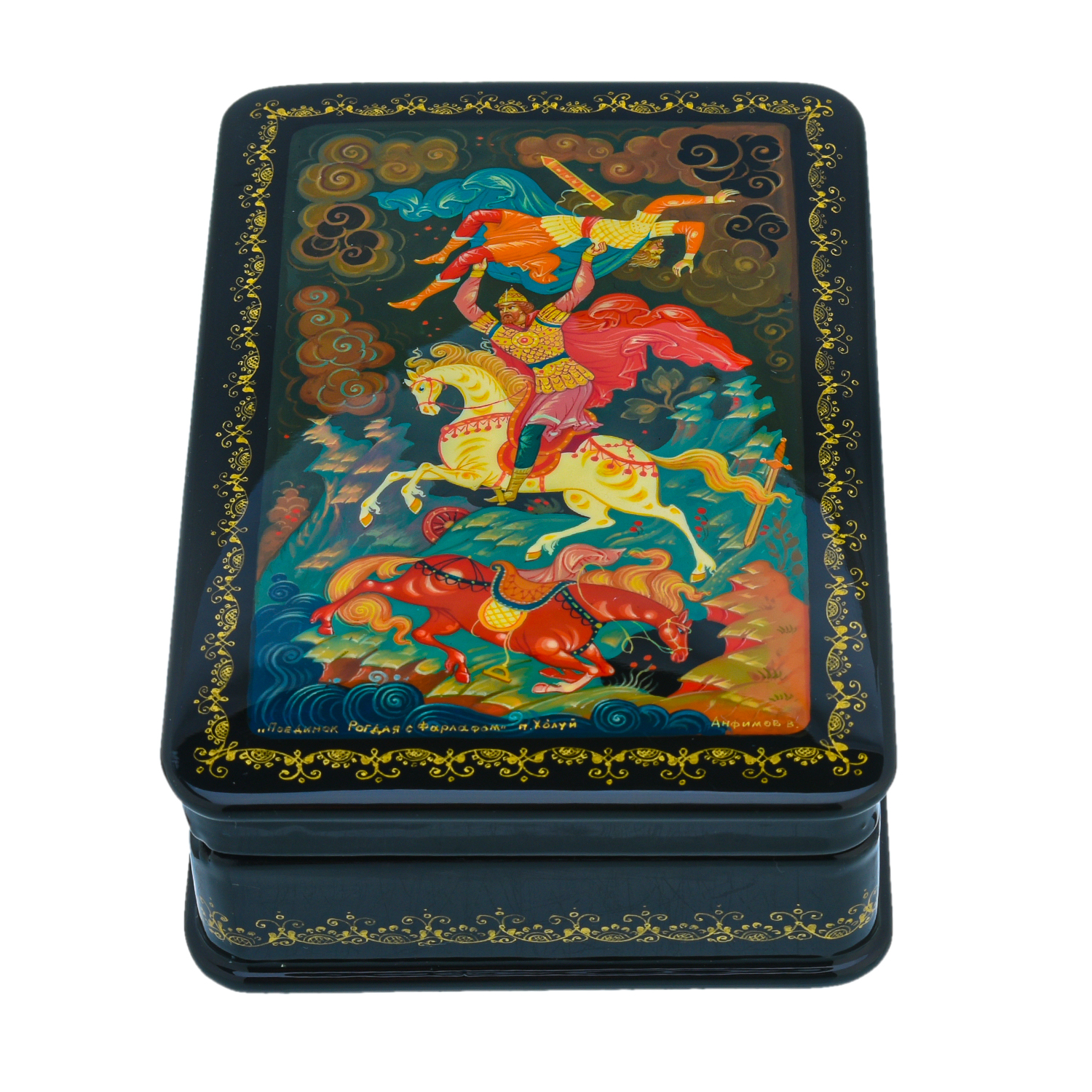 Шкатулка с художественной росписью "Поединок Рогдая с Фарлафом"