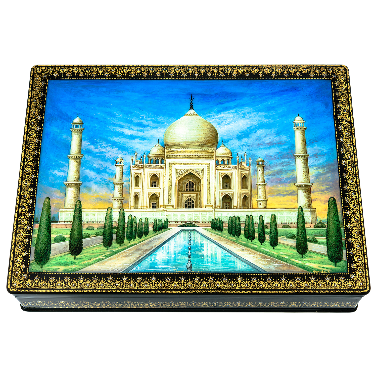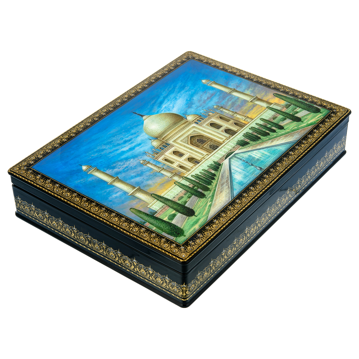 Шкатулка с художественной росписью "Тадж-Махал".Материалы: папье-маше, краски, лак.
