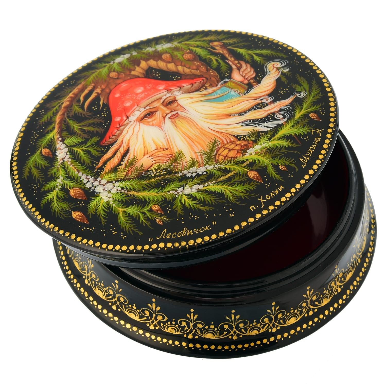 Лаковая миниатюра шкатулка "Лесовичок" Холуй