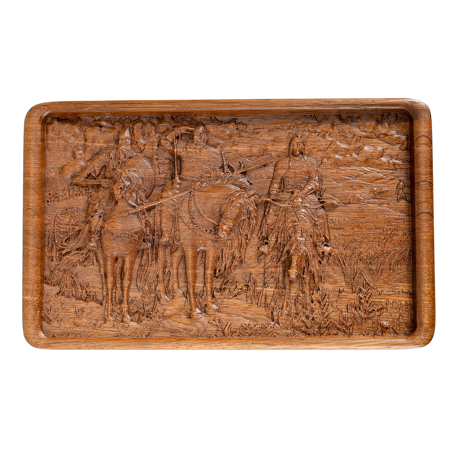 Деревянная резная шкатулка "Богатыри"