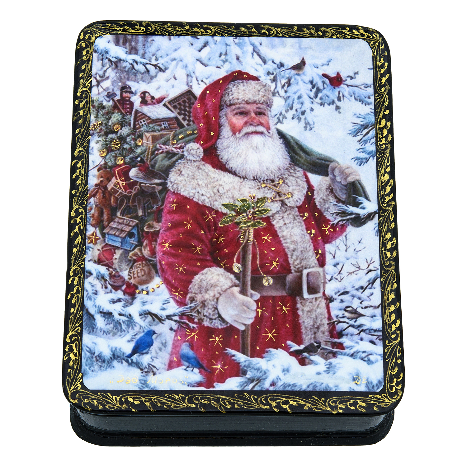 Шкатулка с художественной росписью "Дед Мороз".Материалы: папье-маше, краски, лак.