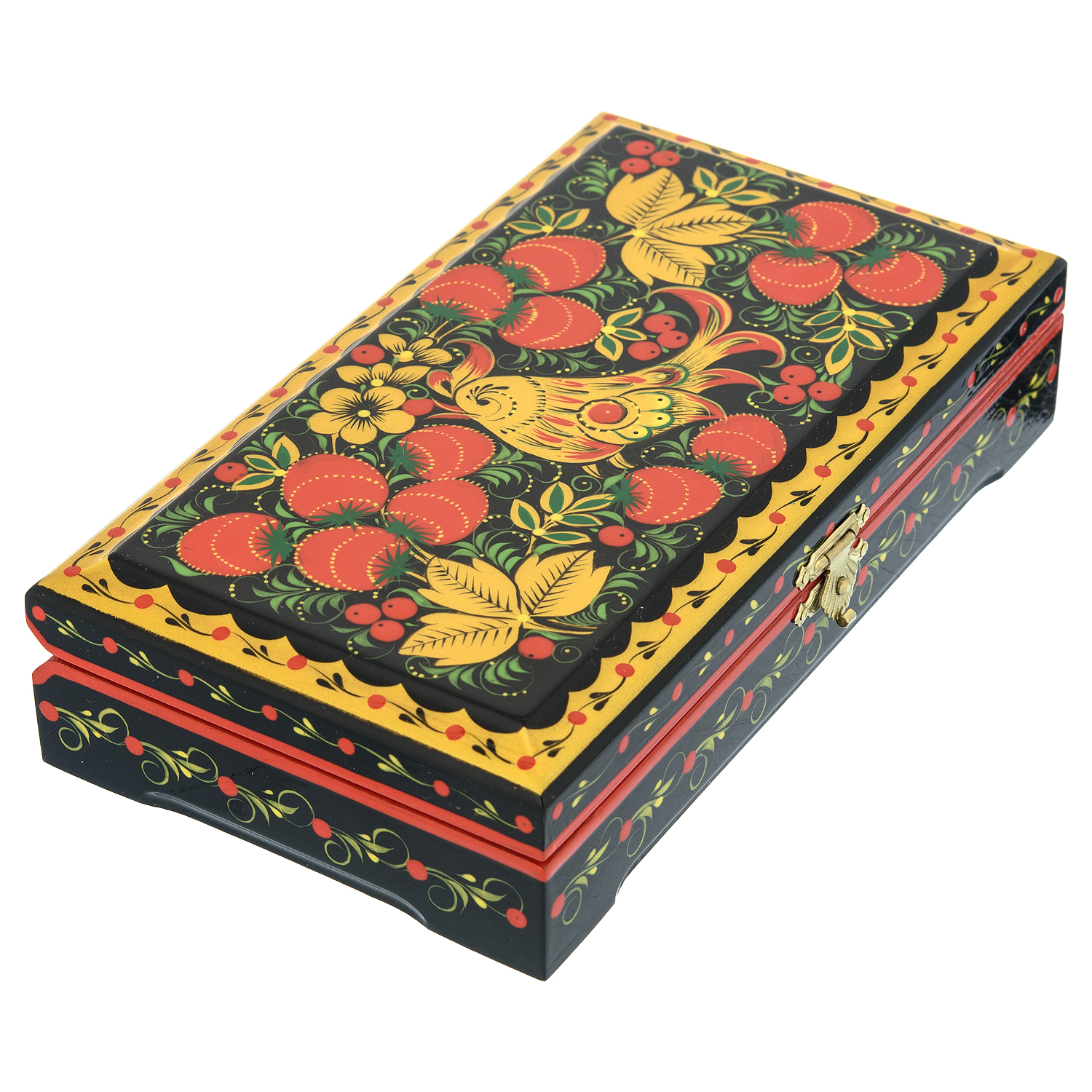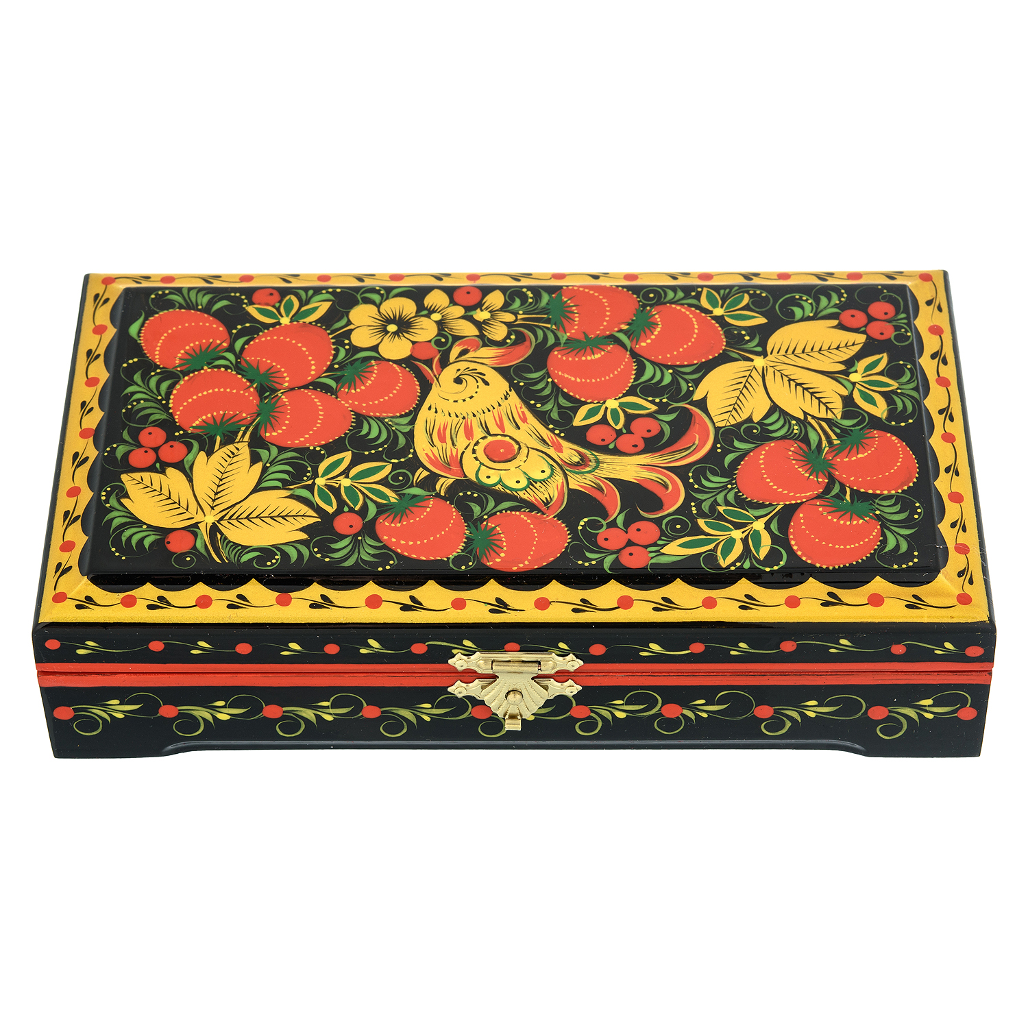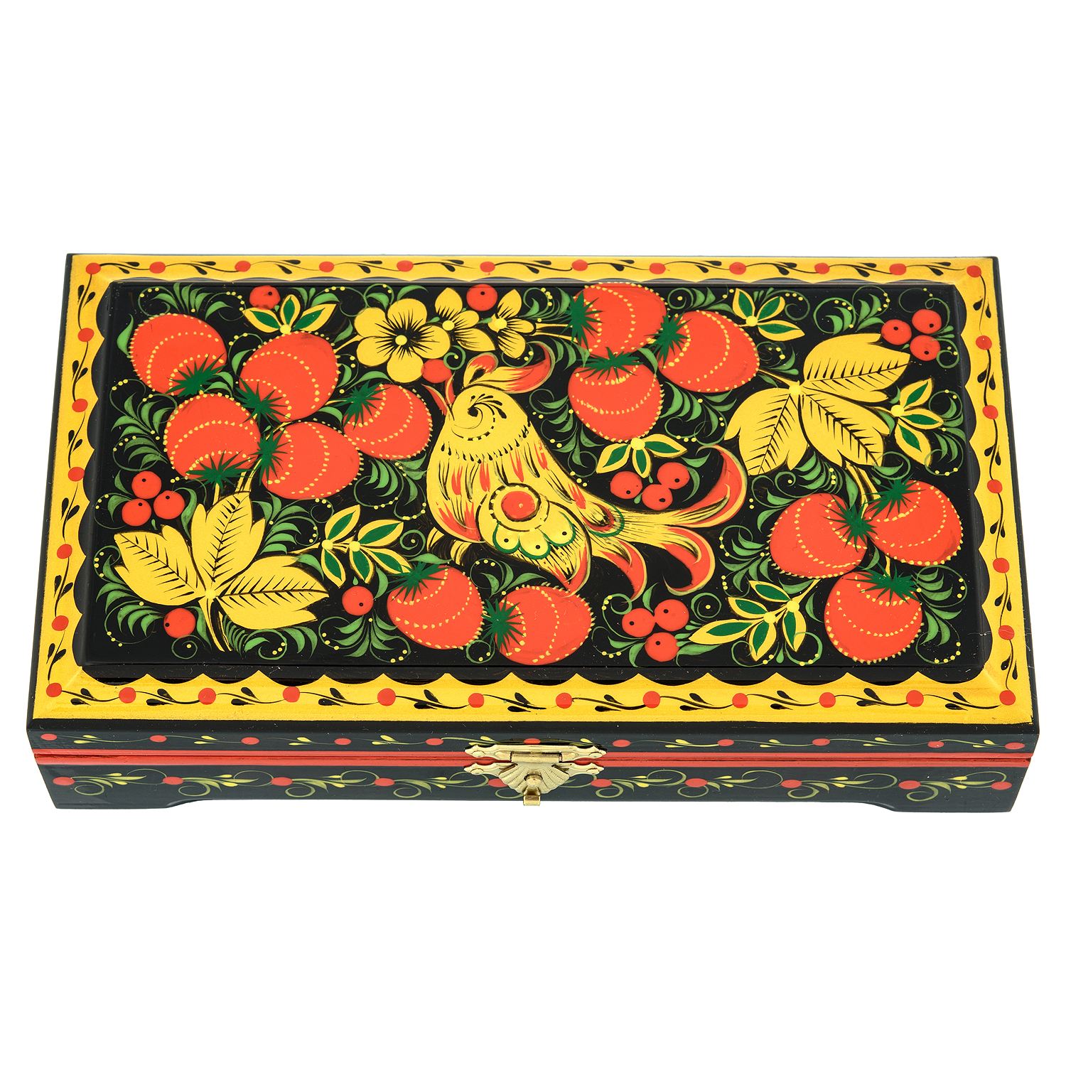 Деревянная шкатулка "Птичка и клубника". Хохлома