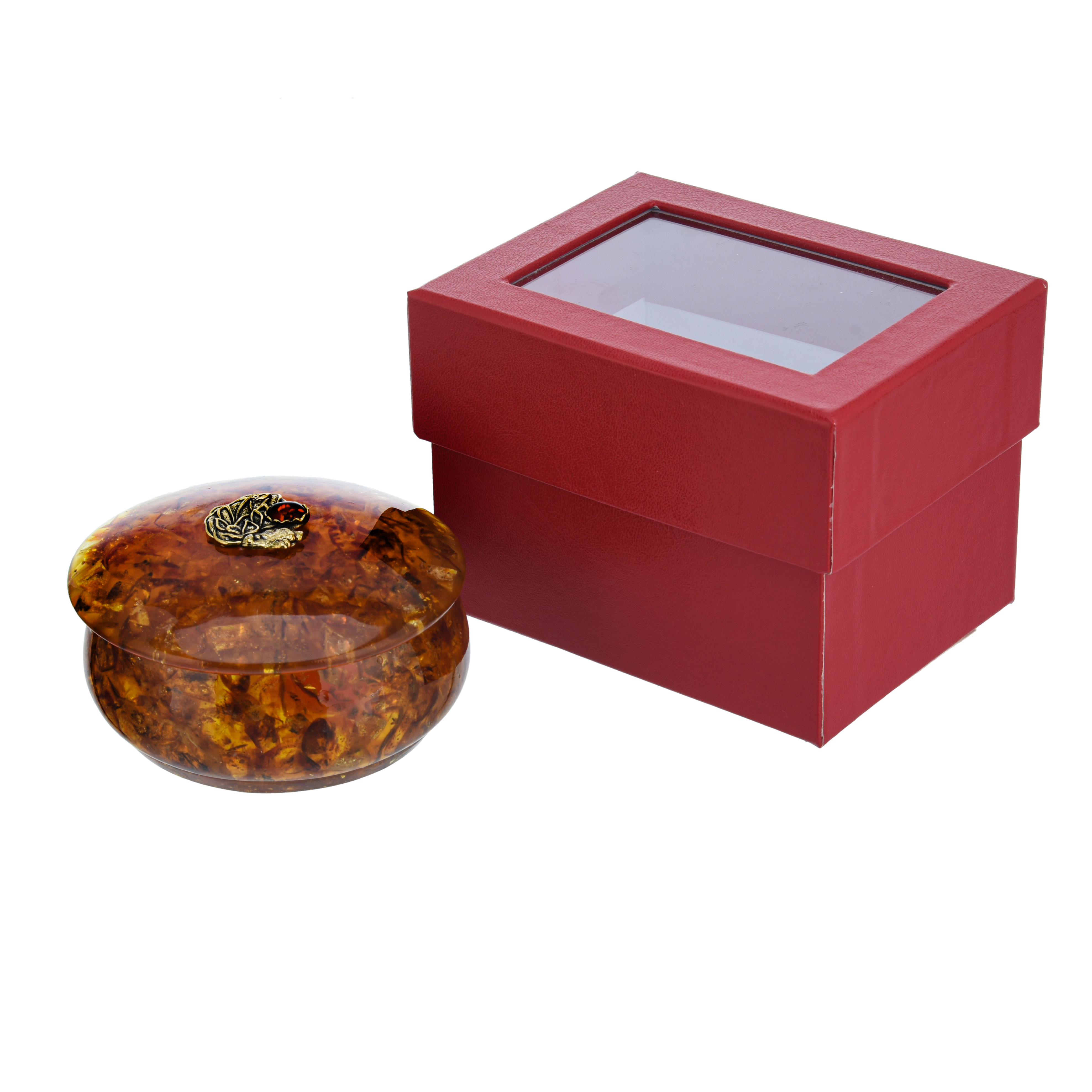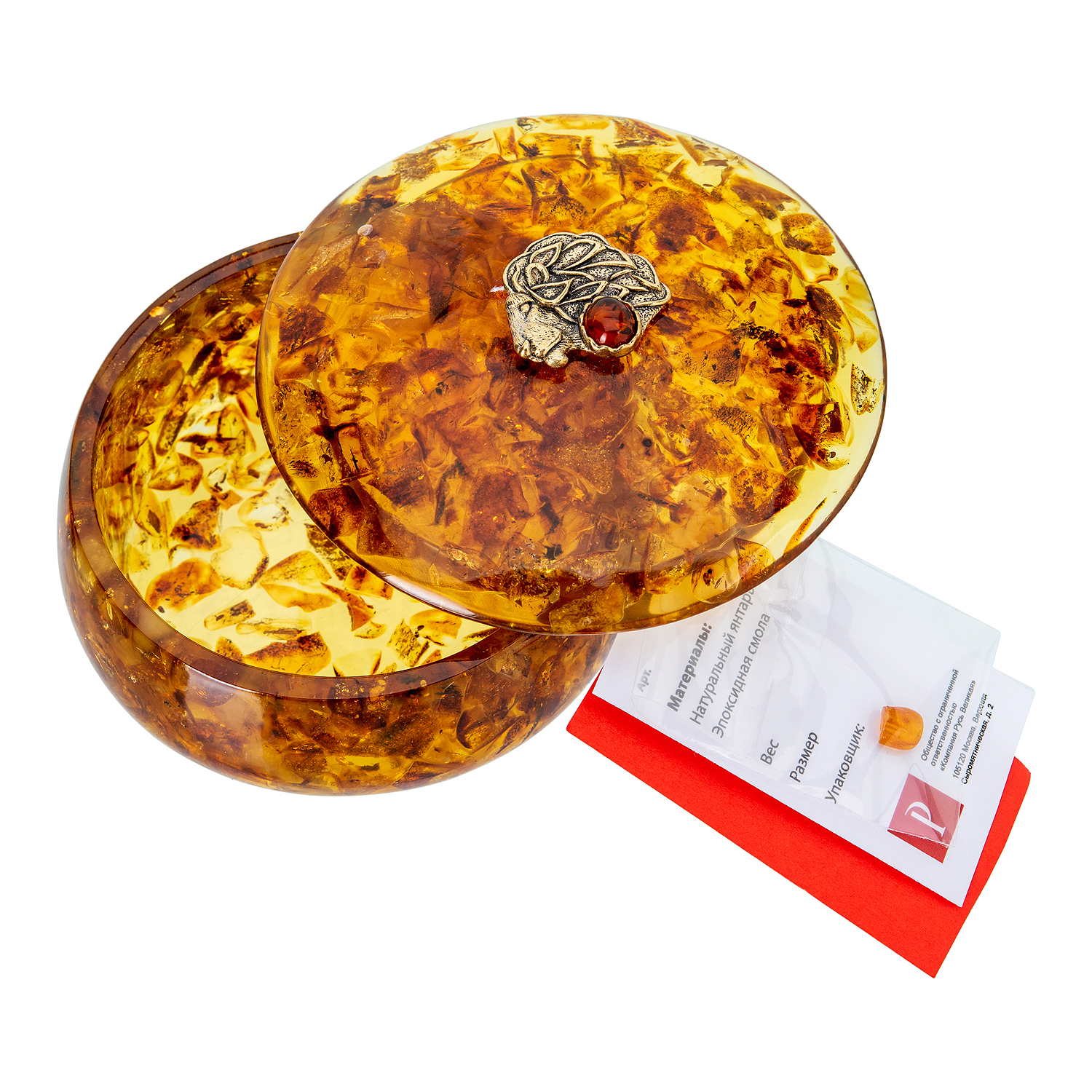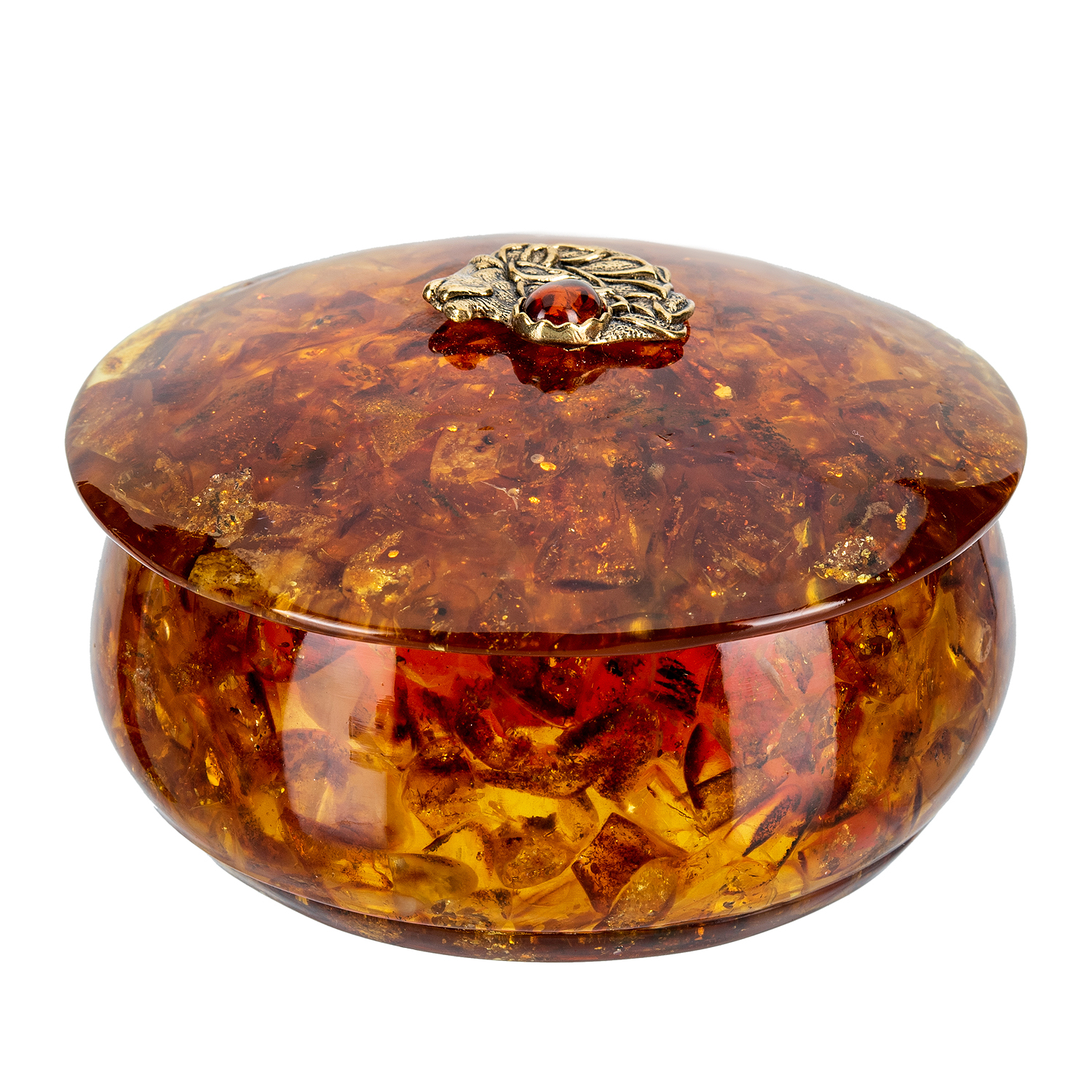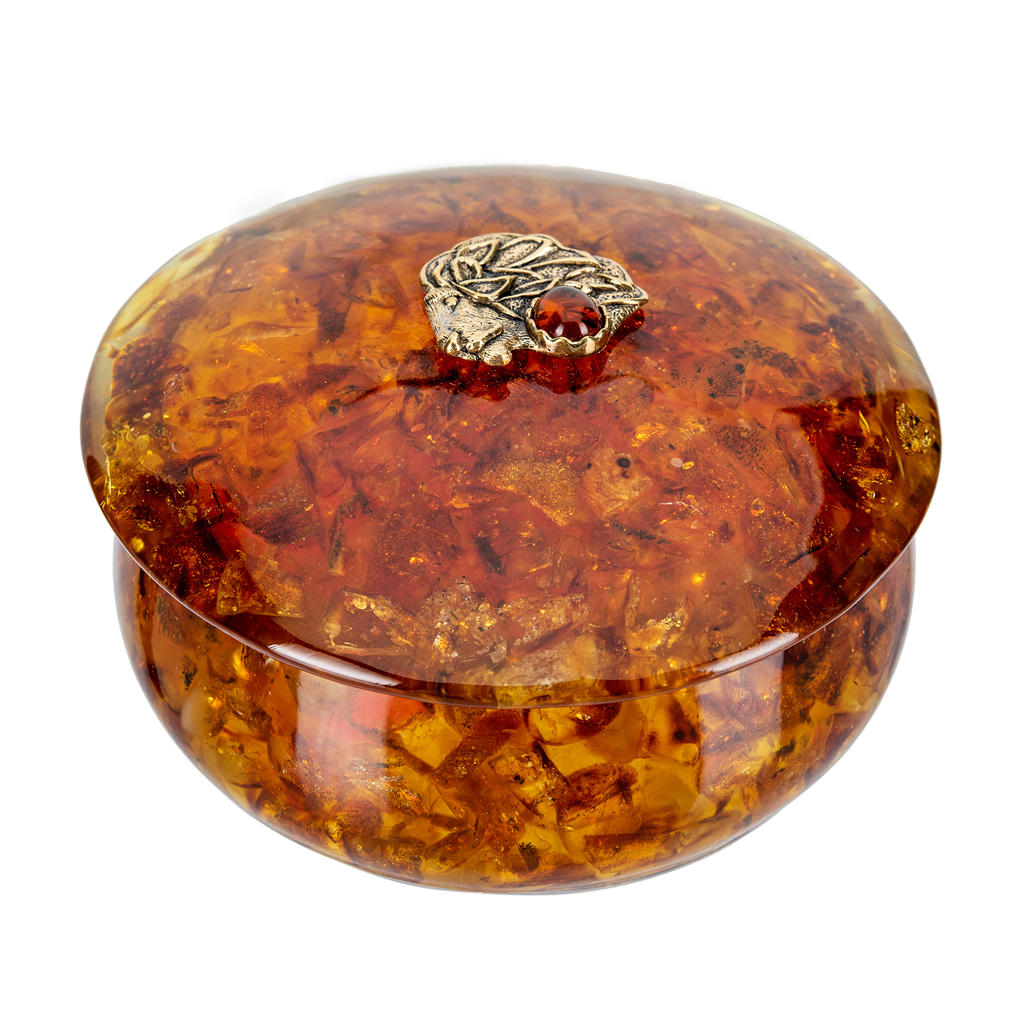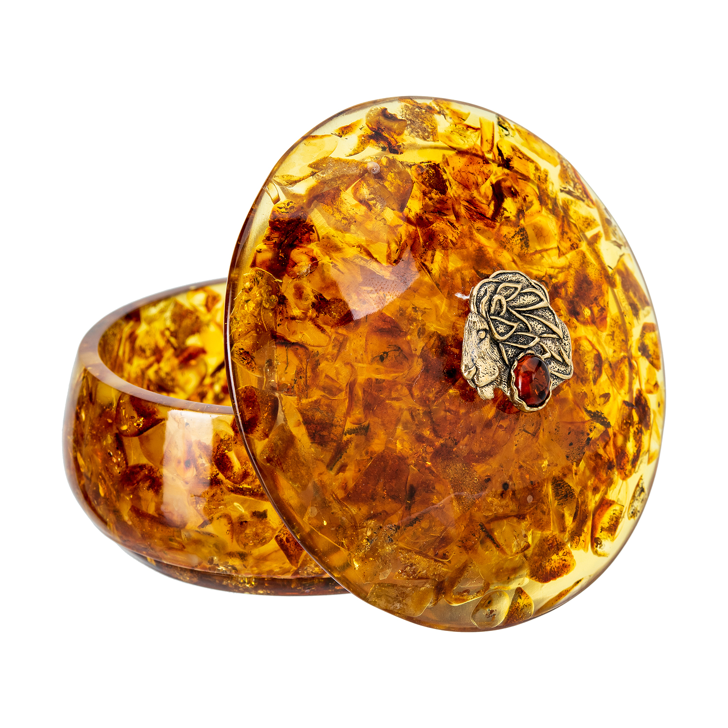 Круглая шкатулка из янтаря "Знак зодиака Лев"