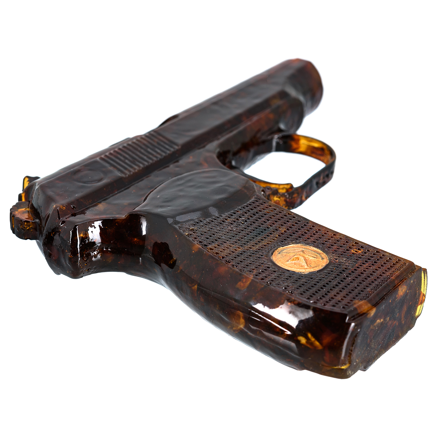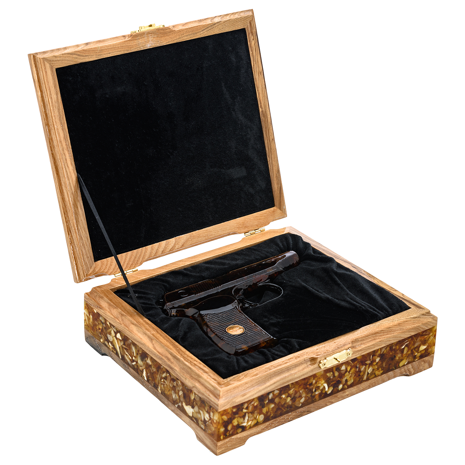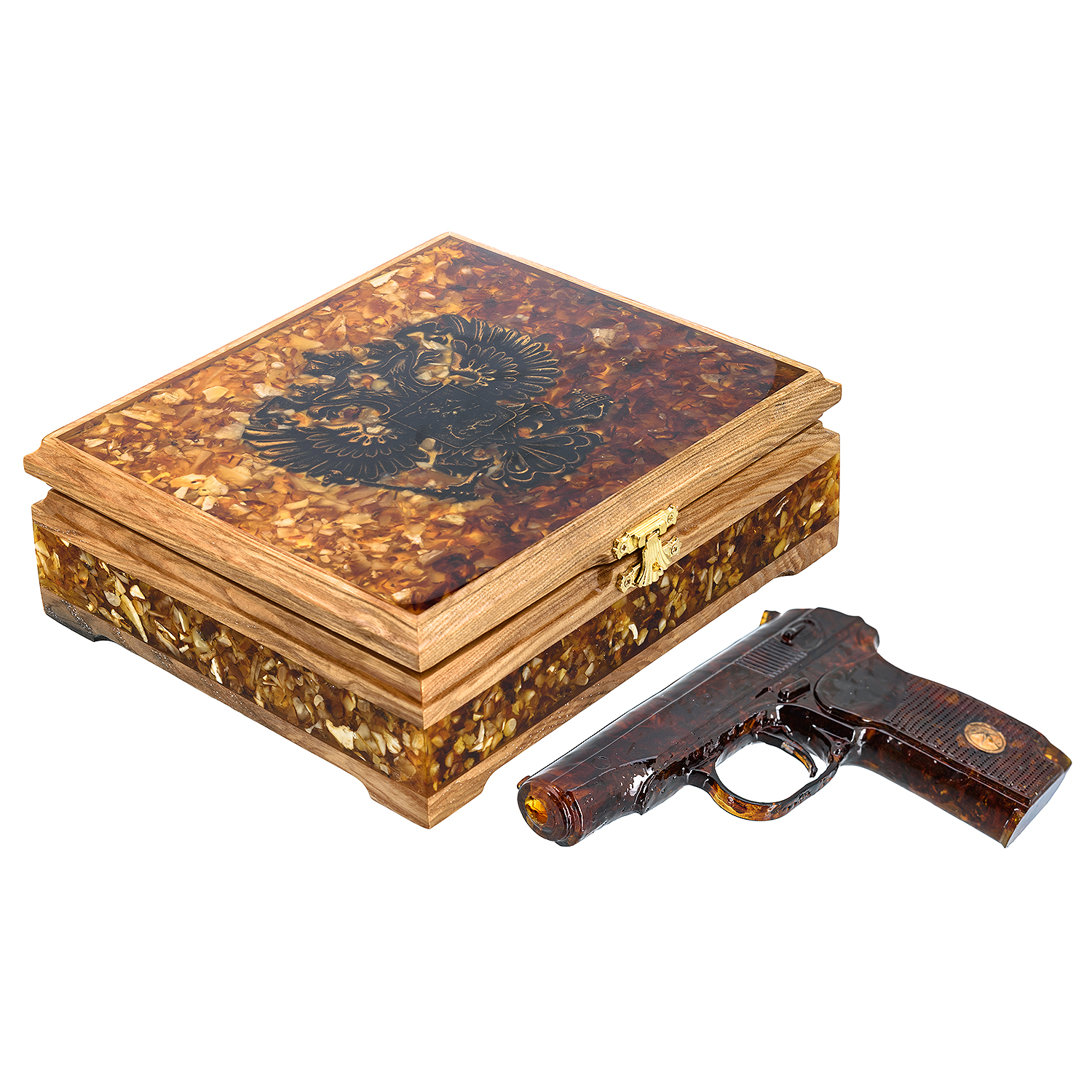 Сувенир из янтаря "Шкатулка с пистолетом"