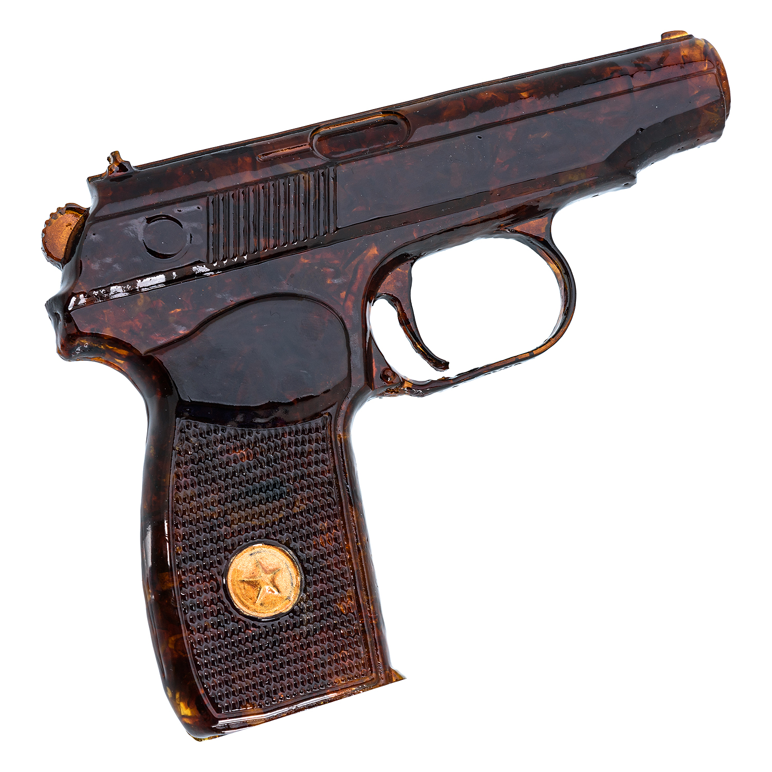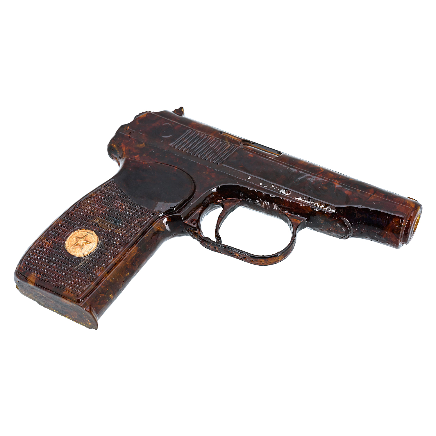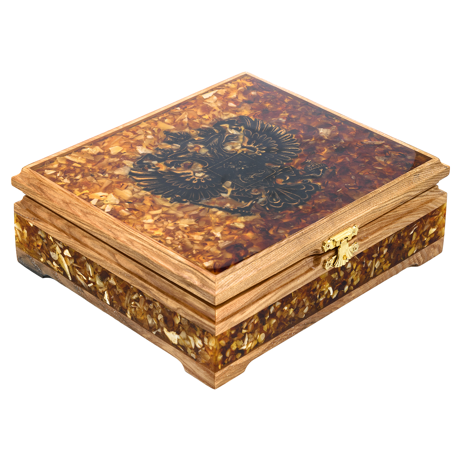 Сувенир из янтаря "Шкатулка с пистолетом"
