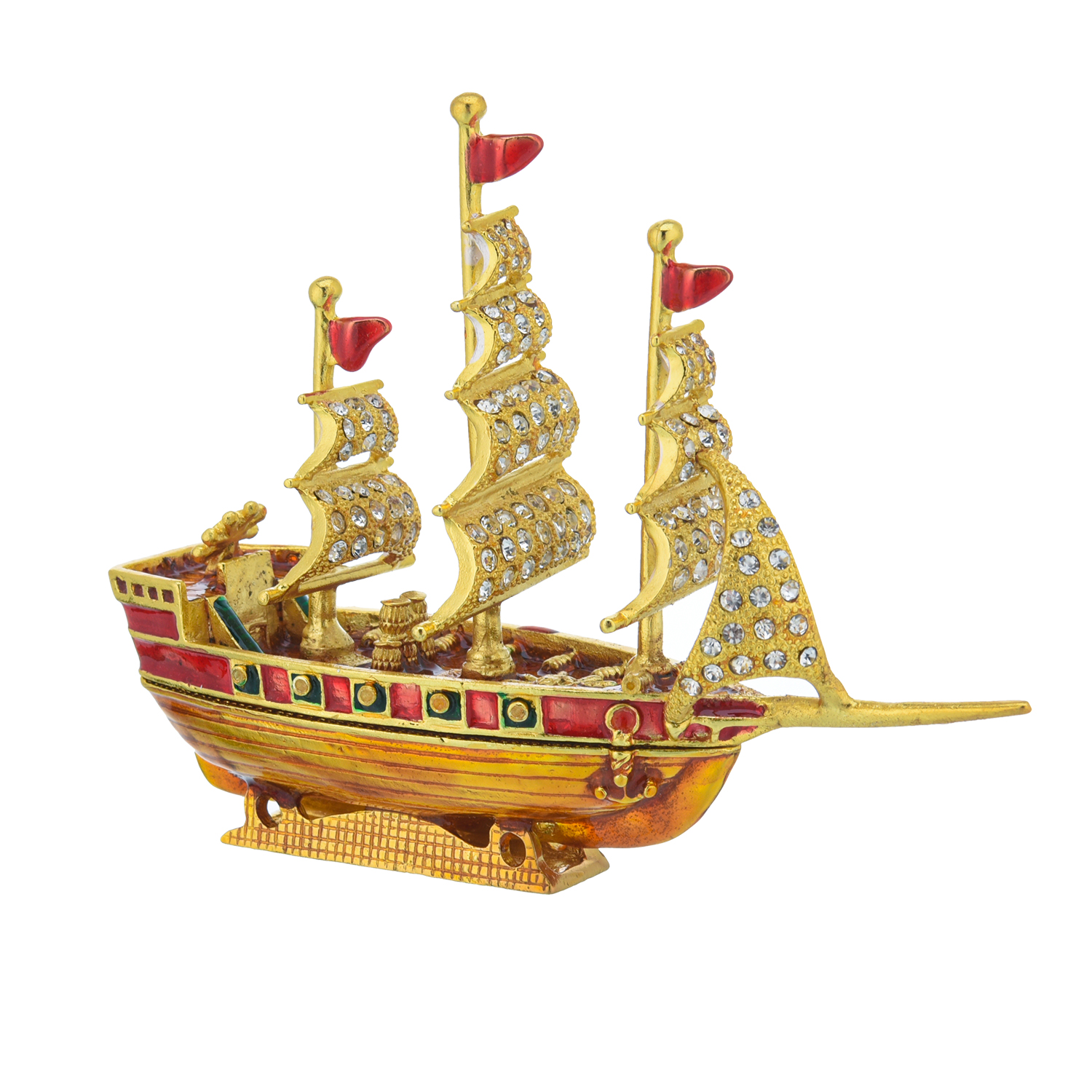 Шкатулка "Корабль". Традиции Фаберже.Материалы: латунь, золочение, эмаль, стразы.