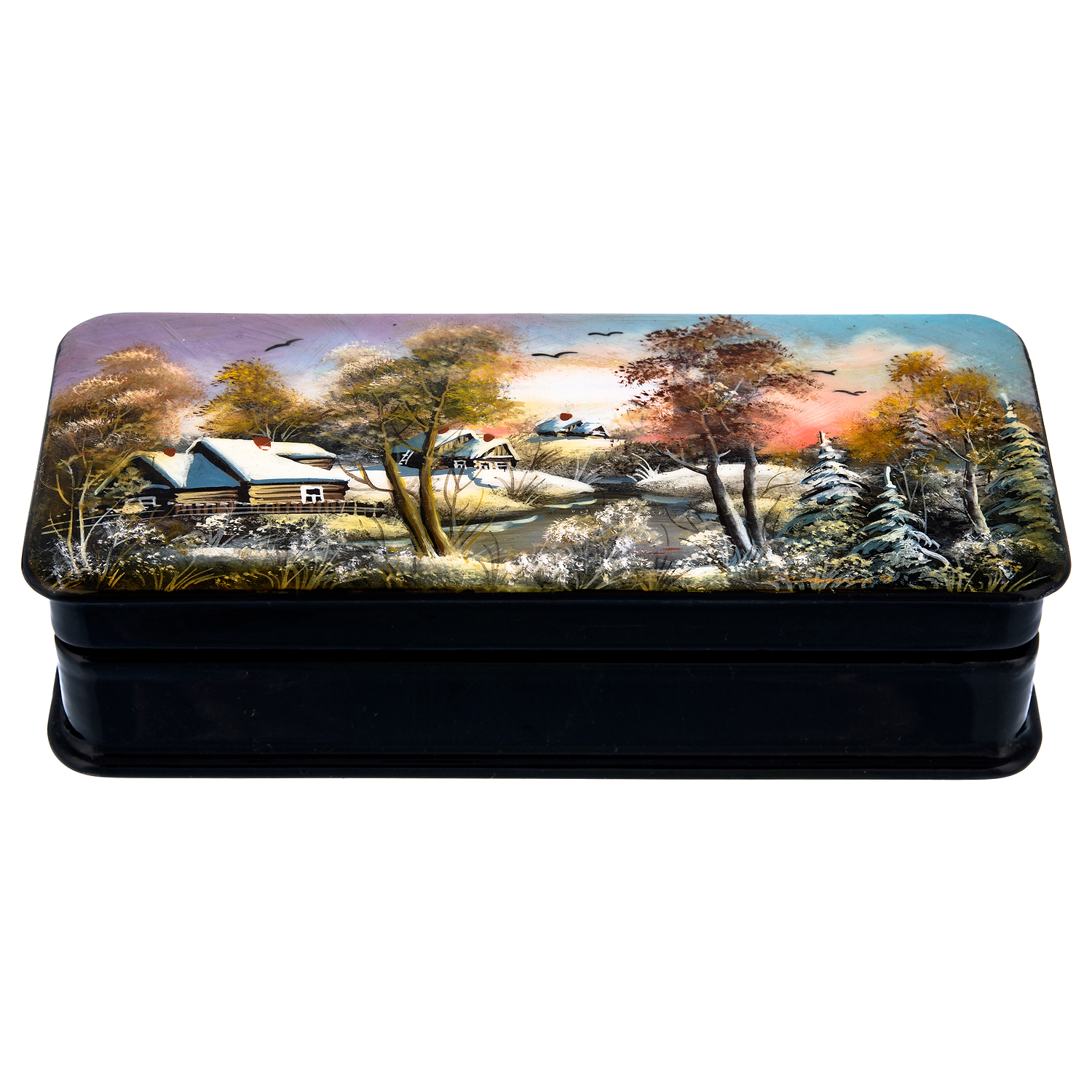 Шкатулка с художественной росписью "Деревенский пейзаж"