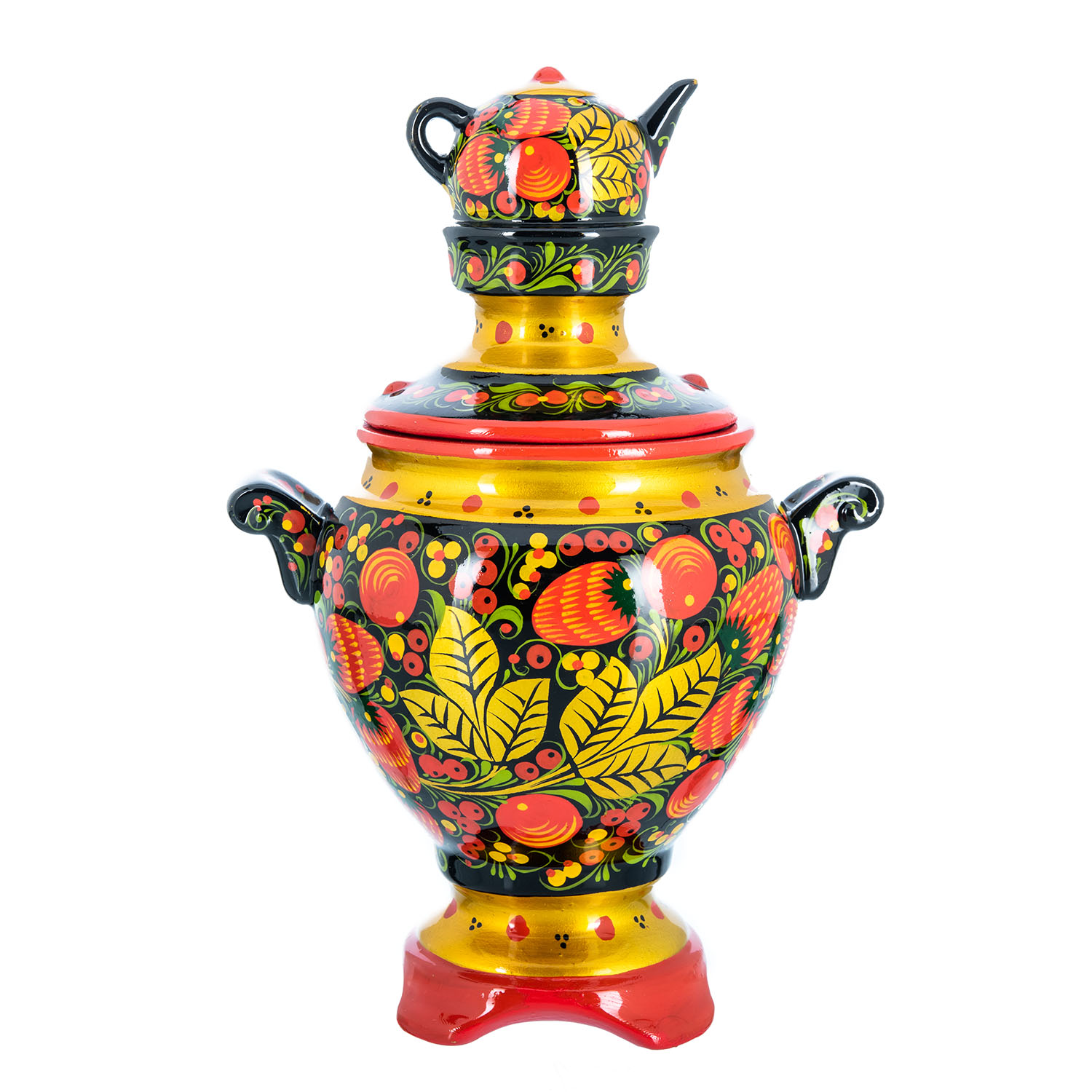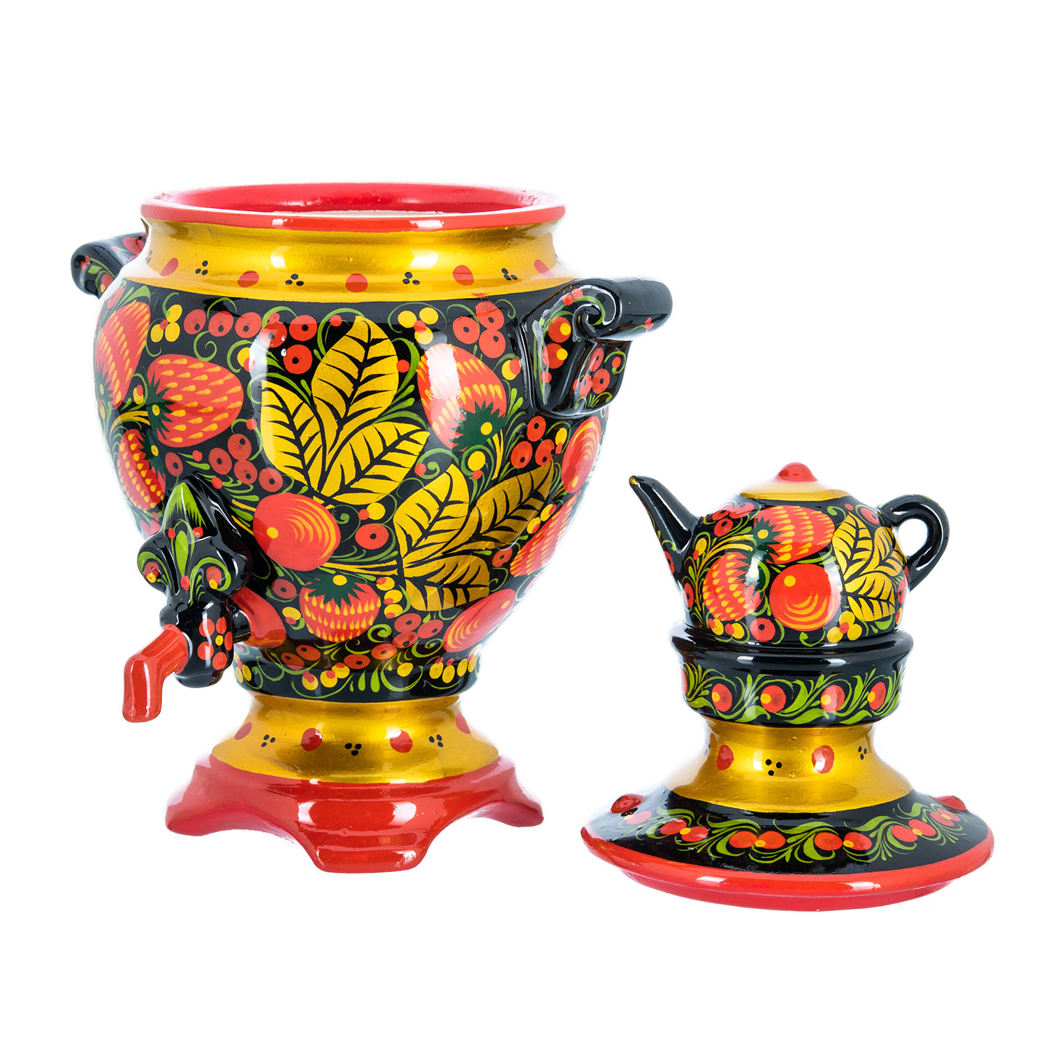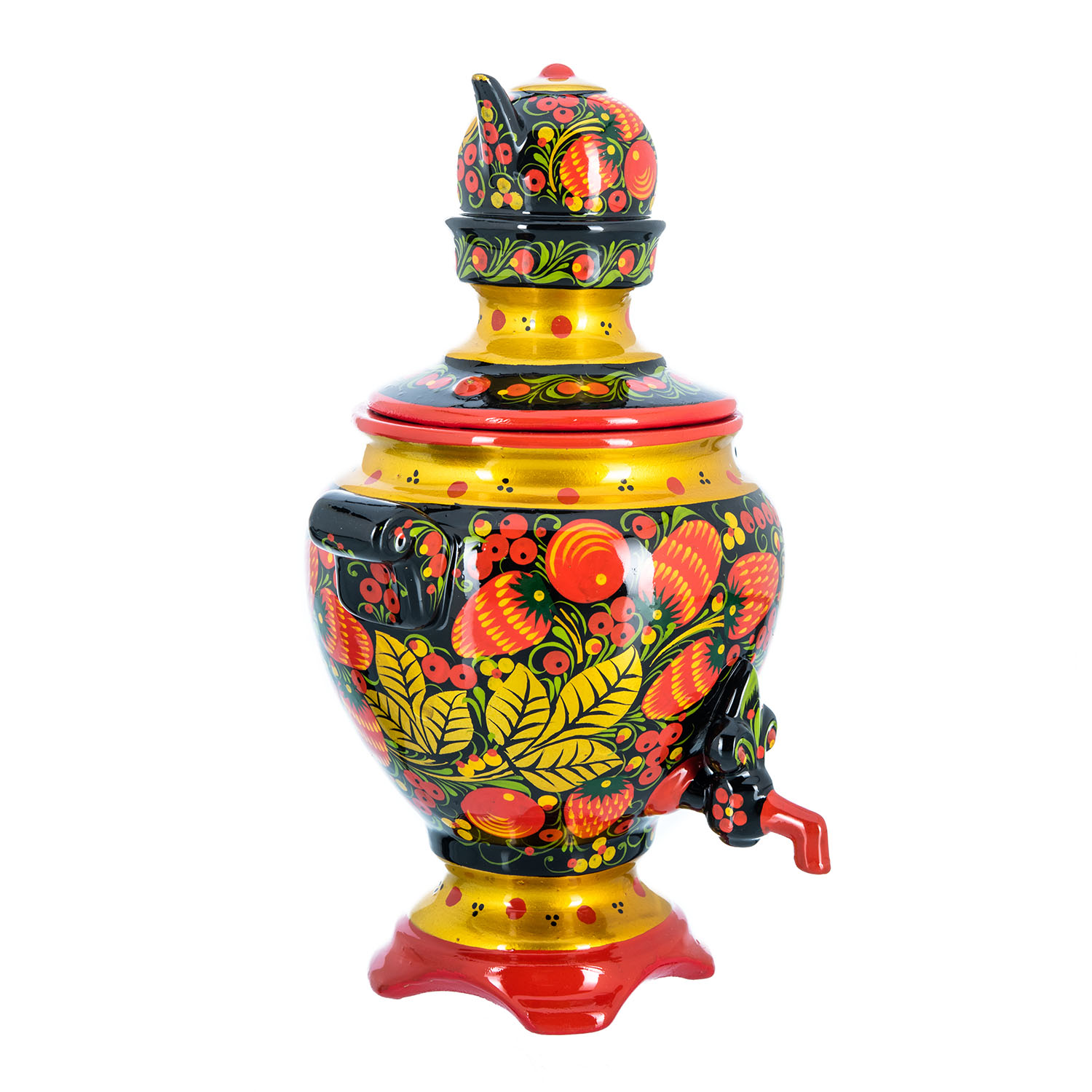 Сувенирный самовар-шкатулка "Клубника". Хохлома
