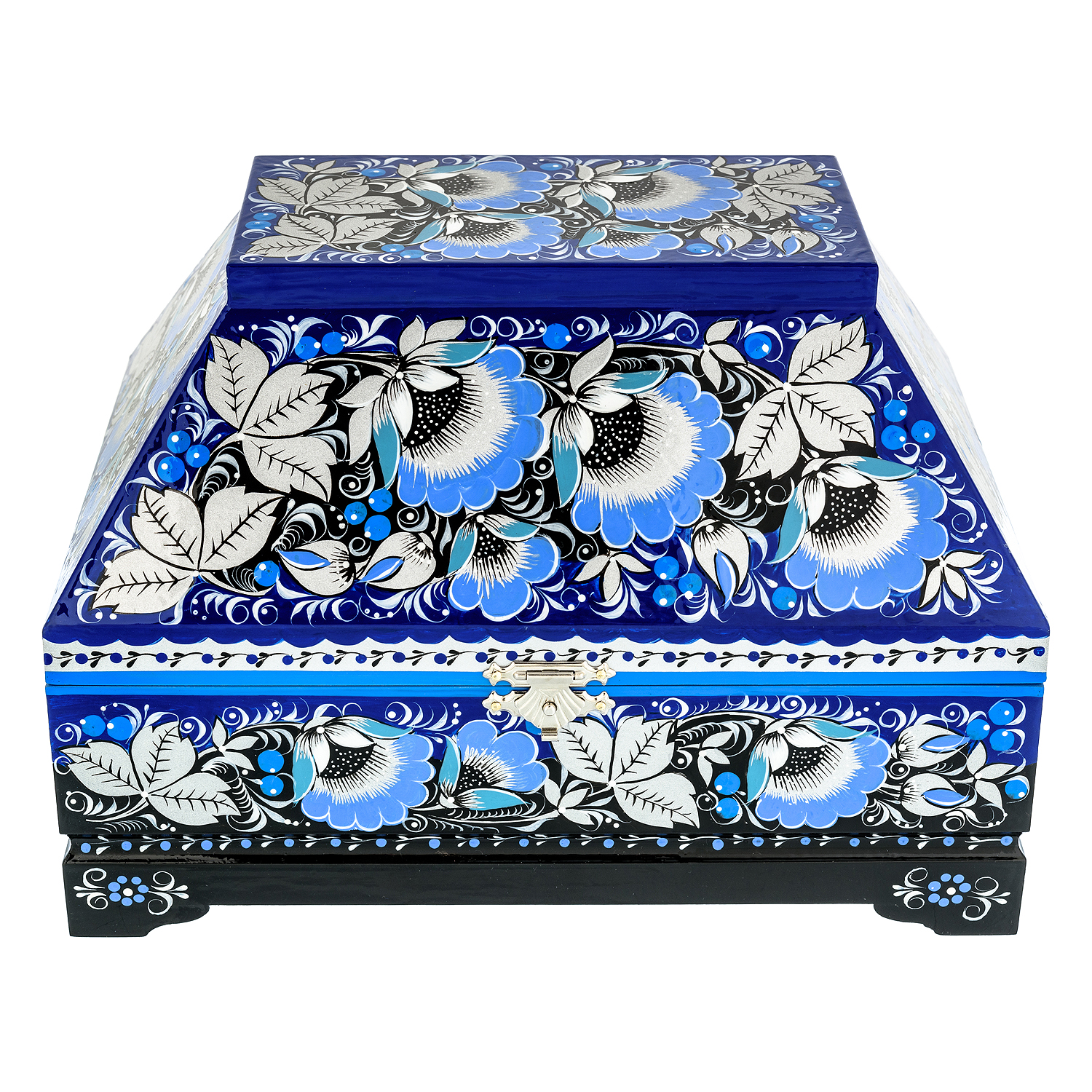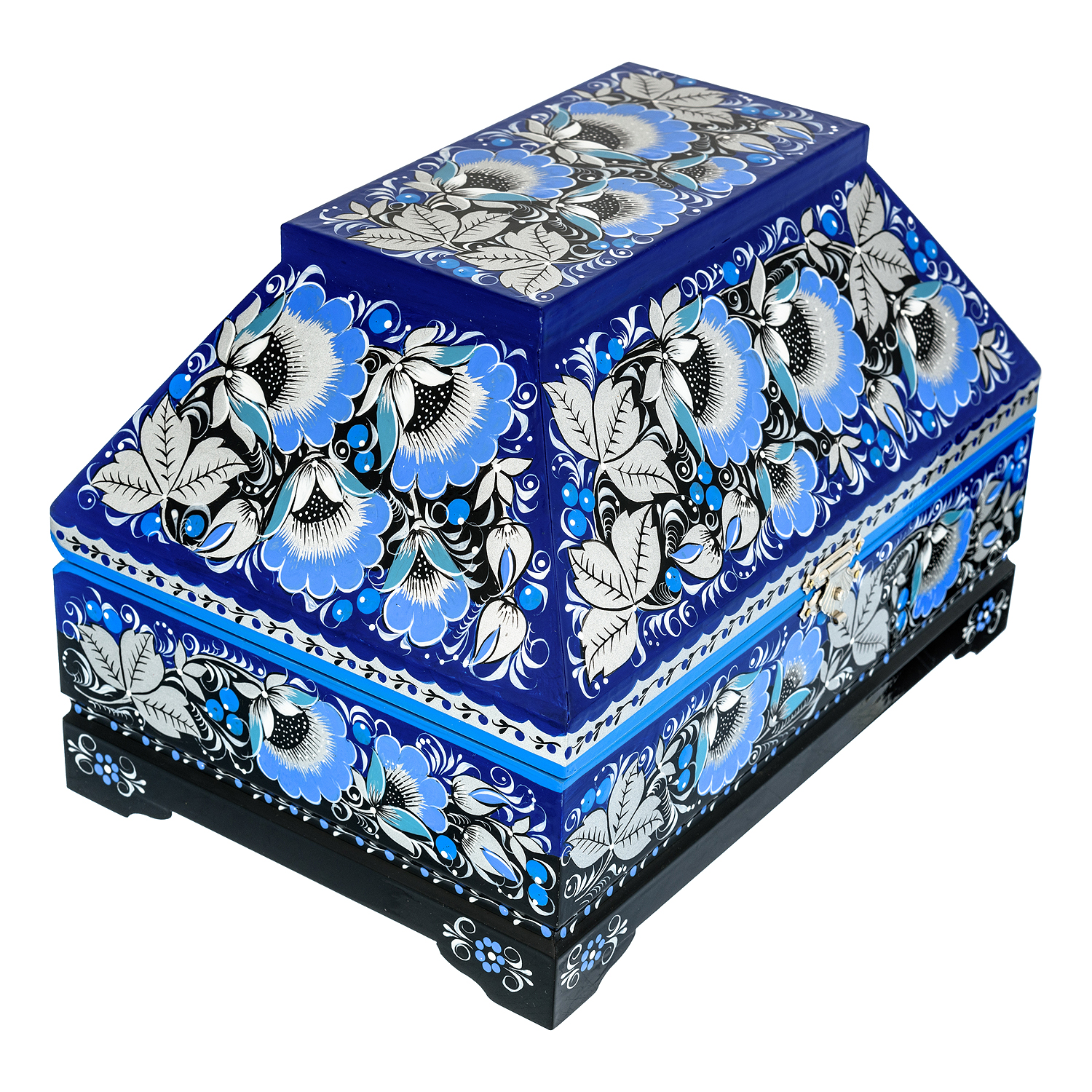 Ларец музыкальный "Цветы. Зимний день". Хохлома
