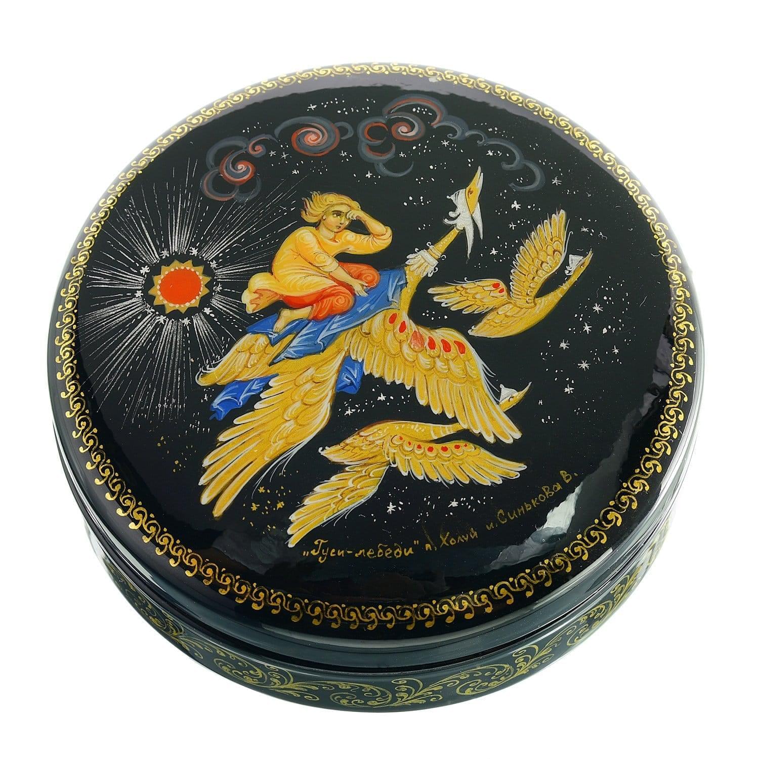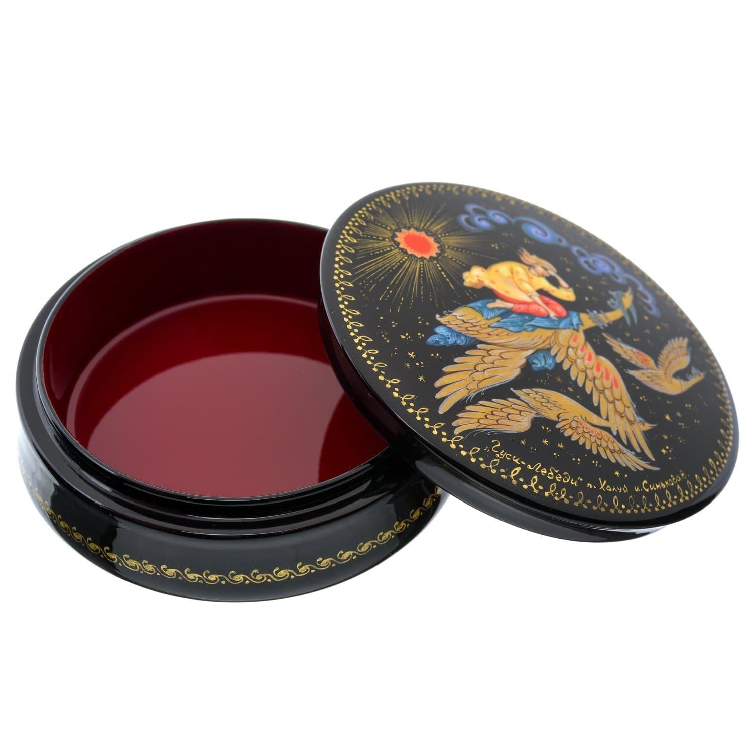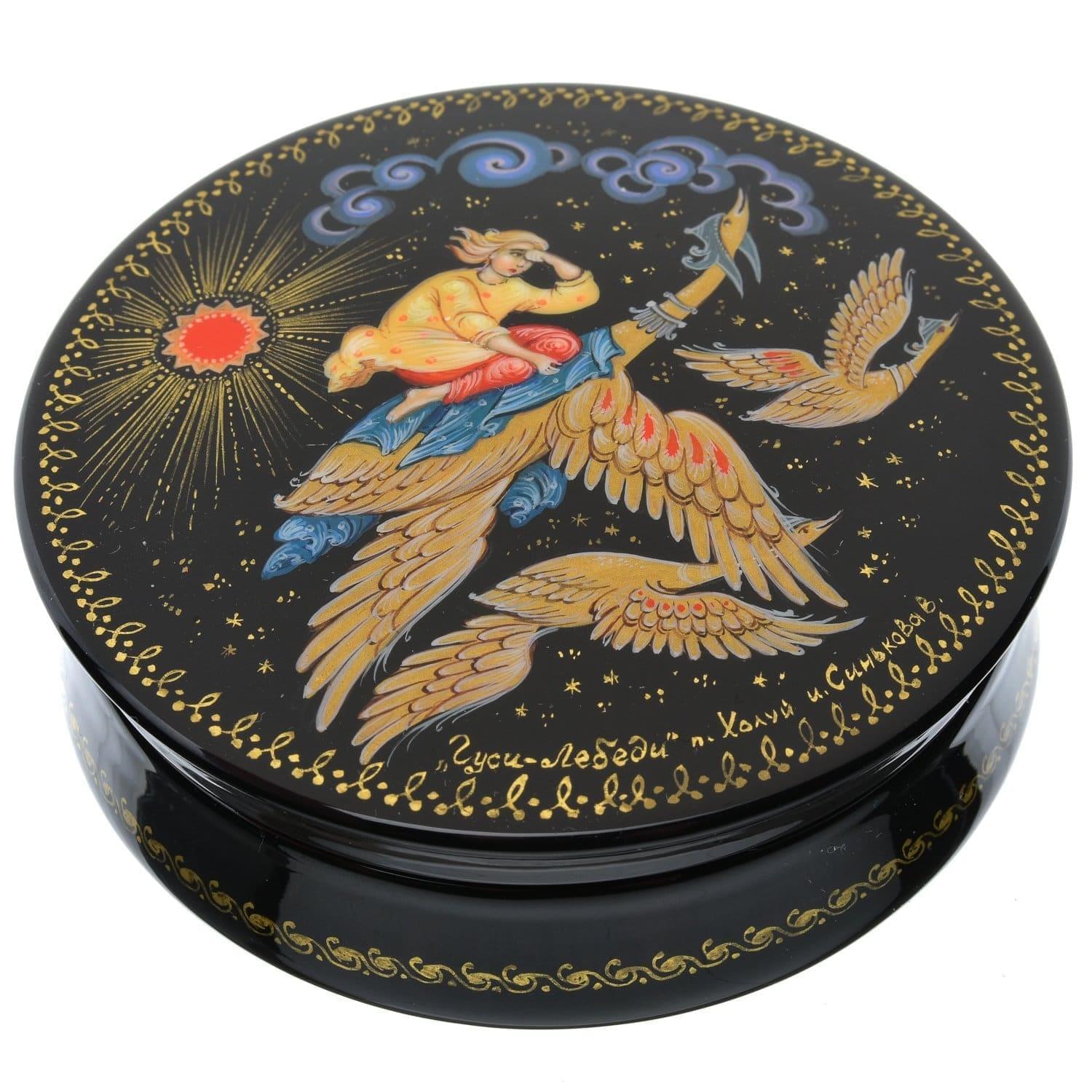 Лаковая миниатюра Шкатулка "Гуси-лебеди" Холуй
