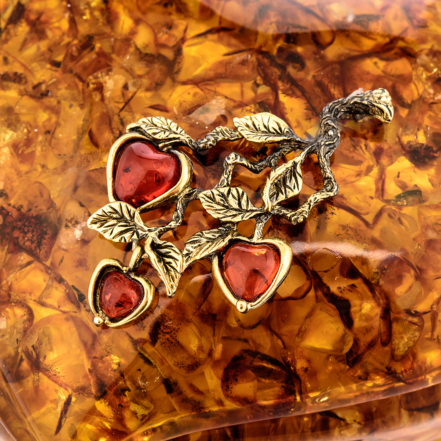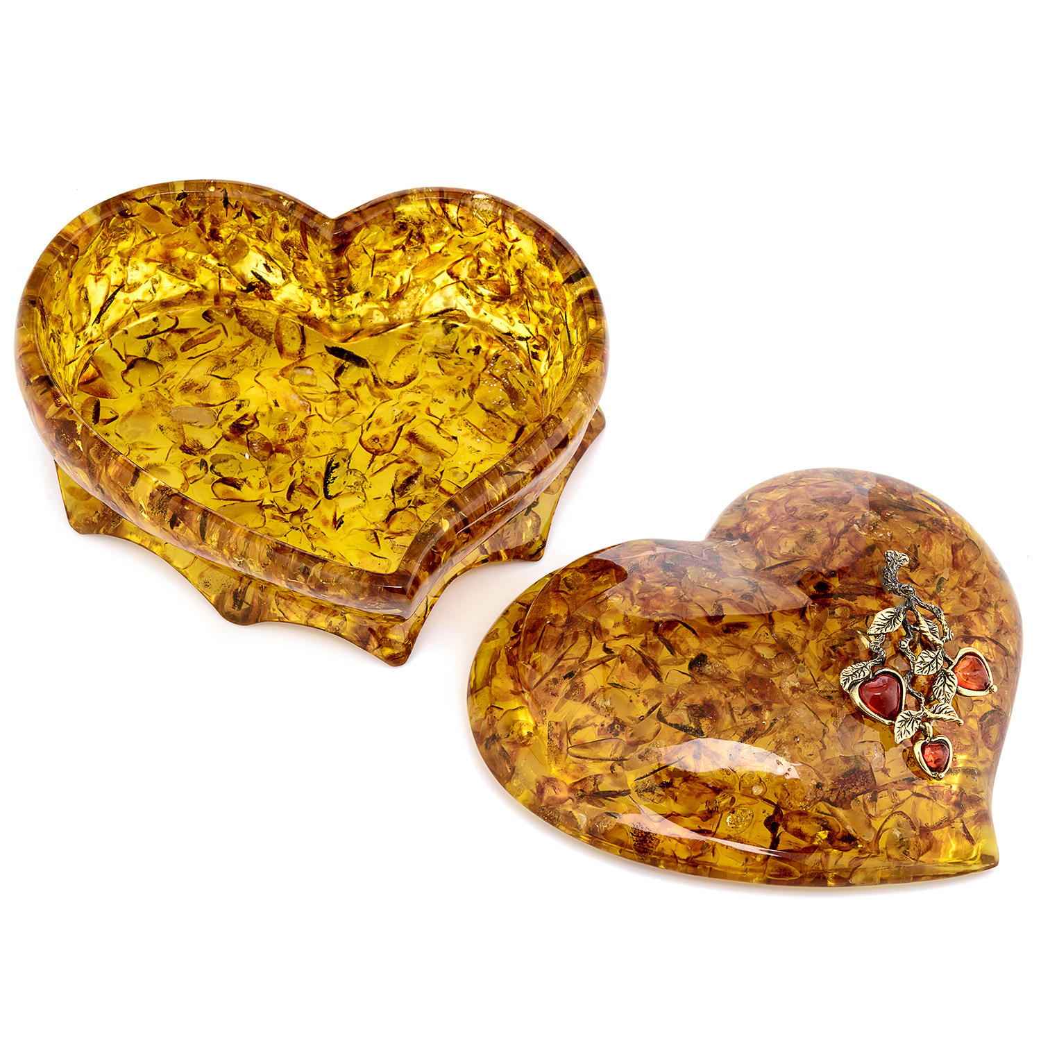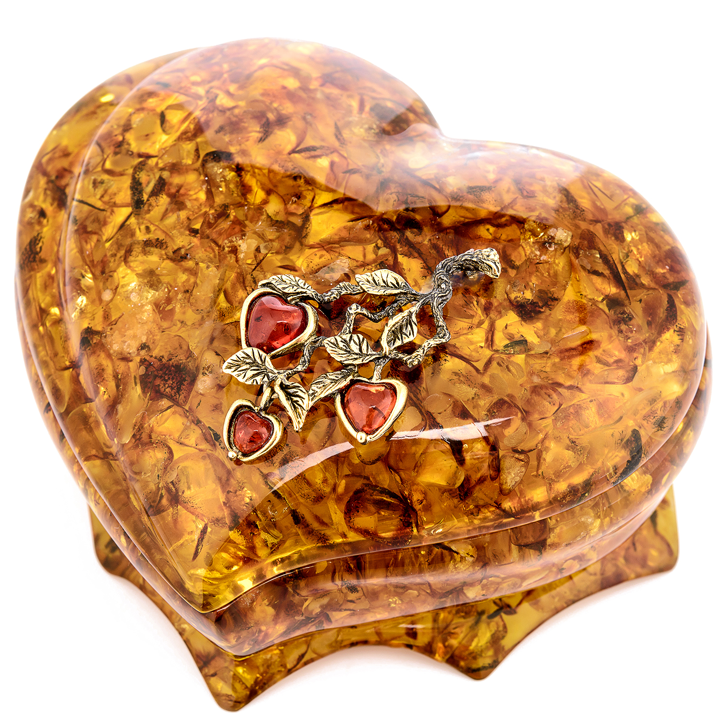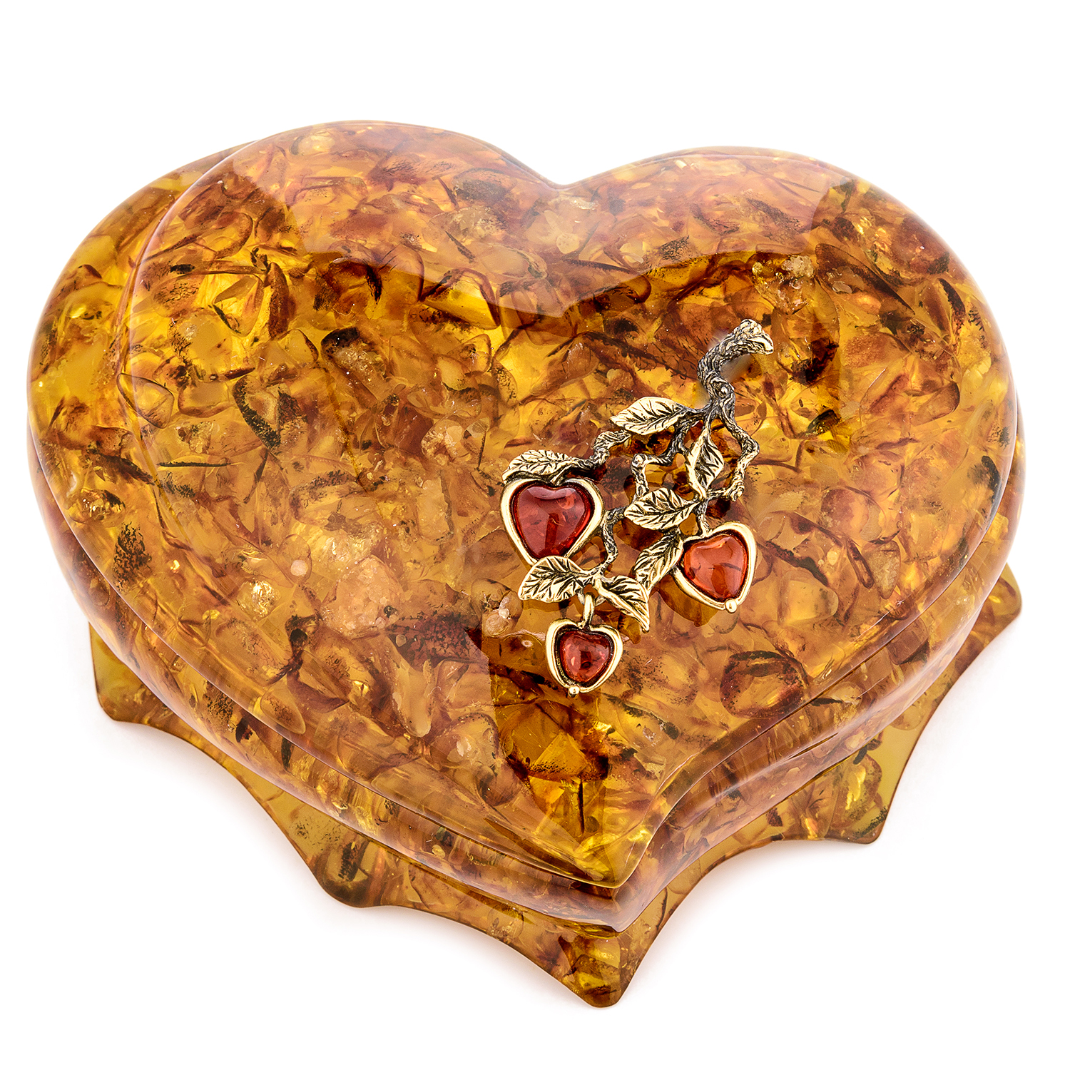 Шкатулка из янтаря "Сердце. Яблочки на ветке"