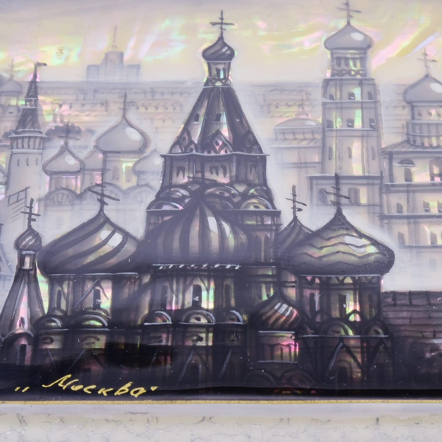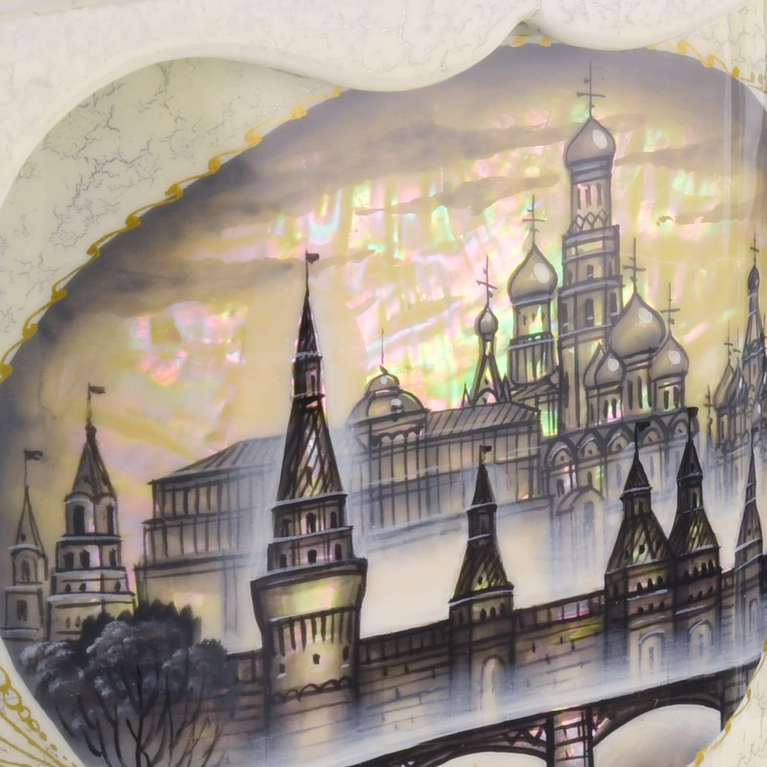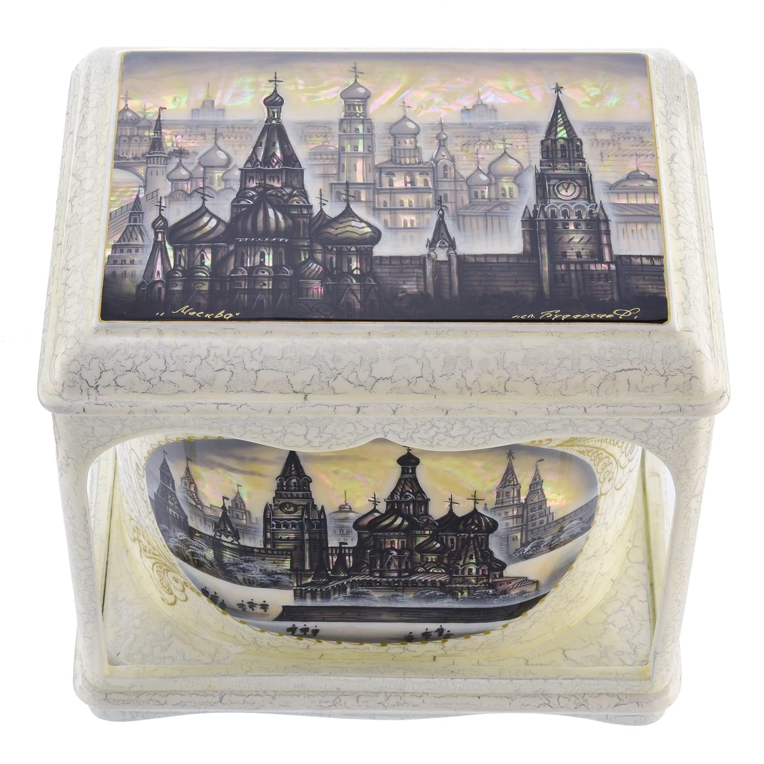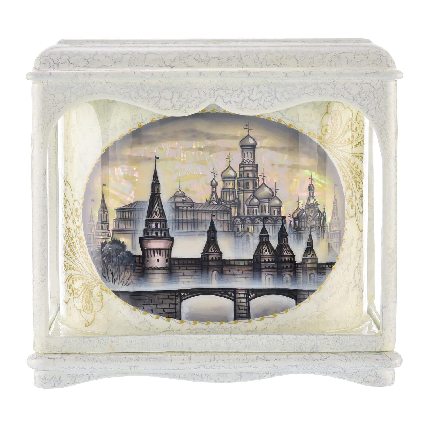 Шкатулка ларец-беседка "Москва" перламутровая