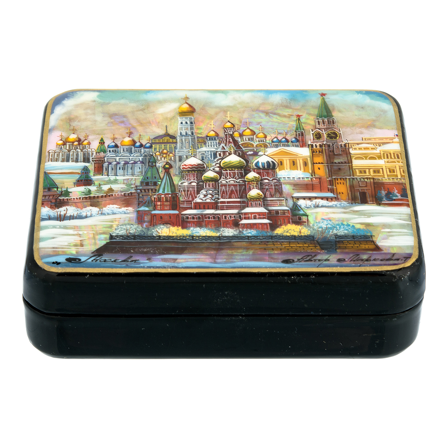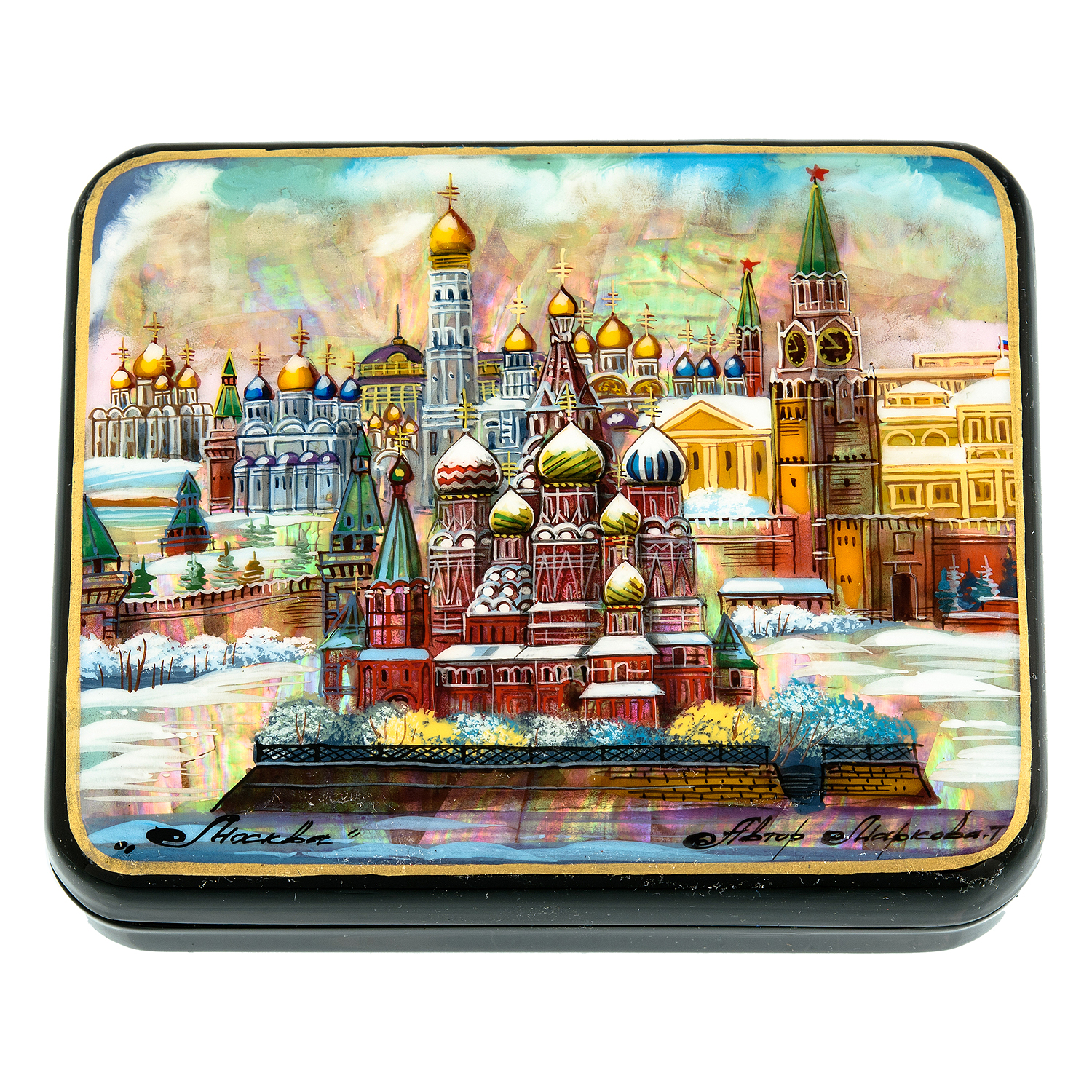 Шкатулка с художественной росписью "Храм Василия Блаженного".Материалы: папье-маше, краски, лак, перламутр.