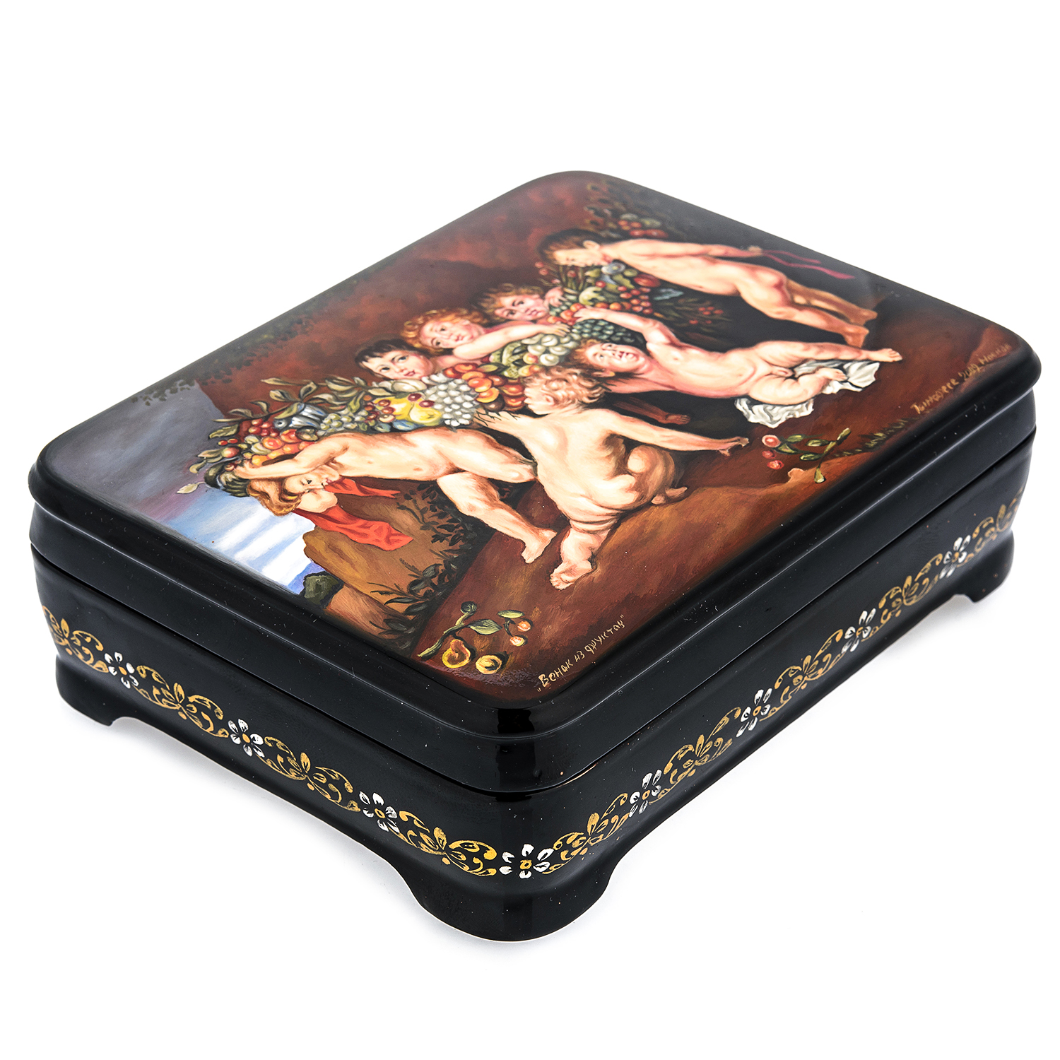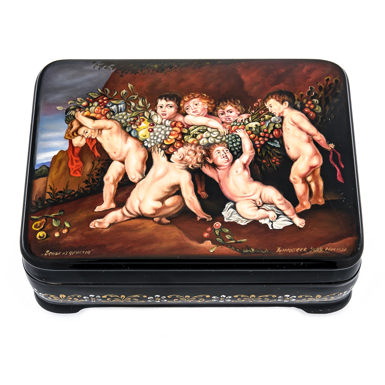 Шкатулка с художественной росписью "Венок из фруктов".Материалы: папье-маше, краски, лак.