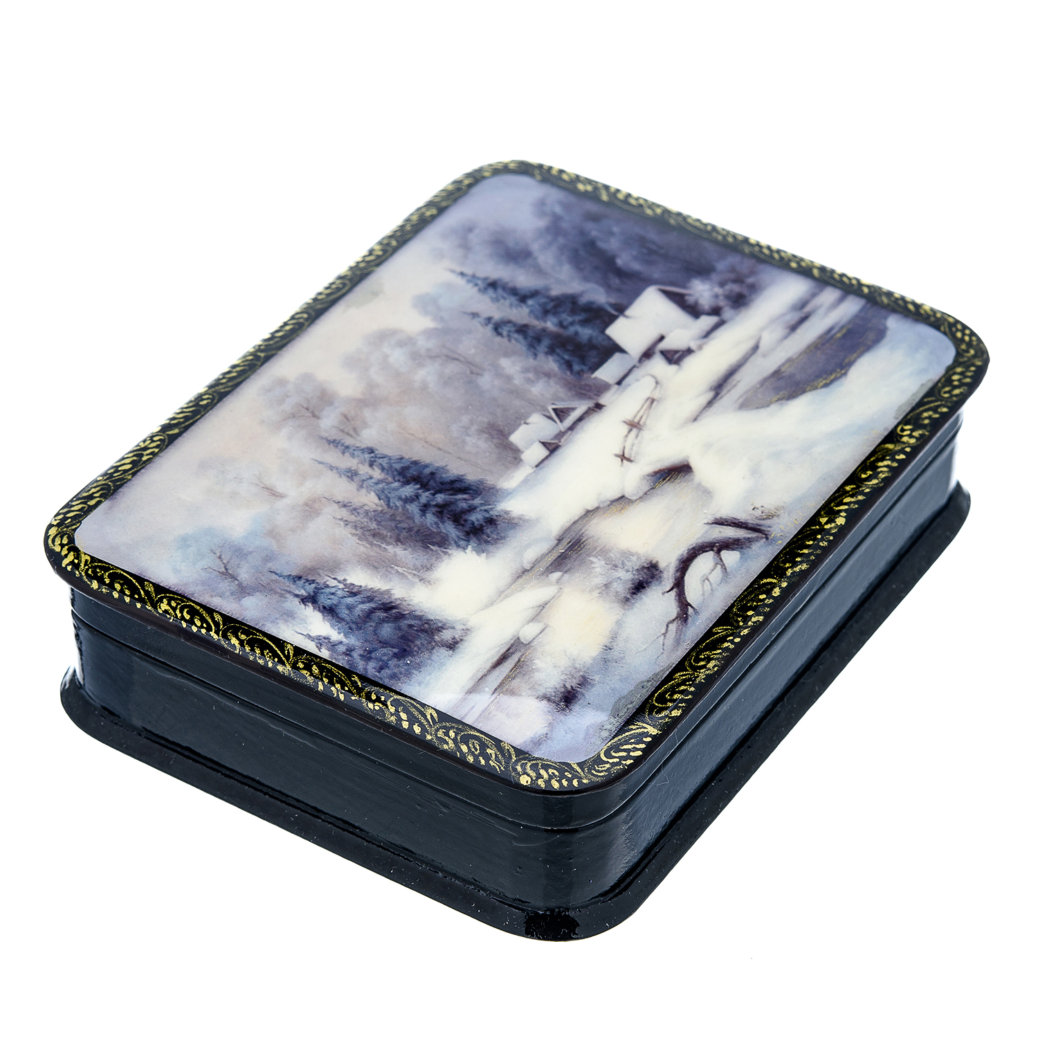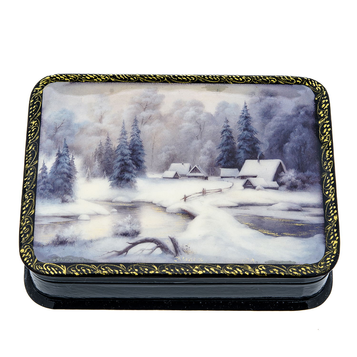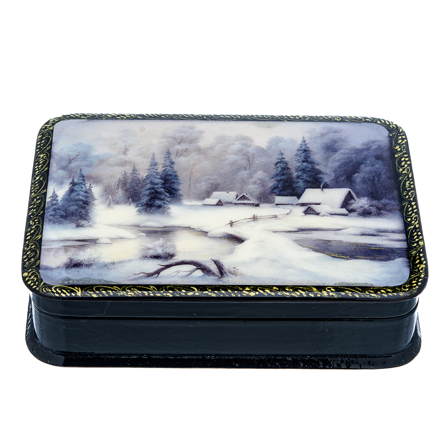Шкатулка с художественной росписью "Зима в деревне"