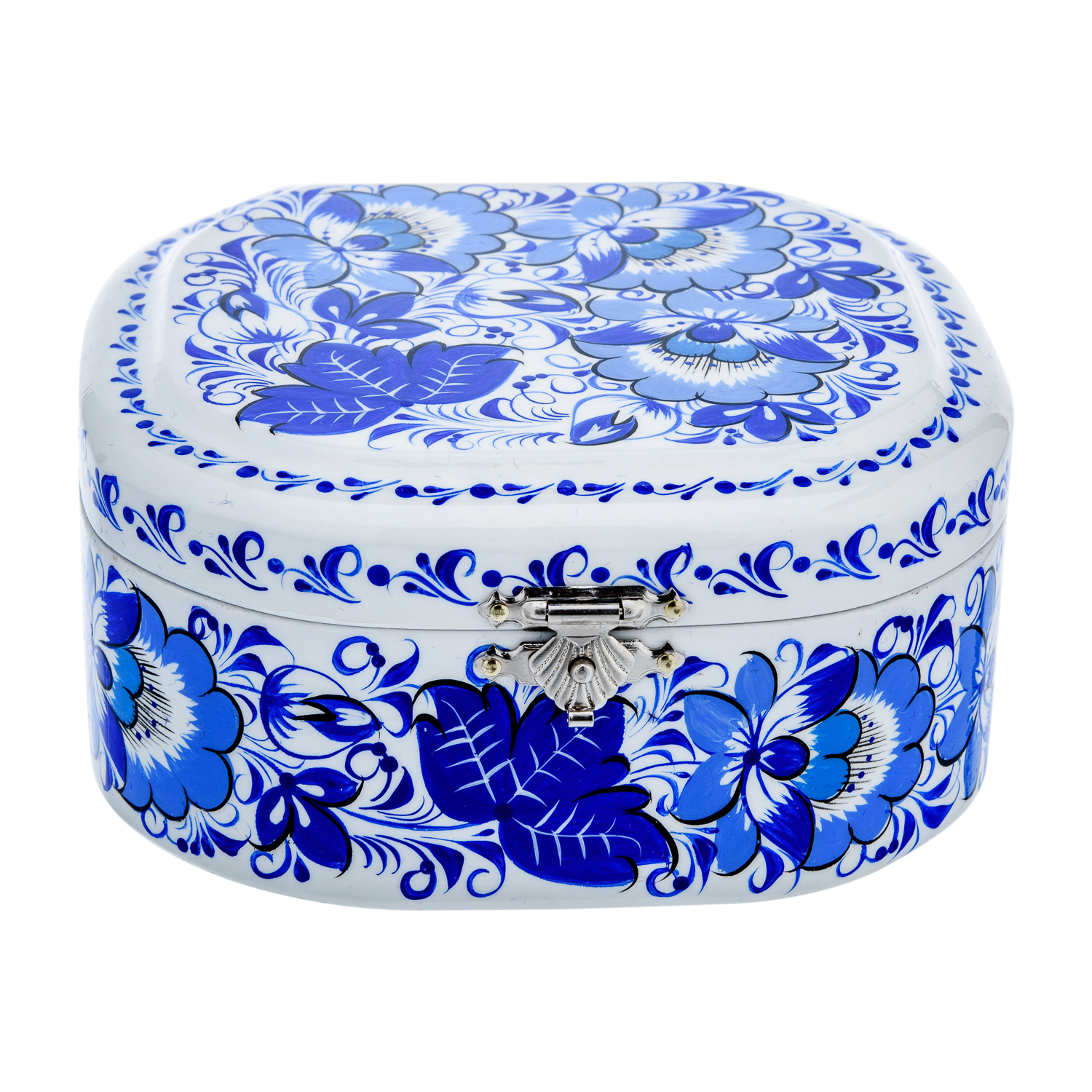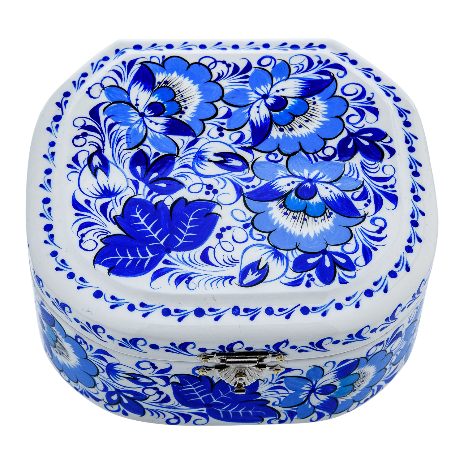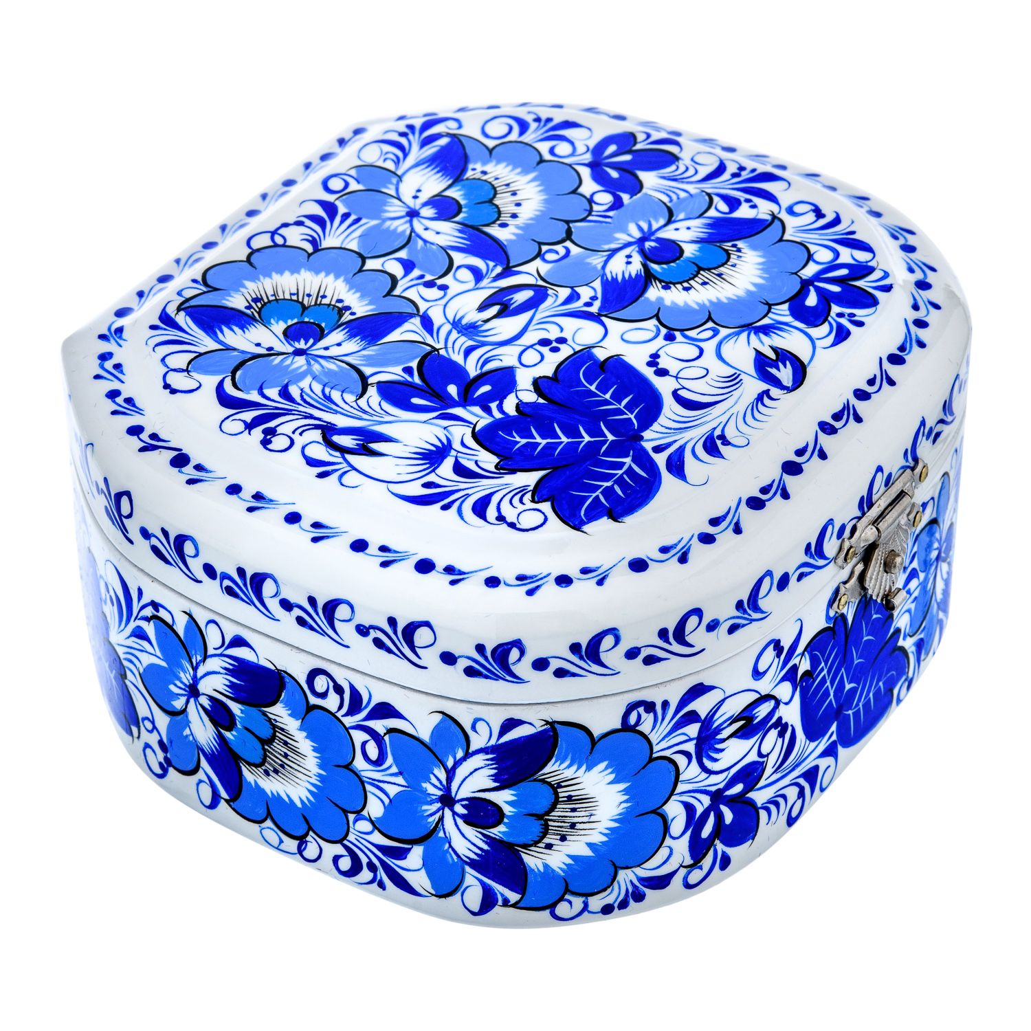 0069111 Хохлома Шкатулка "Зимние цветы"на белом 12*10см Р31