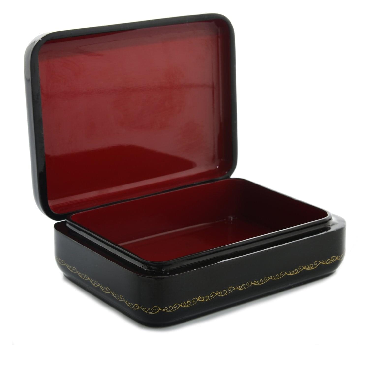 Порадуйте дорогого человека стильным подарком с ярким аутентичным дизайном! Великолепная шкатулка созданная в соответствии со старинной технологии Федоскинской миниатюры - отличный вариант такого презента. Основа шкатулки изготовлена в технике папье-маше. Роспись нанесена вручную с использованием специальной краски и лака, придающего рисунку особый шарм. Внутренняя часть шкатулки оформлена в насыщенно-вишневых тонах.