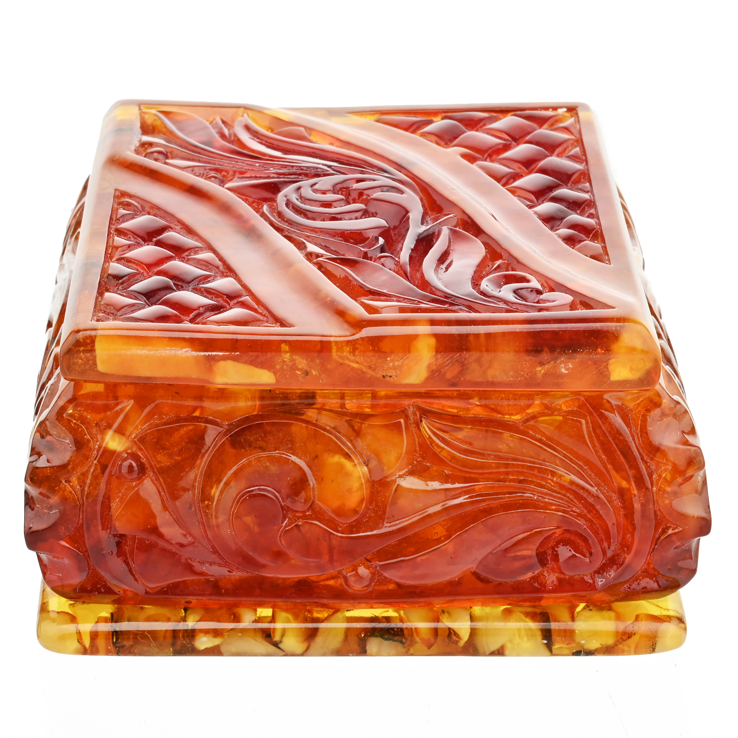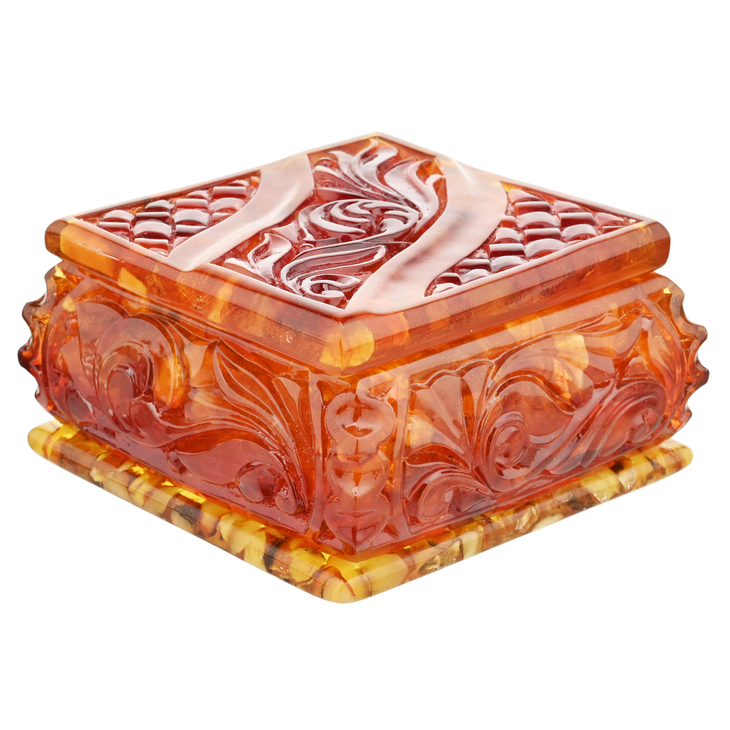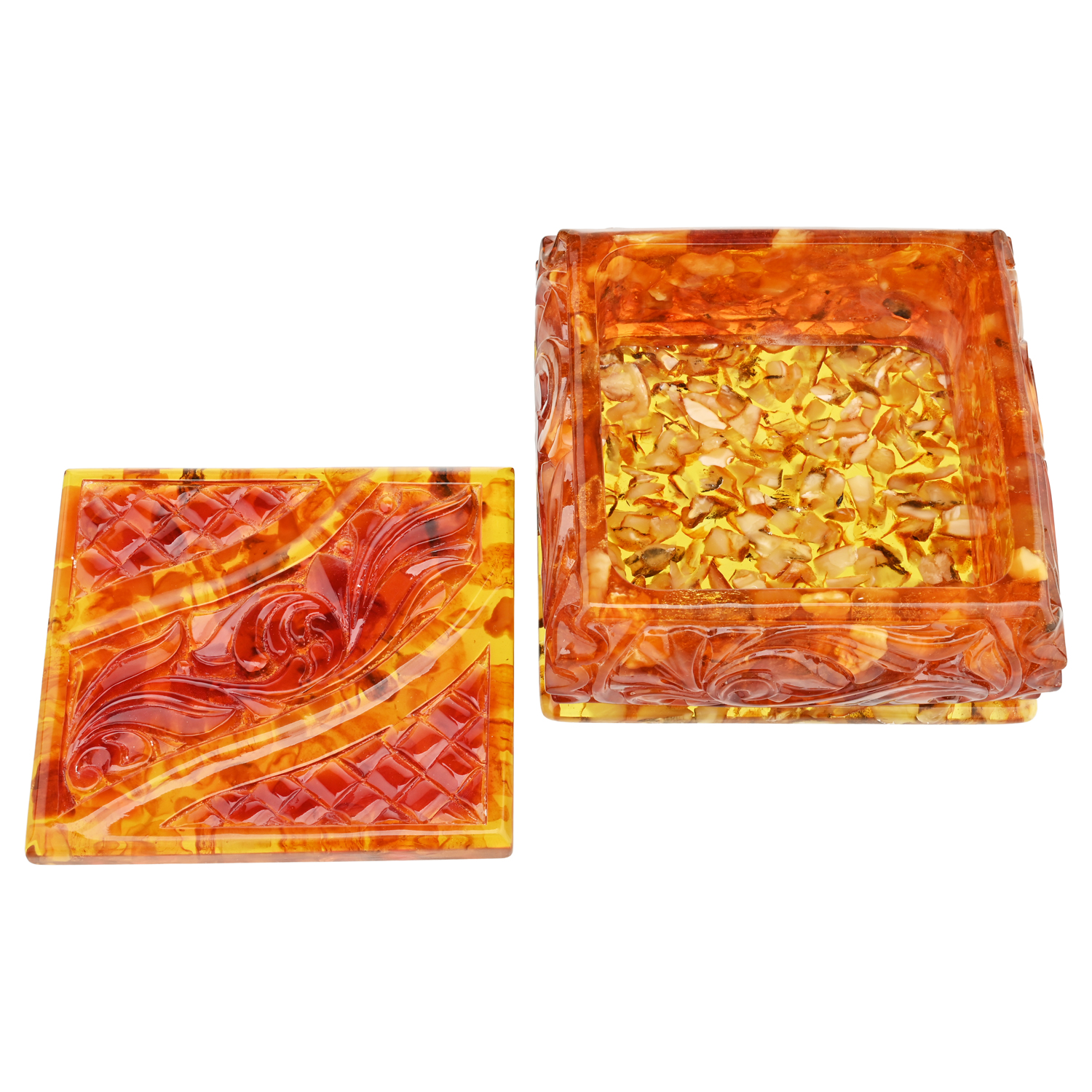 Шкатулка квадратная из янтаря "Ажурная"