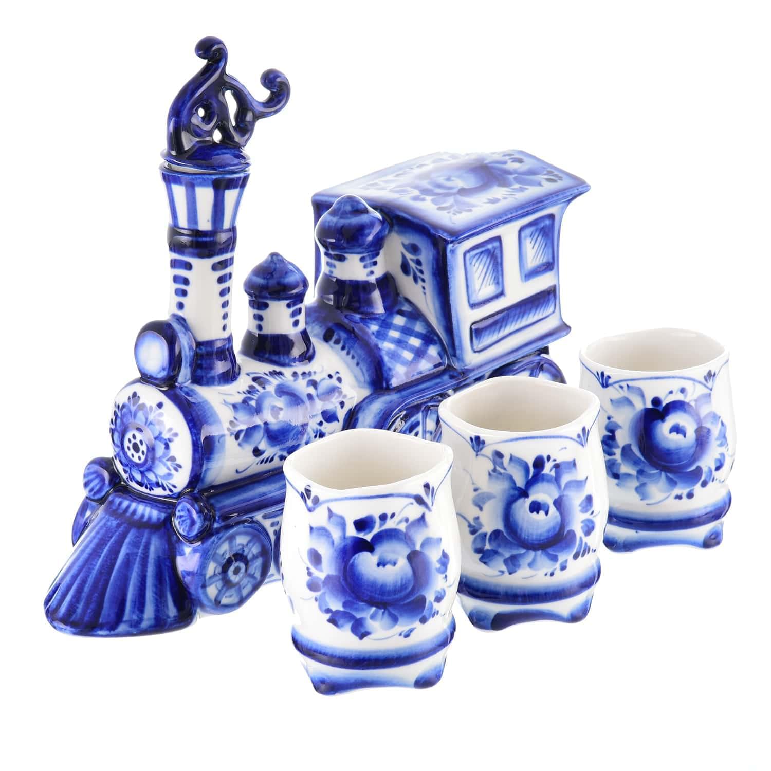 7884/Нб-коб НАБОР подарочный:ШТОФ"ПАРОВОЗ"+3 стопки  Авт. ....