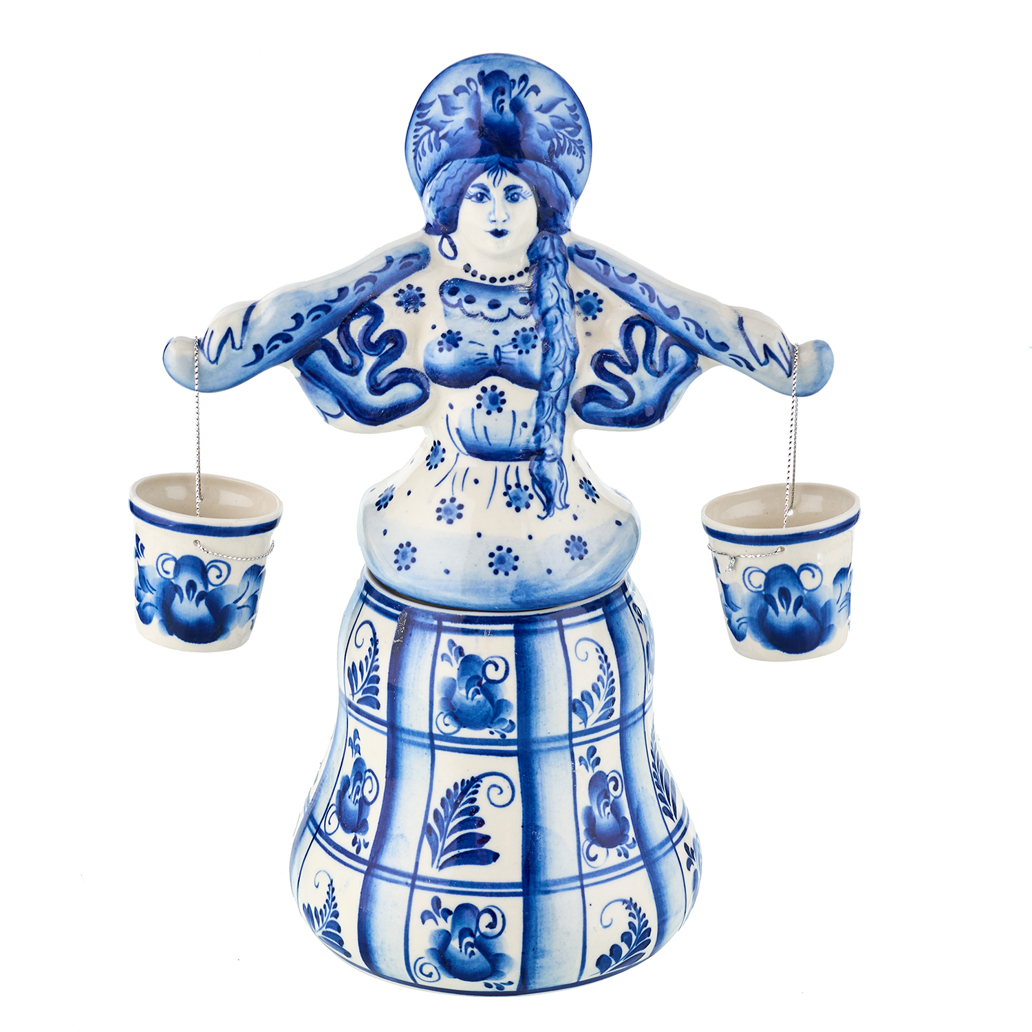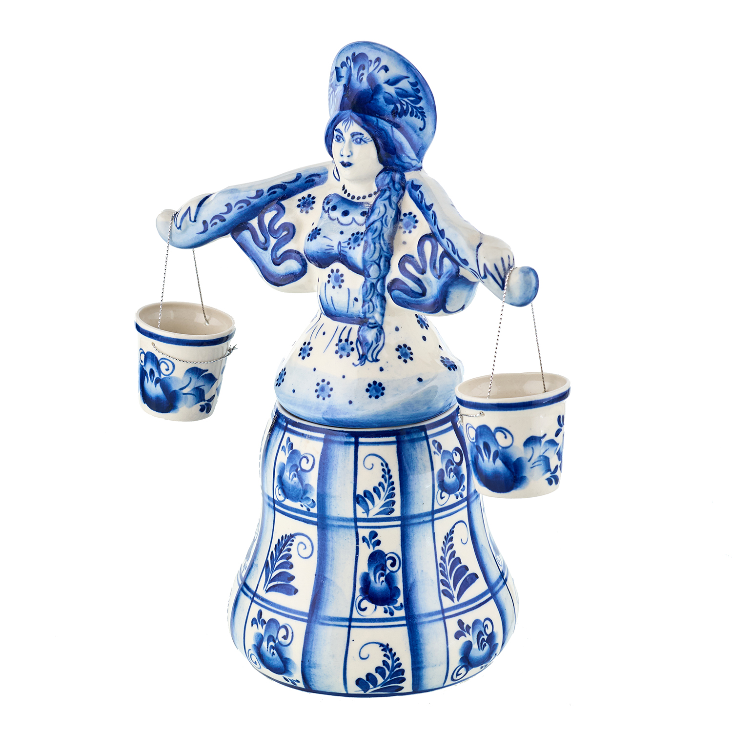 Штоф "Барыня с ведрами". Гжель.Материал: фарфор.