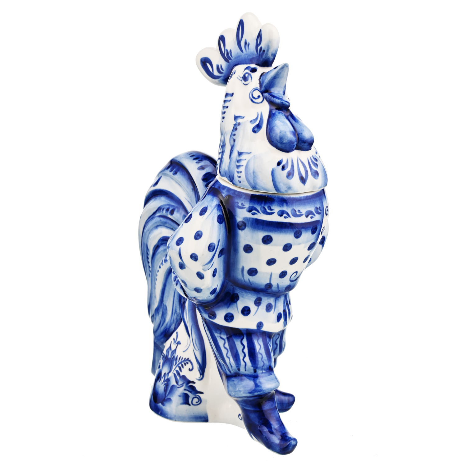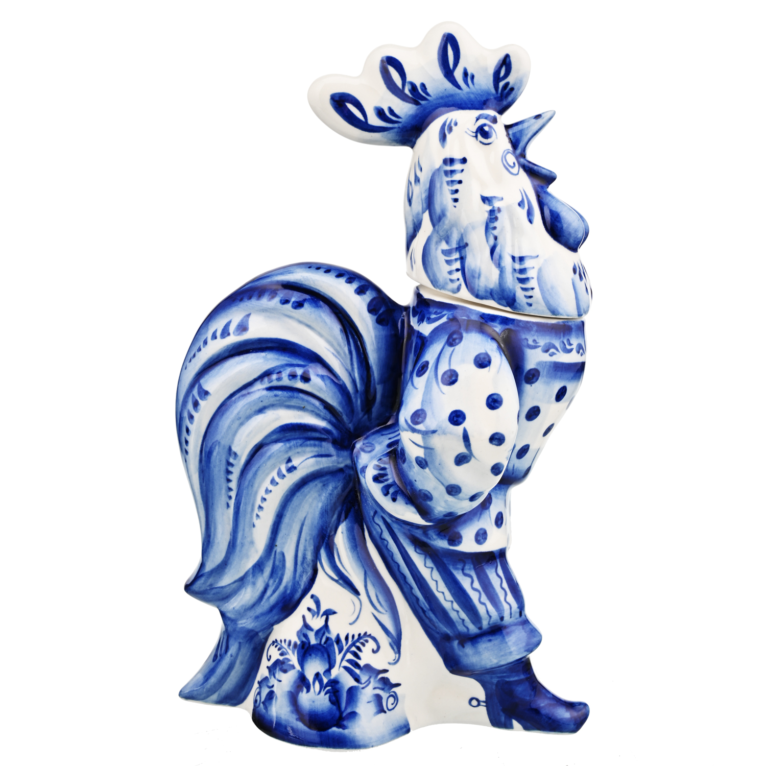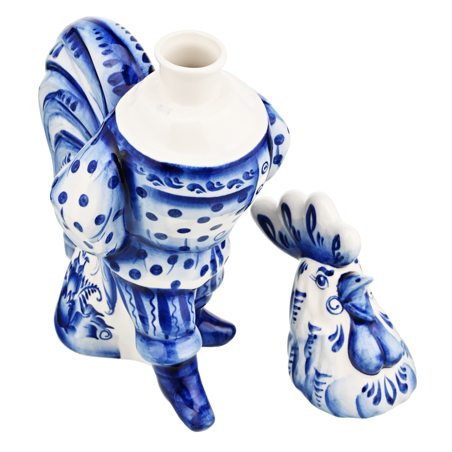 Штоф фарфоровый с росписью "Петух". Гжель.Размер: 150х130х270 мм