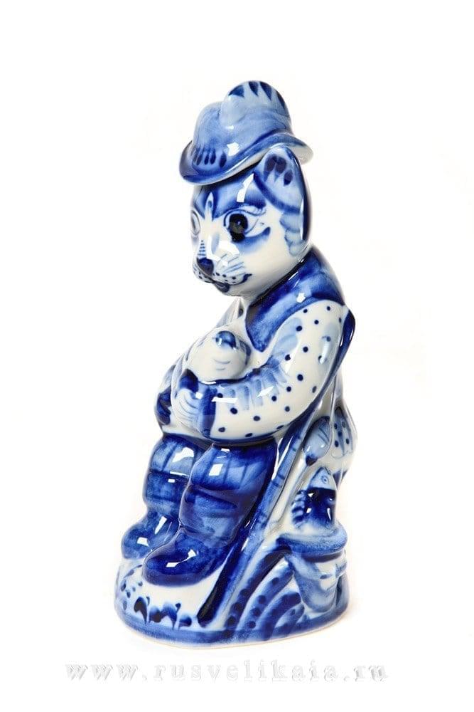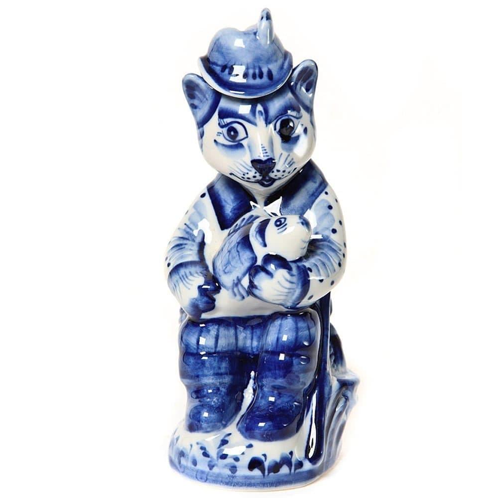 Штоф фарфоровый "Кот-рыболов". Гжель