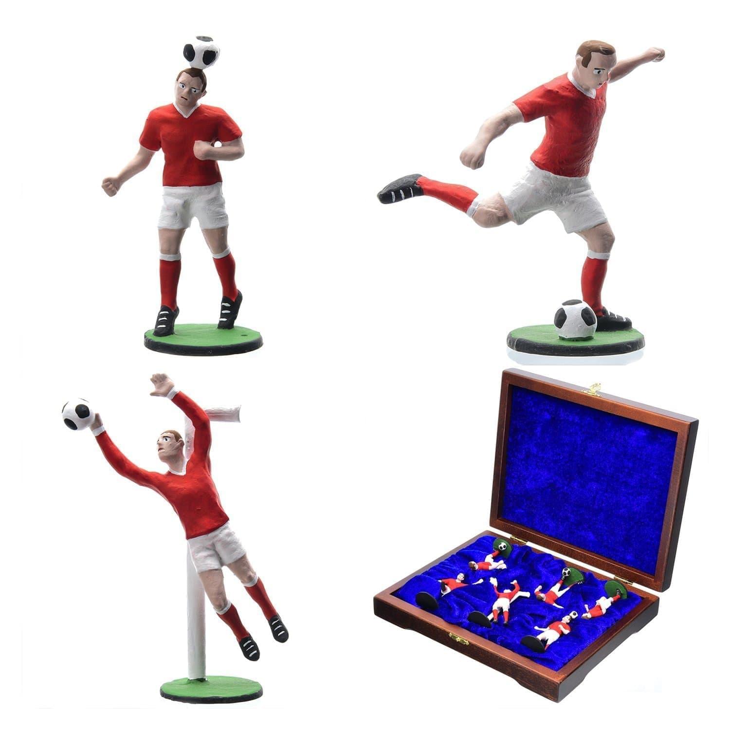 Три статуэтки из олова, в которых воплощены динамичные образы российских футболистов, представлены в шкатулке из древесины русской березы с бархатным ложементом внутри. Статуэтки являются авторскими образцами оловянного литья с коллекционной ценностью. Вашему вниманию - вариант универсального мужского подарка в русском стиле для профессионального футболиста, футбольного болельщика.