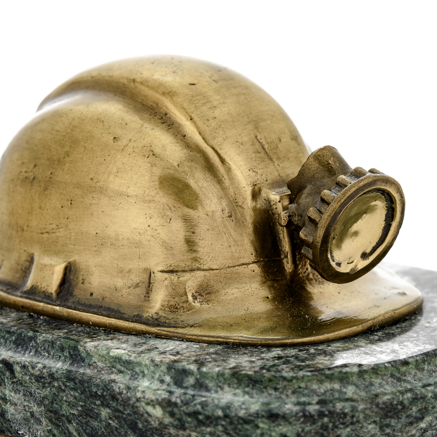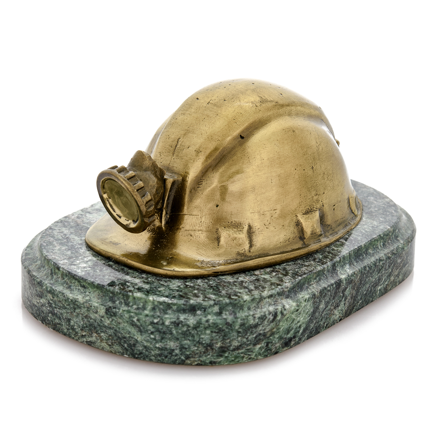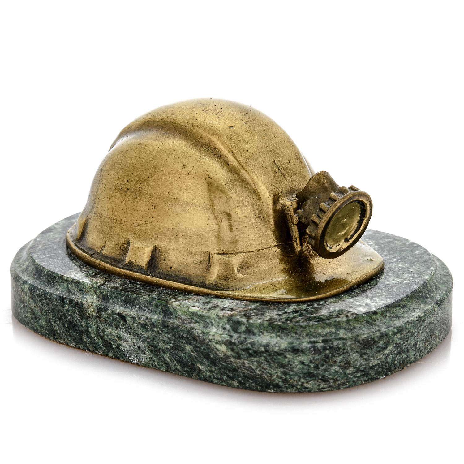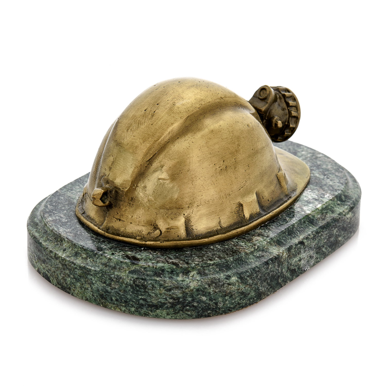 Бронзовая статуэтка "Шахтерская каска".Материалы: бронза, змеевик.