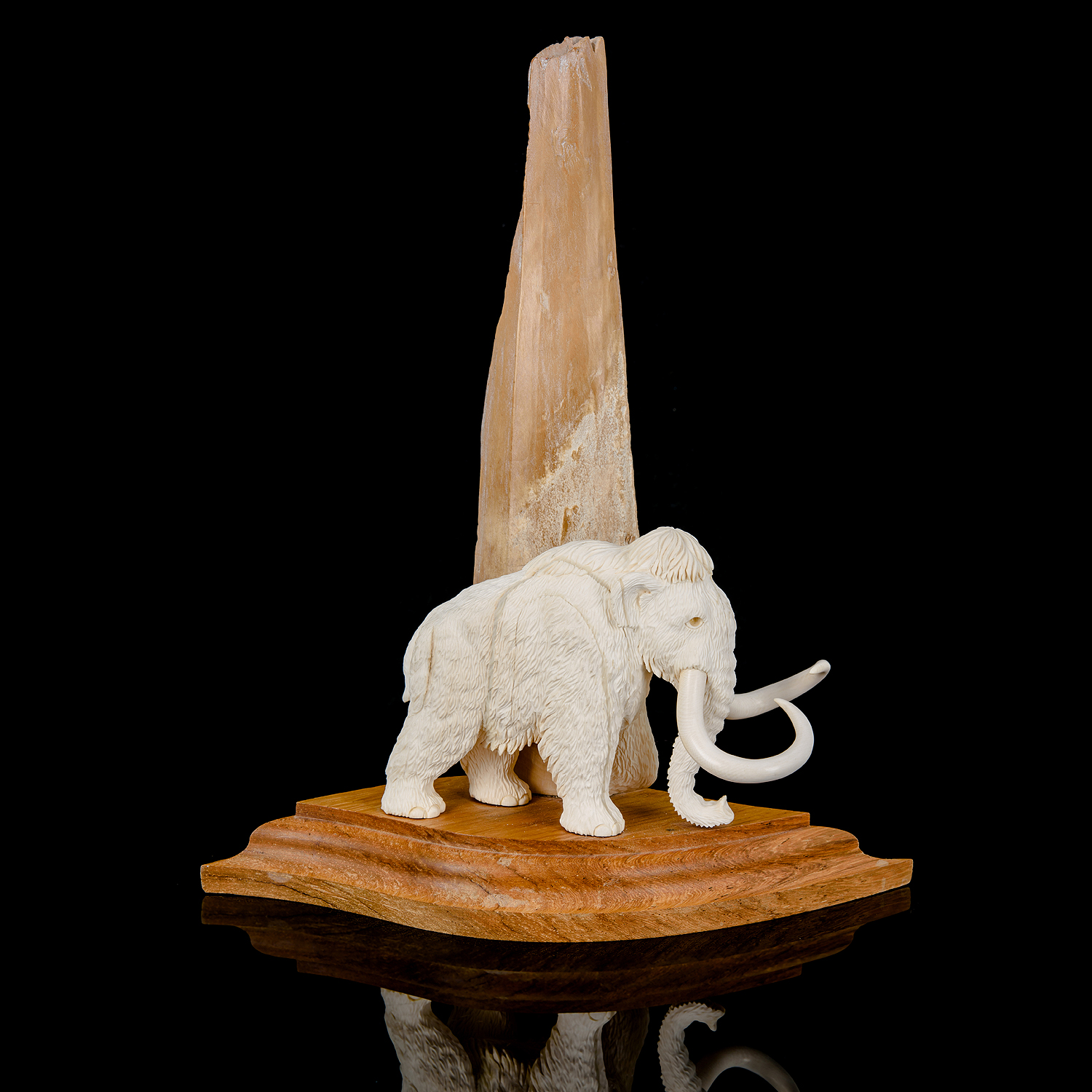 0051553/и501 Изделия из кости Скульптура "МАМОНТ" Бивень мамонта 26*22*9см