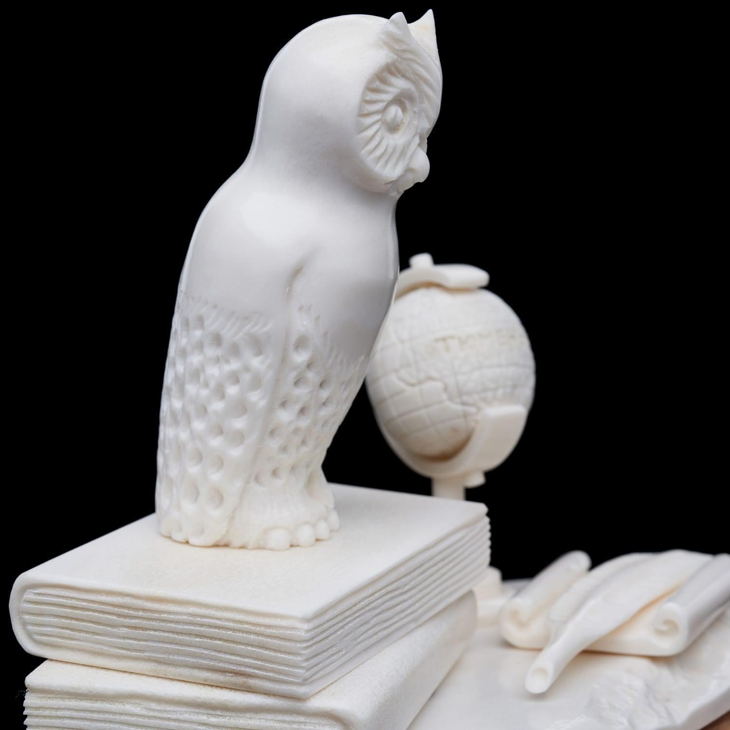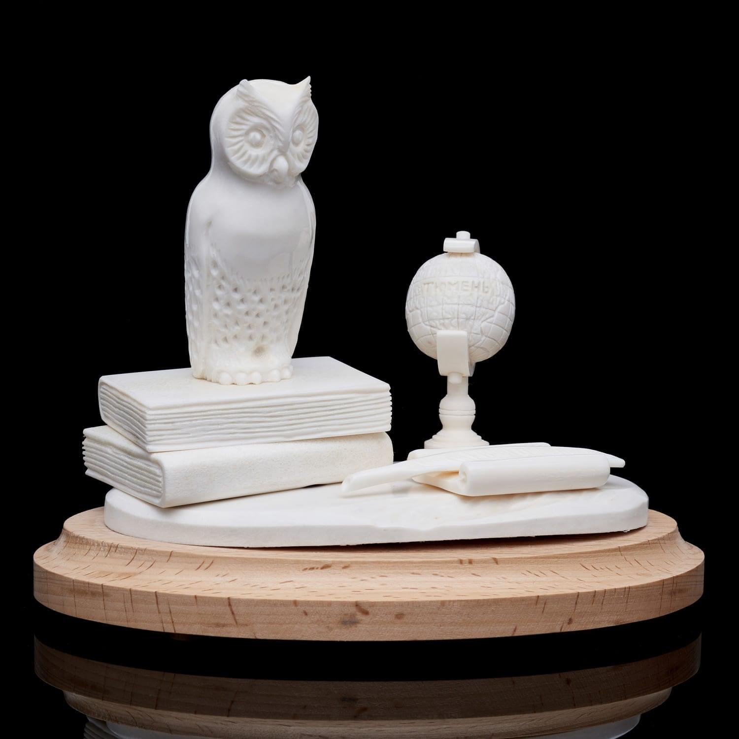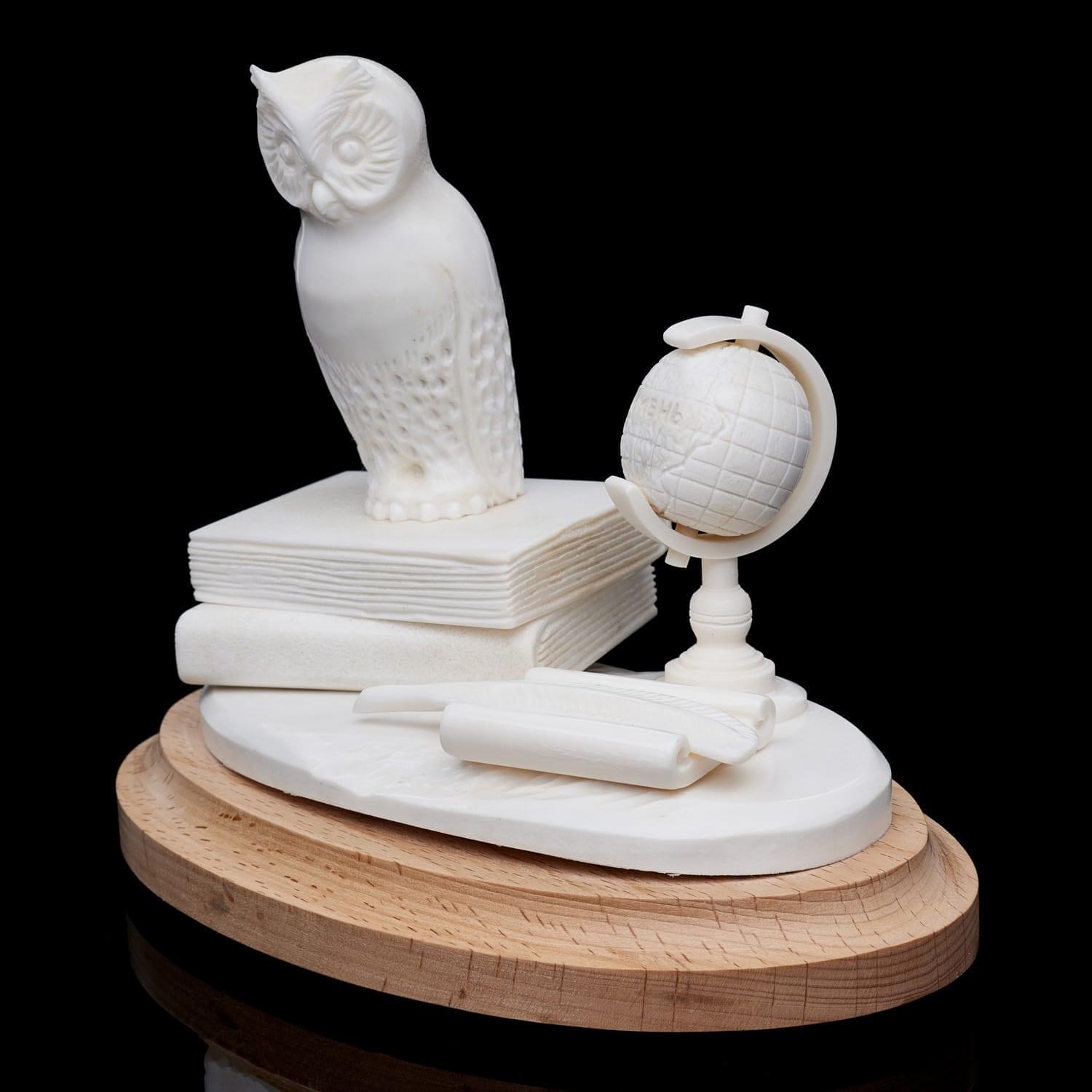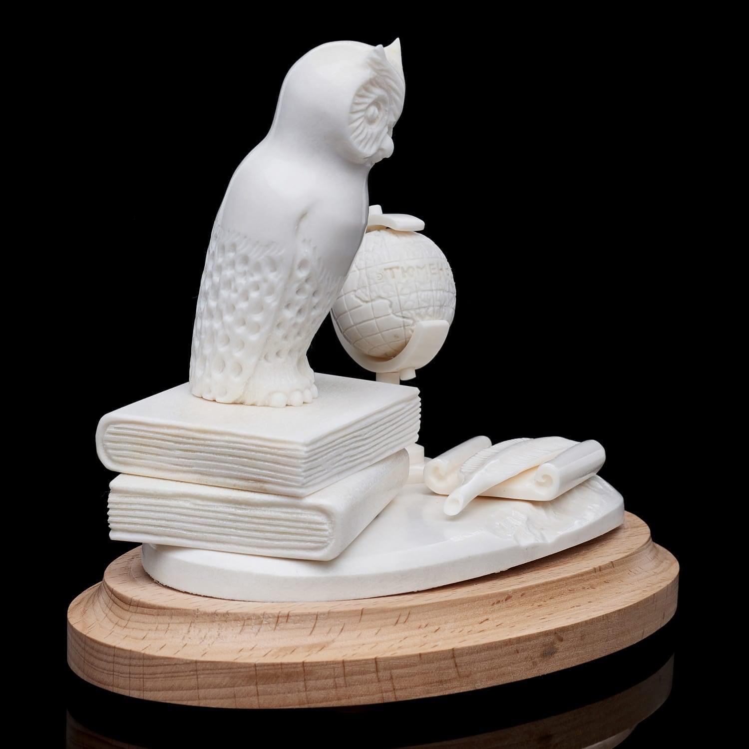 Скульптура из рога лося "Филин на книгах"