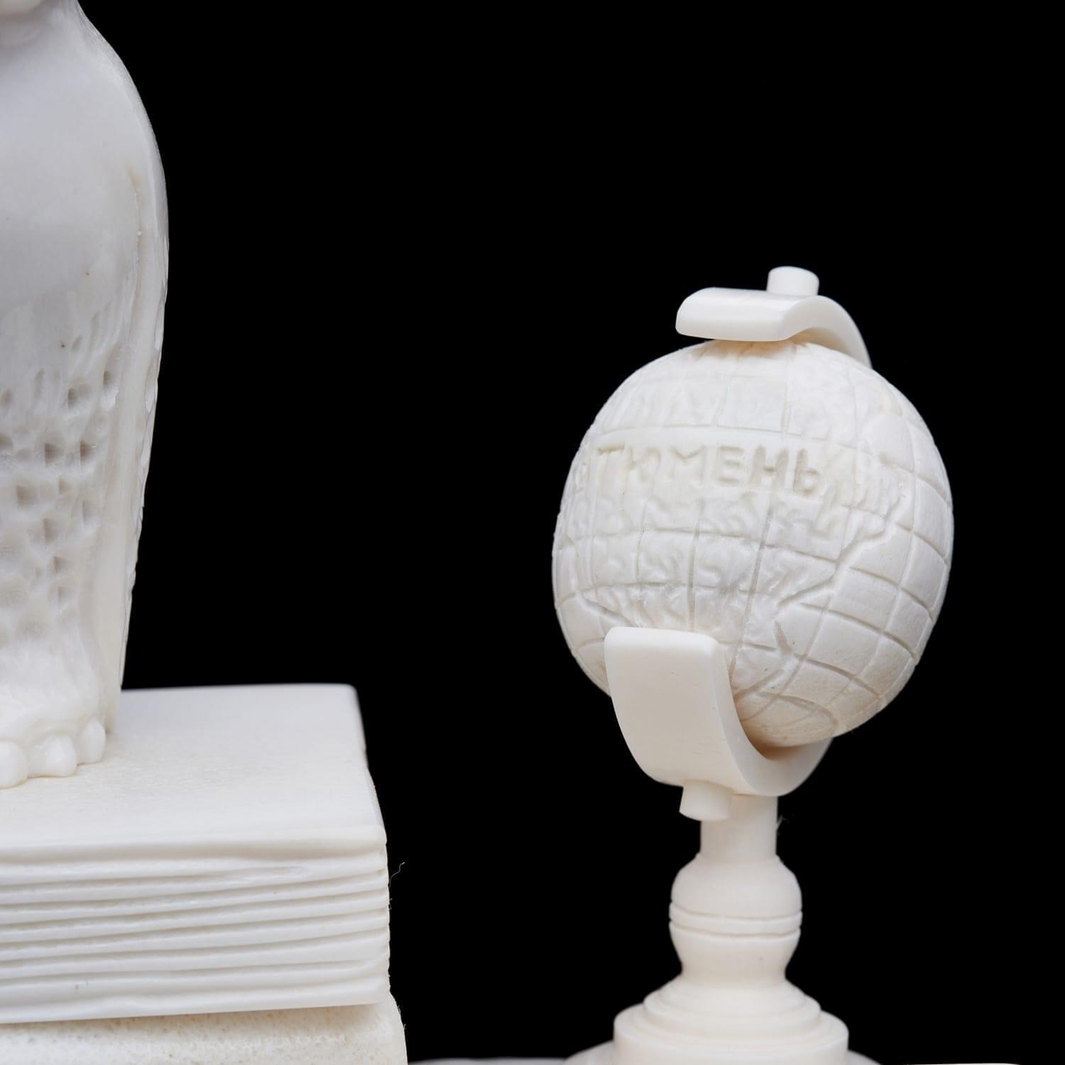 Русские подарки и сувениры → Интерьерные изделия → Статуэтки → Скульптура из рога лося "Филин на книгах"