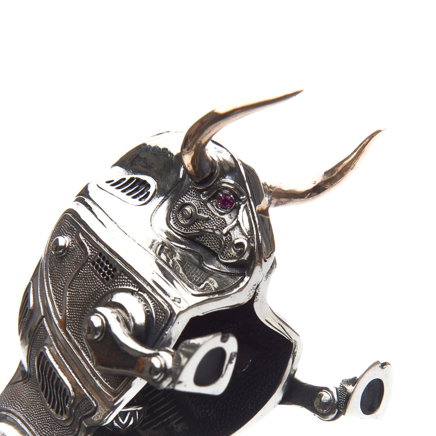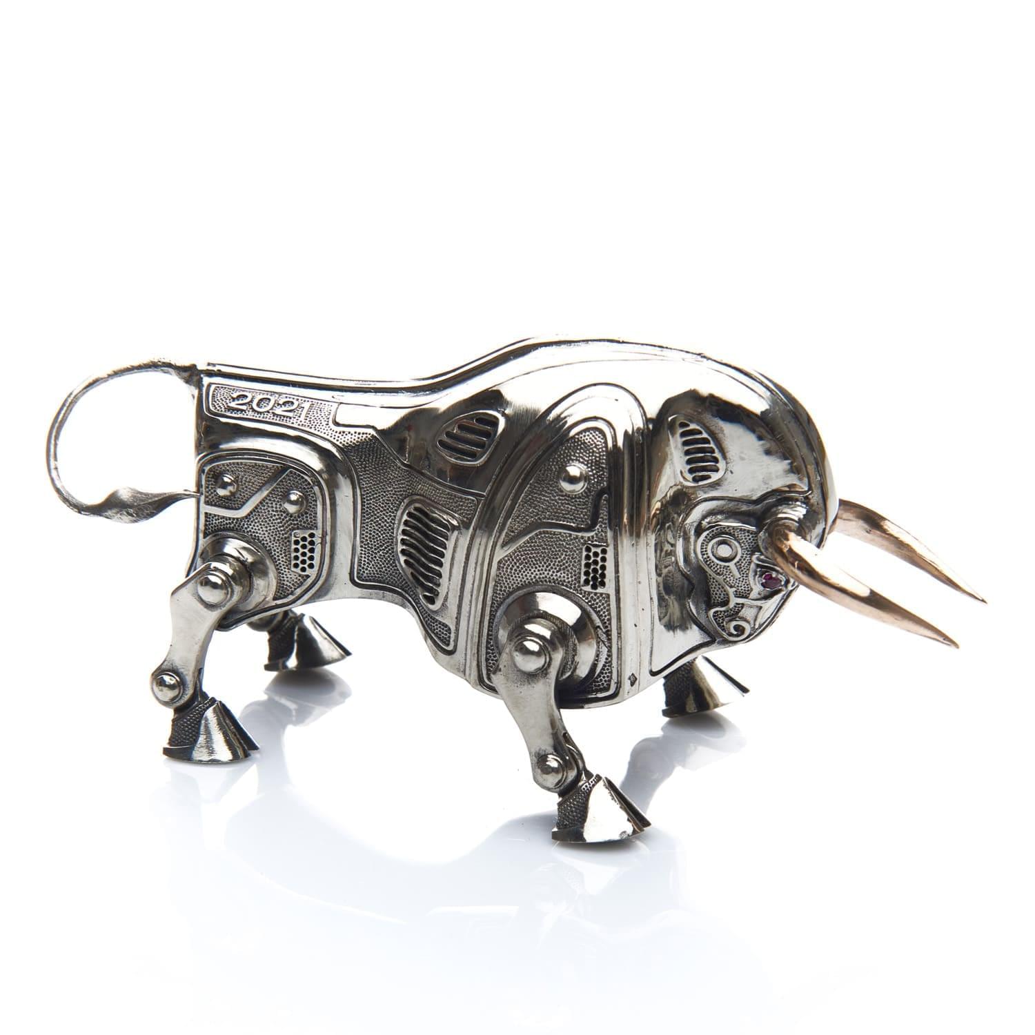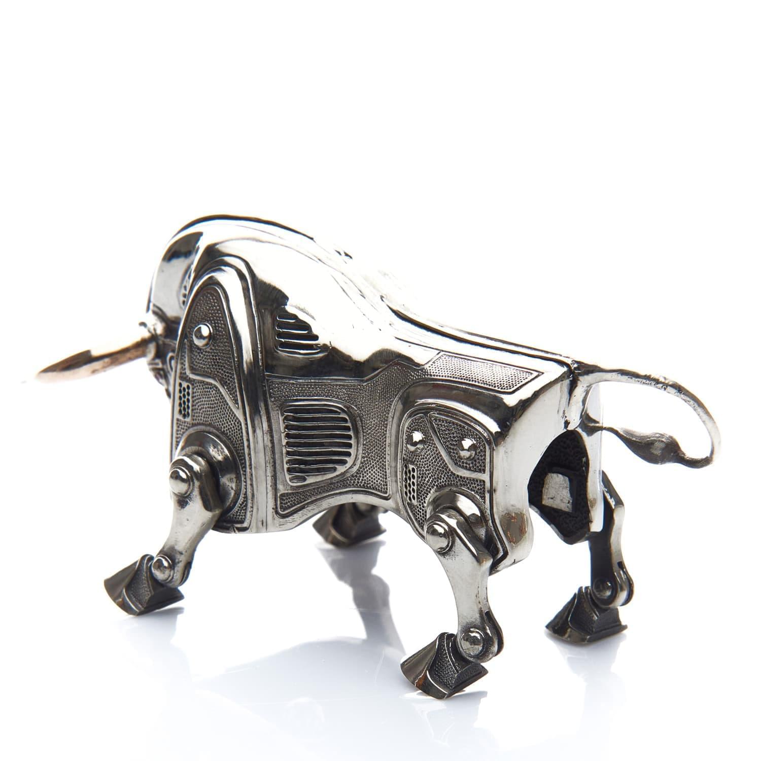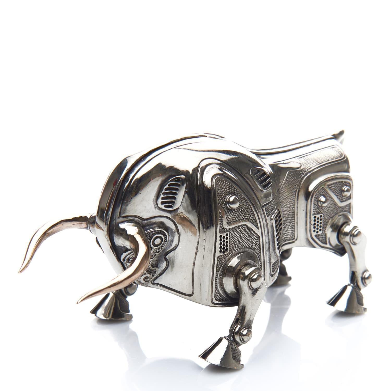 Удивительное решение быка, исполненное в металле. Выглядит модно и шикарно.