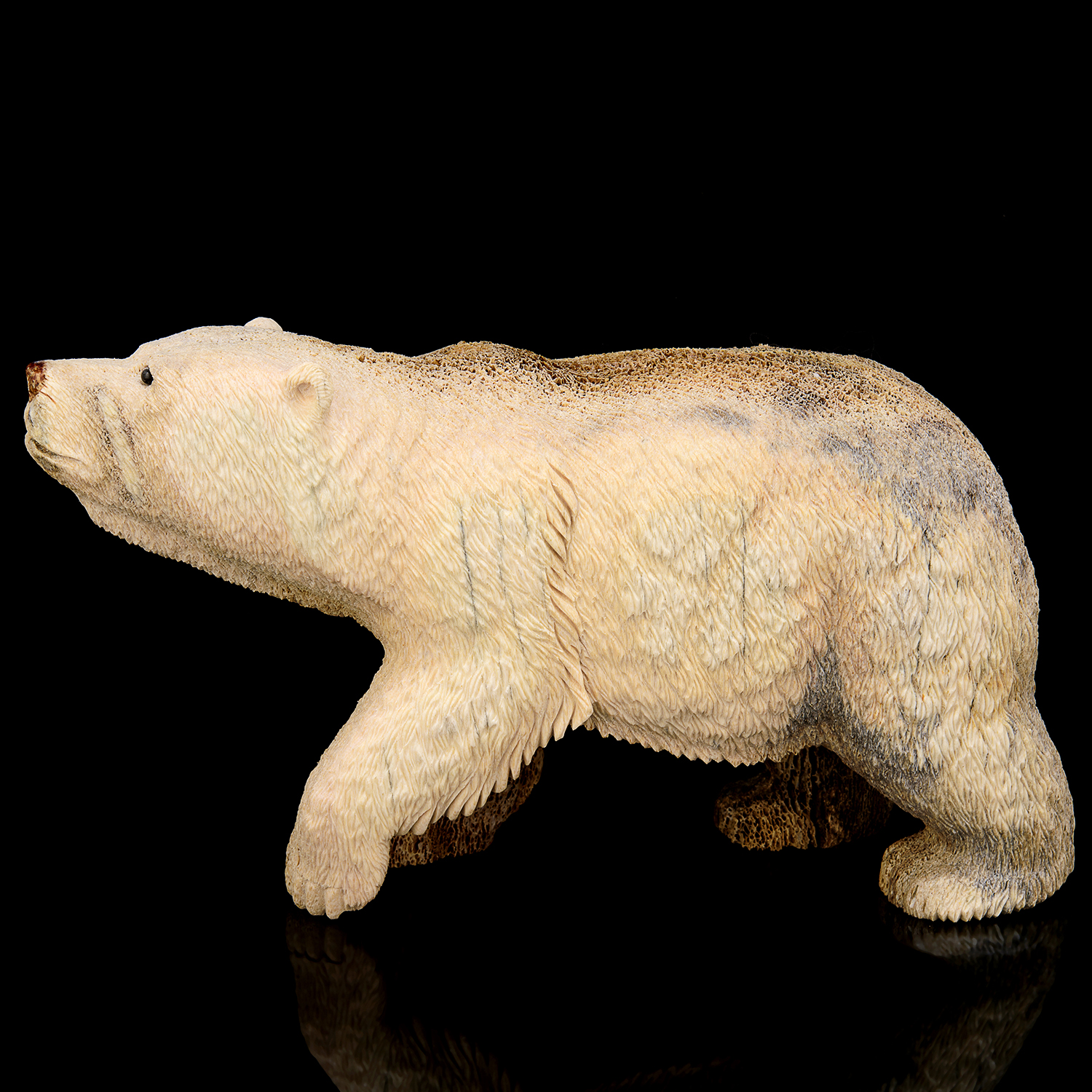0068062/И764 Скульптура "Белый медведь"; кость кита 28*8,5*16,5см .