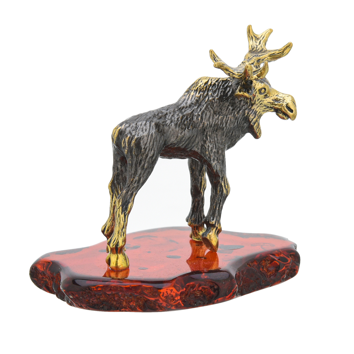 Статуэтка с янтарем "Лось Абрам".Материалы: латунь, янтарь.