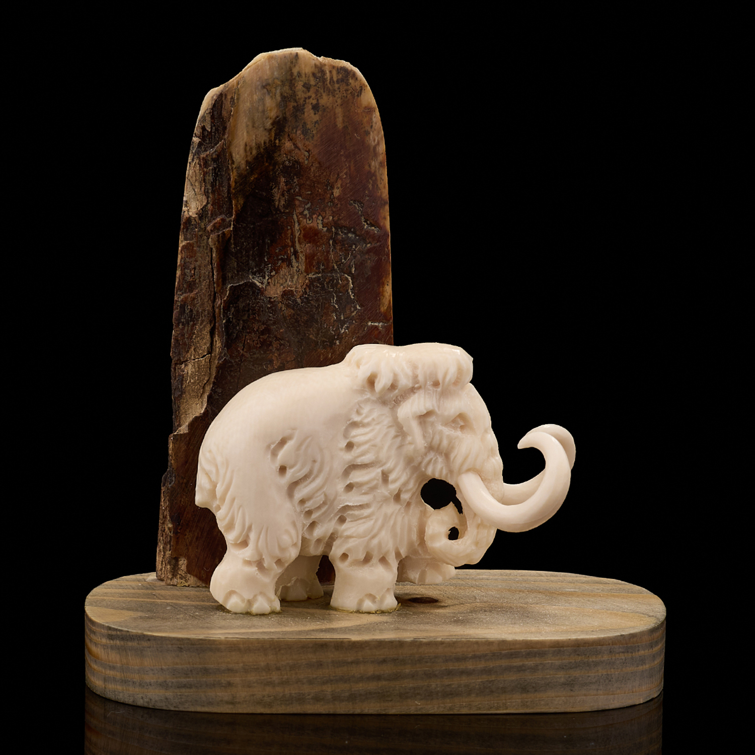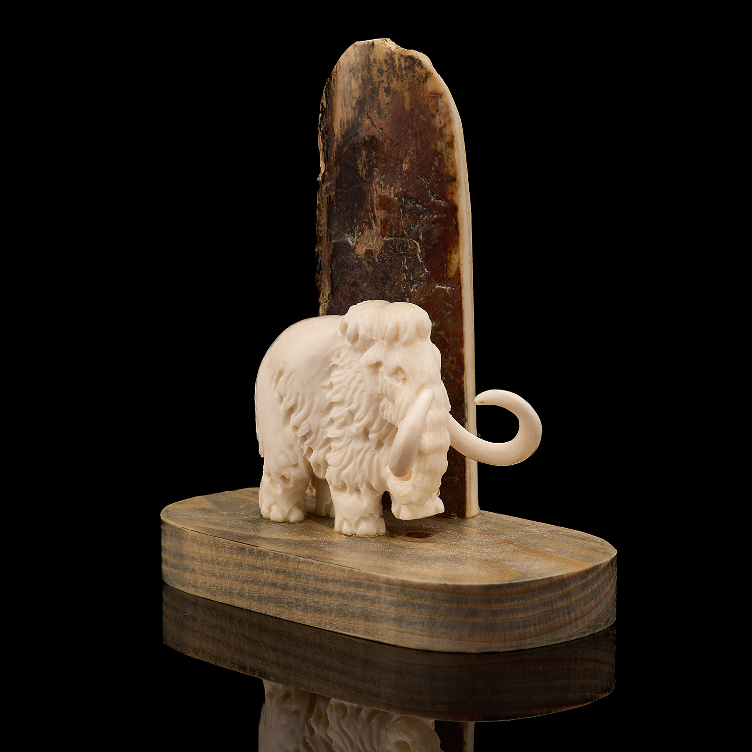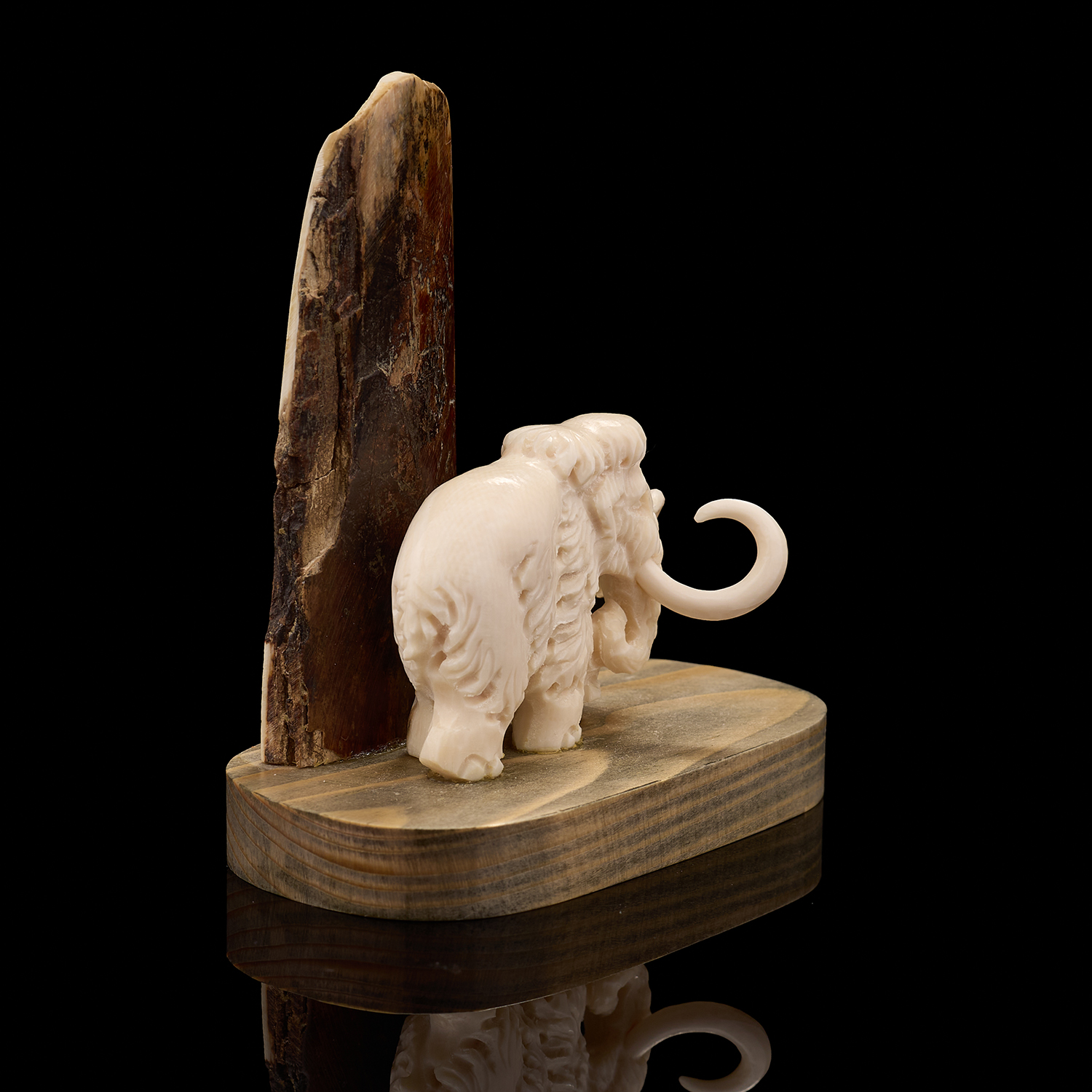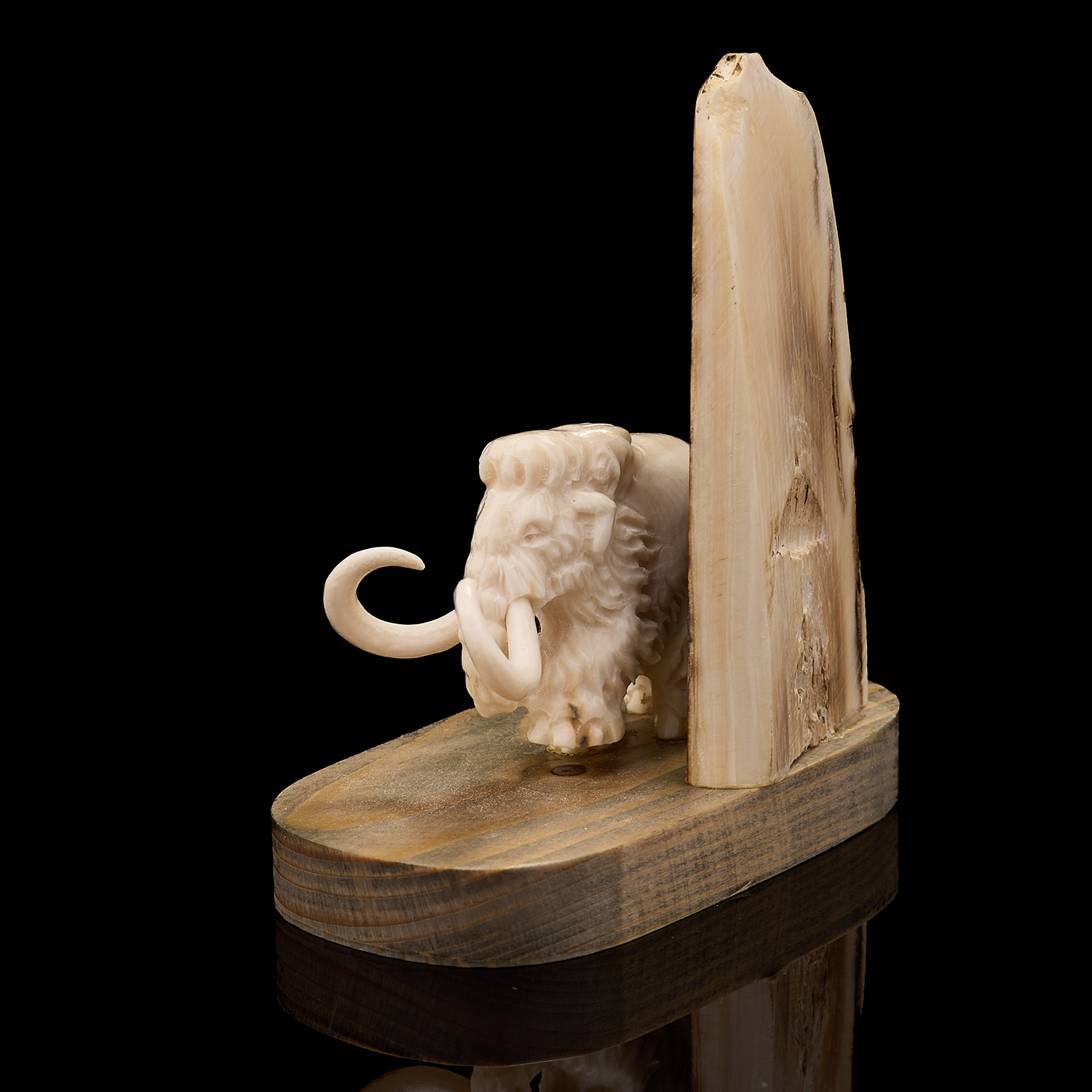 Скульптура из бивня мамонта "Мамонт у скалы".Материалы: бивень мамонта, дерево.