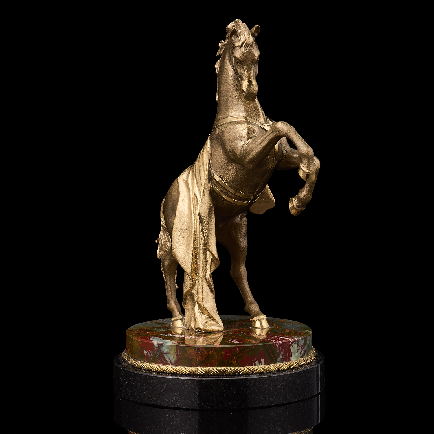 Лошадь Символ 2026 года. Скульптура из бронзы и камня "Конь". Златоуст.Материалы: бронза, золото 999,9*, яшма.