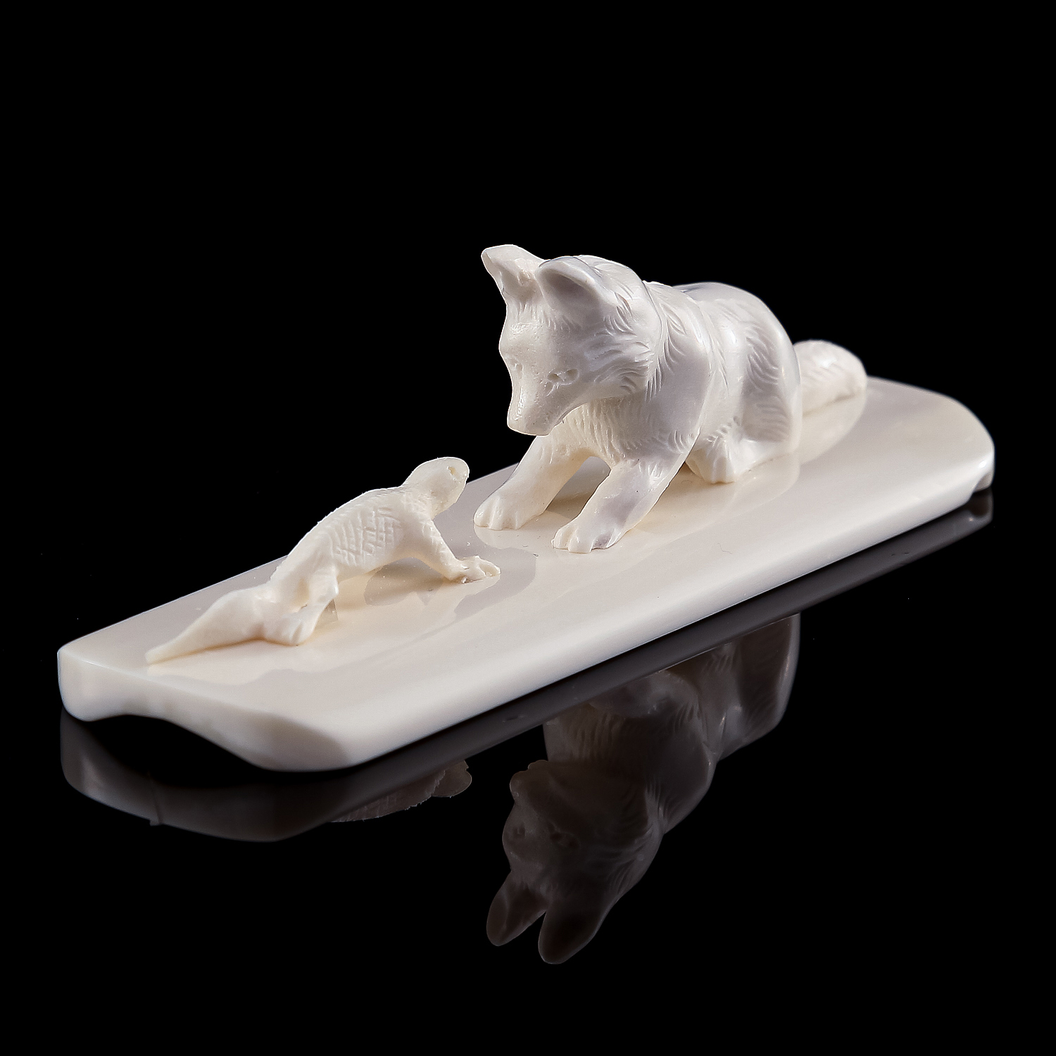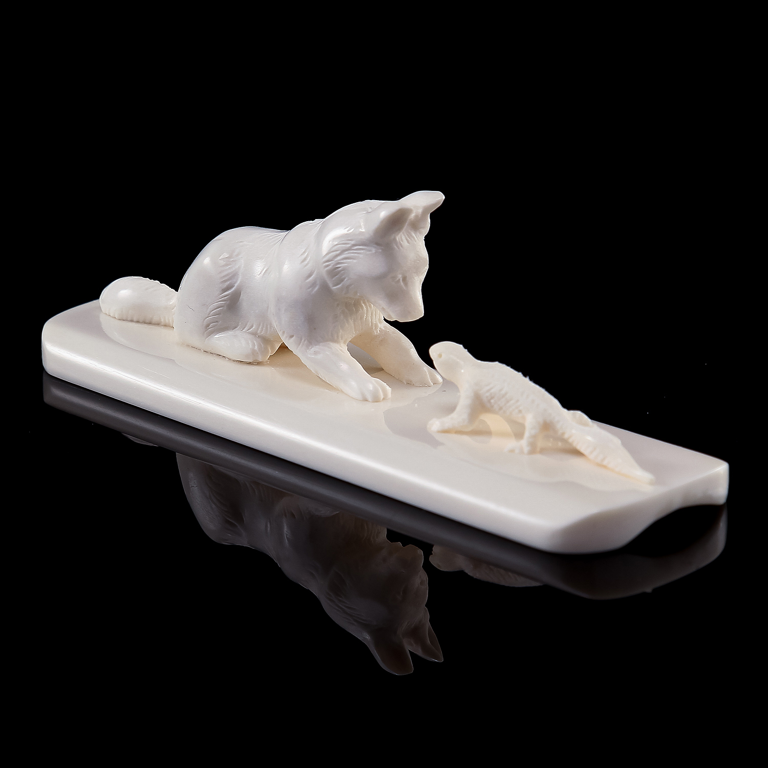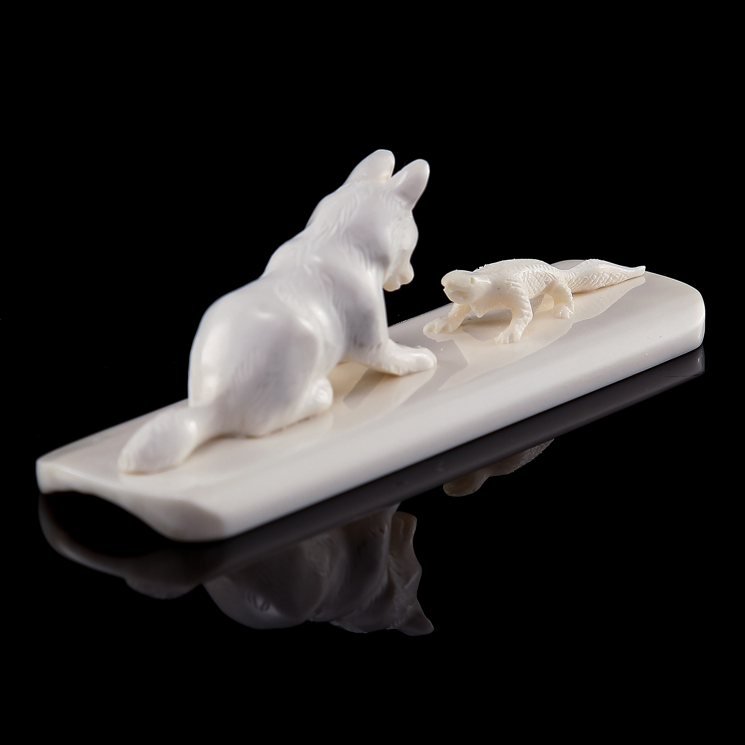 Скульптура из рога лося "Волчонок и ящерица"