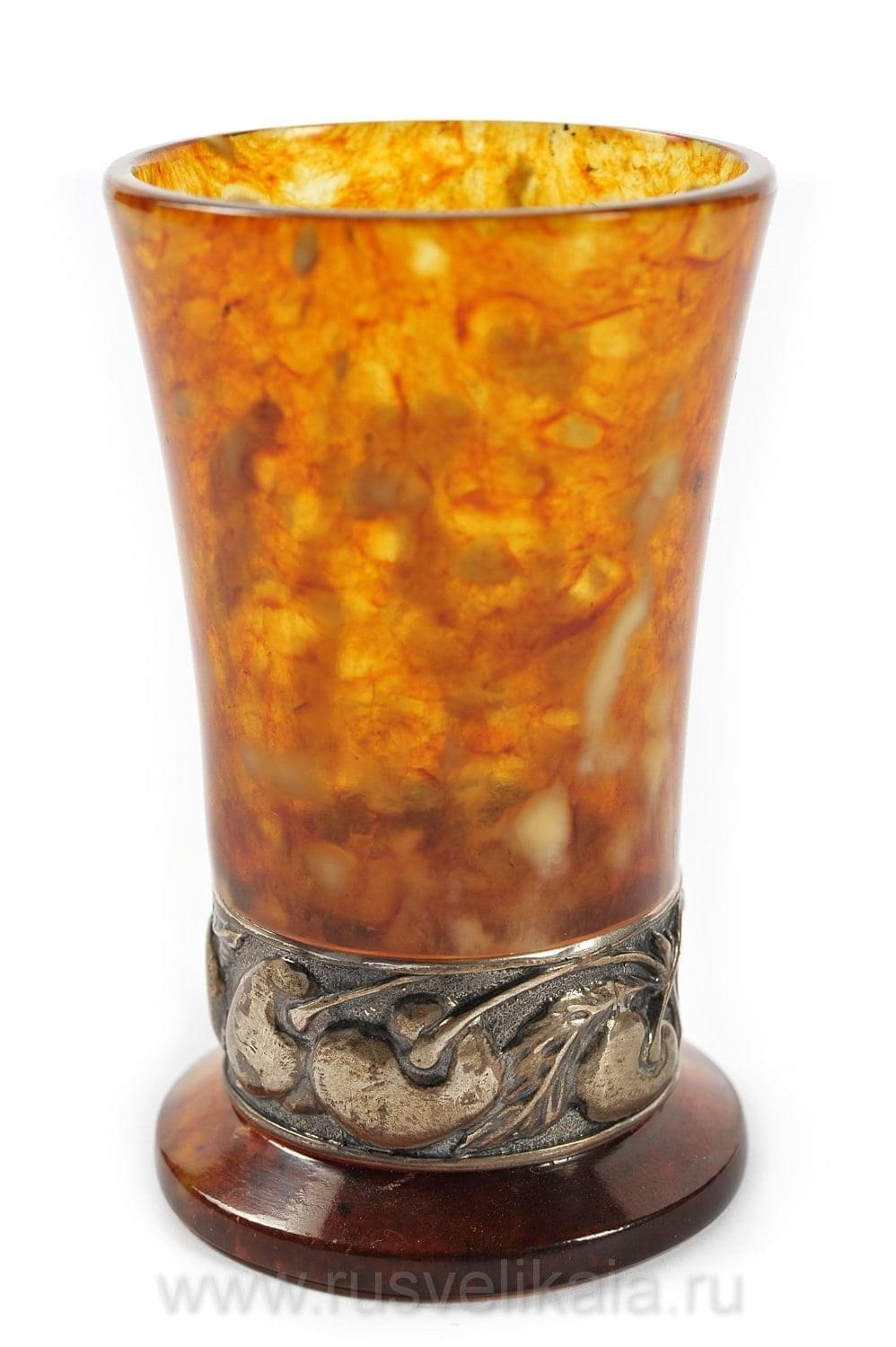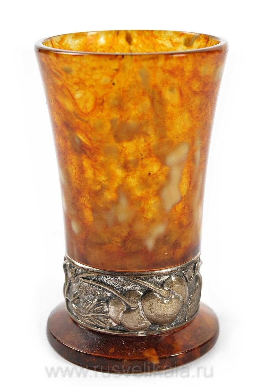 Стопка из янтаря "Вишневый сад". Серебро 875*