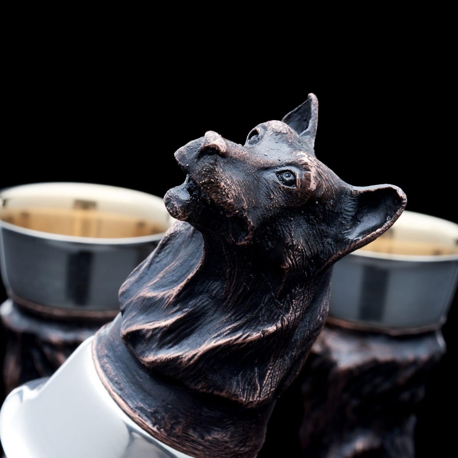 Шикарный секстет стопок посвящен охотничьей теме и создан для ценителей отдыха на природе и любителей качественного алкоголя. Стопкой называют небольшой стакан, кружку, чарку, бокал, рюмку. Обычная его емкость 50-100 миллилитров. Традиционно имеет прямые (граненые) стенки. Со стопкой (лафитником, чекушкой) связана древнерусская мера объема - стопа. Народная этимология объясняет название от слова сто (грамм), но это некорректно: метрическая система была введена на Руси спустя время после задокументированного использования термина. В англоязычных государствах распространена аналогичная по смыслу посуда шот емкостью 45 мл., для употребления одной унции (примерно 30 мл.) напитка, выпиваемого «залпом», одним глотком. Еще существует caballito, применяемый для ряда коктейлей. ...