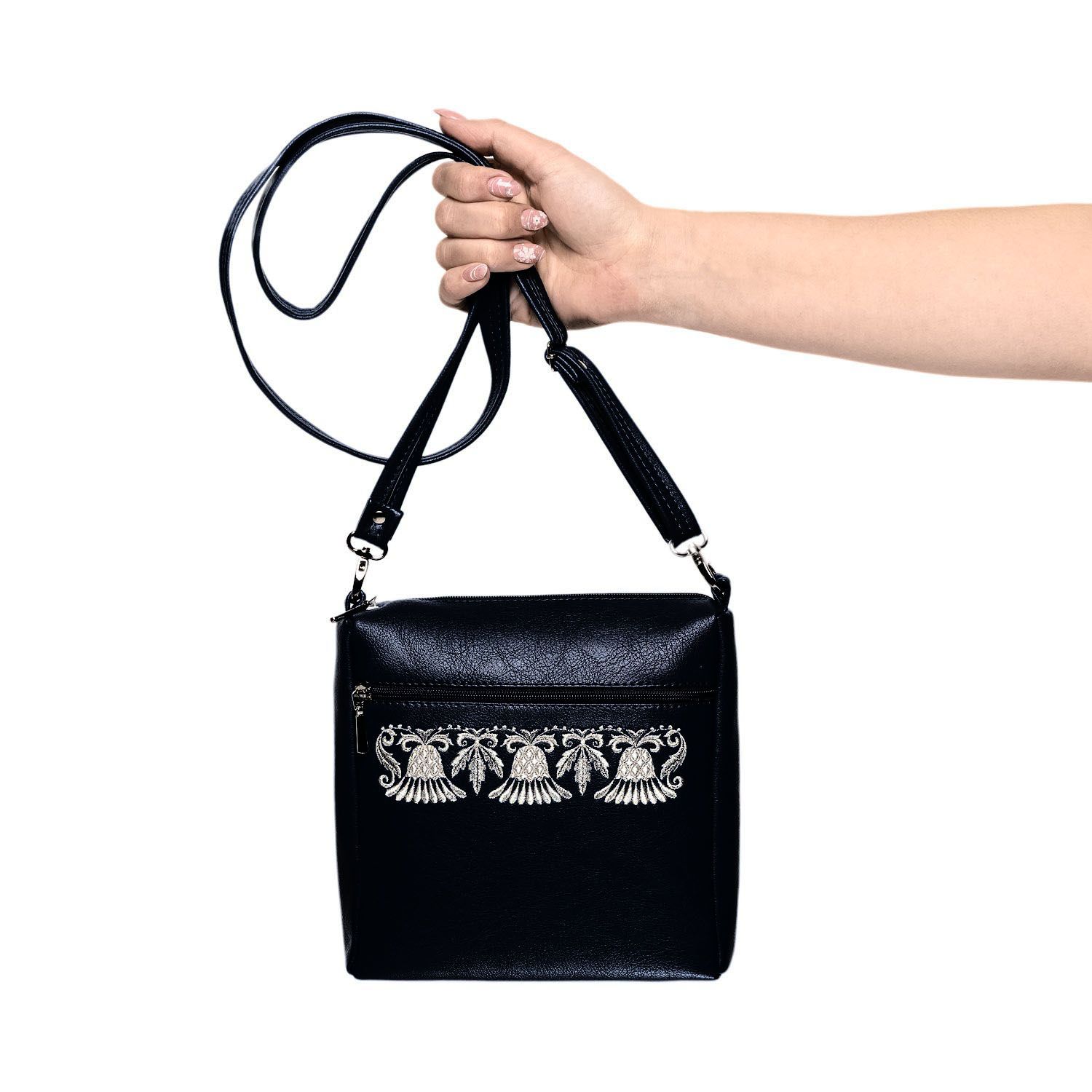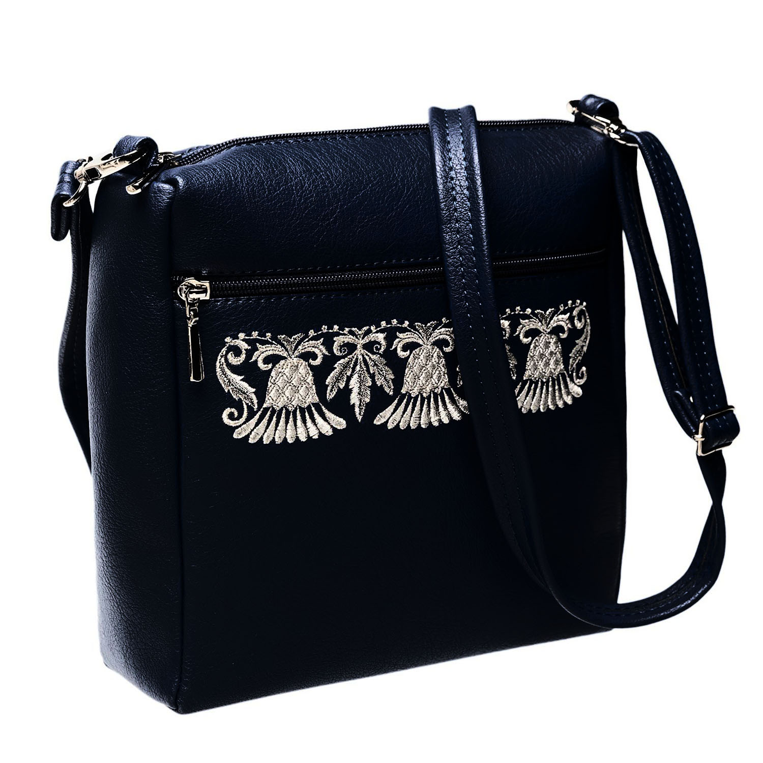 Сумка "Цветок-оберег". Темно-синяя с вышивкой.Материалы: искусственная кожа, полиэстер.